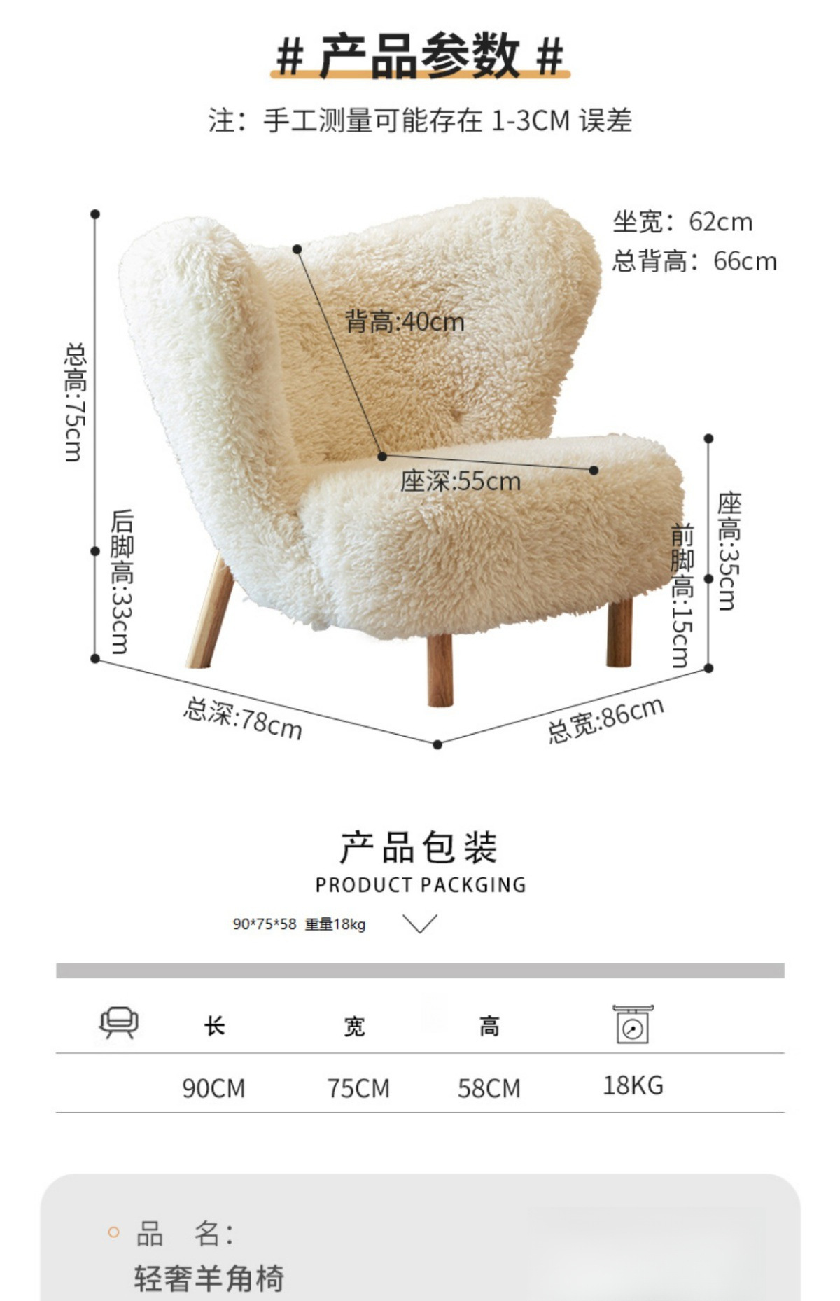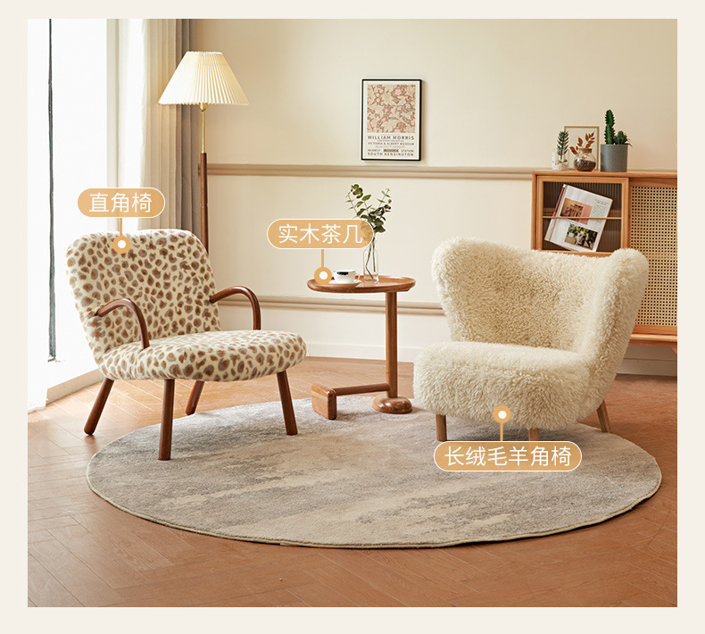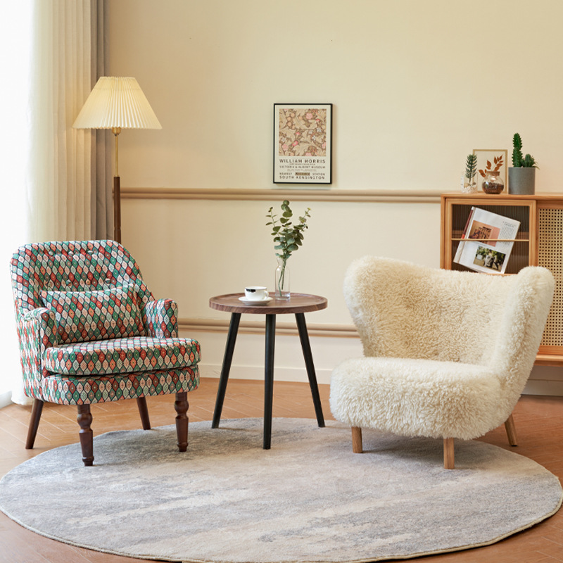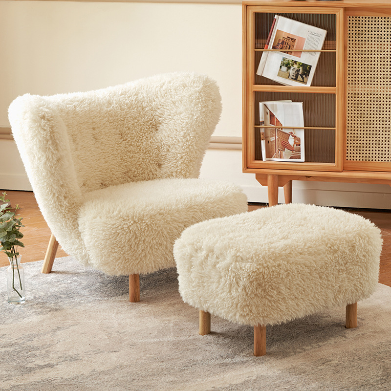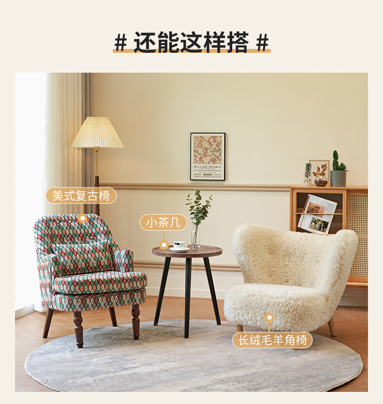 일본식 양고기 양모 싱글 소파 인터넷 유명한 빛 럭셔리 홈스테이 레트로 목가적 스타일 미국 봉제 게으른 소파 의자