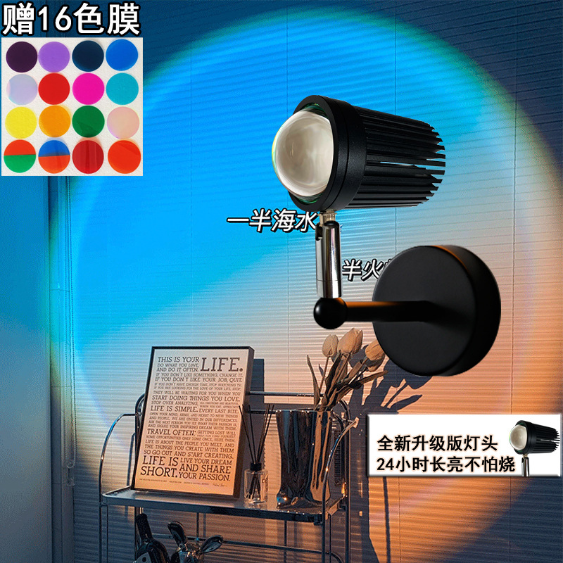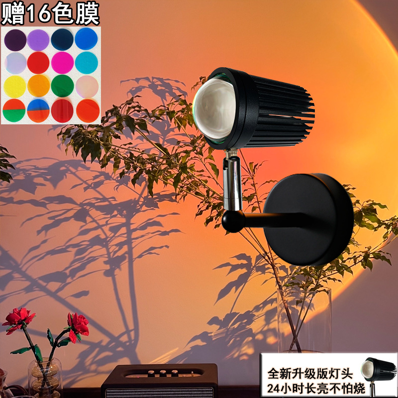 일몰 램프 INS 그물 빨간 사진 프로젝션 벽 램프 무지개 분위기 일몰 장식 램프 침대 옆 일몰 붉은 벽 램프