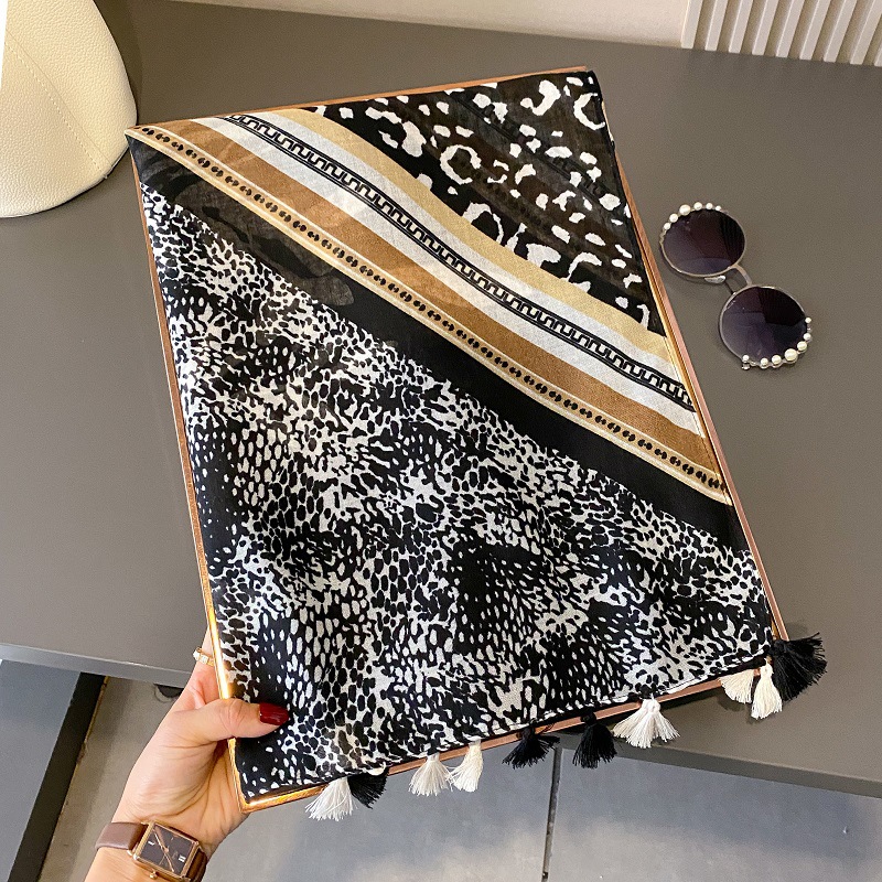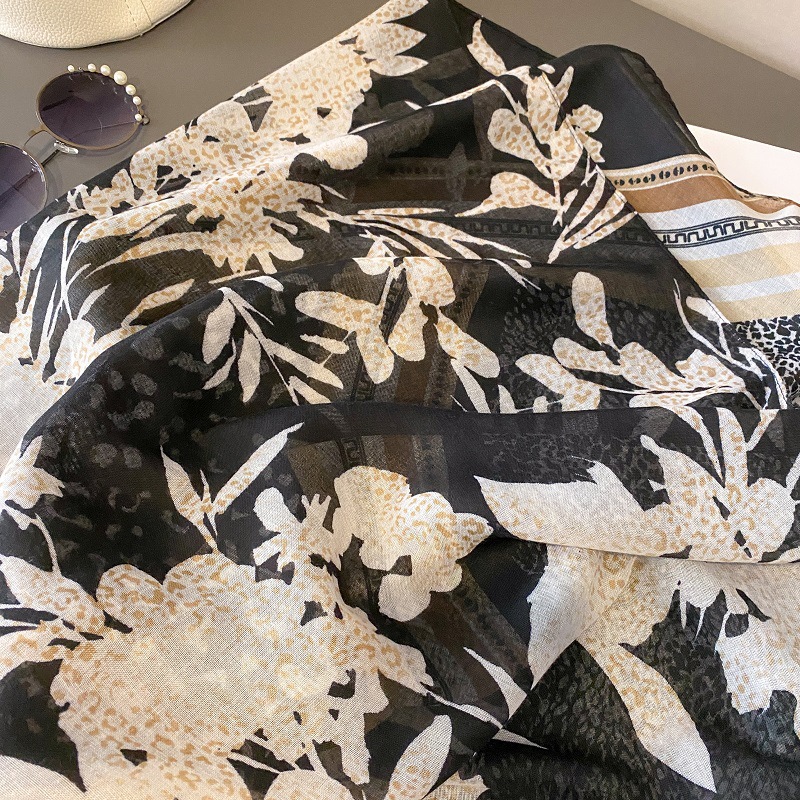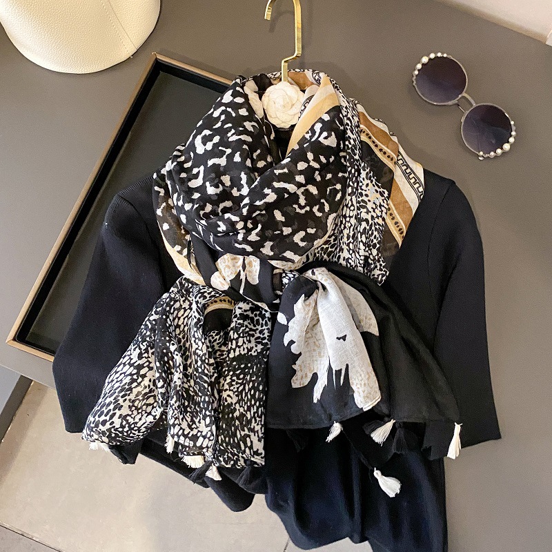 클래식 블랙 골드 노블 코튼 스카프 여성 여행 사진 교수형 수염 목도리 봄과 가을 새로운 경량 목 보호 외부 착용스토어 가기