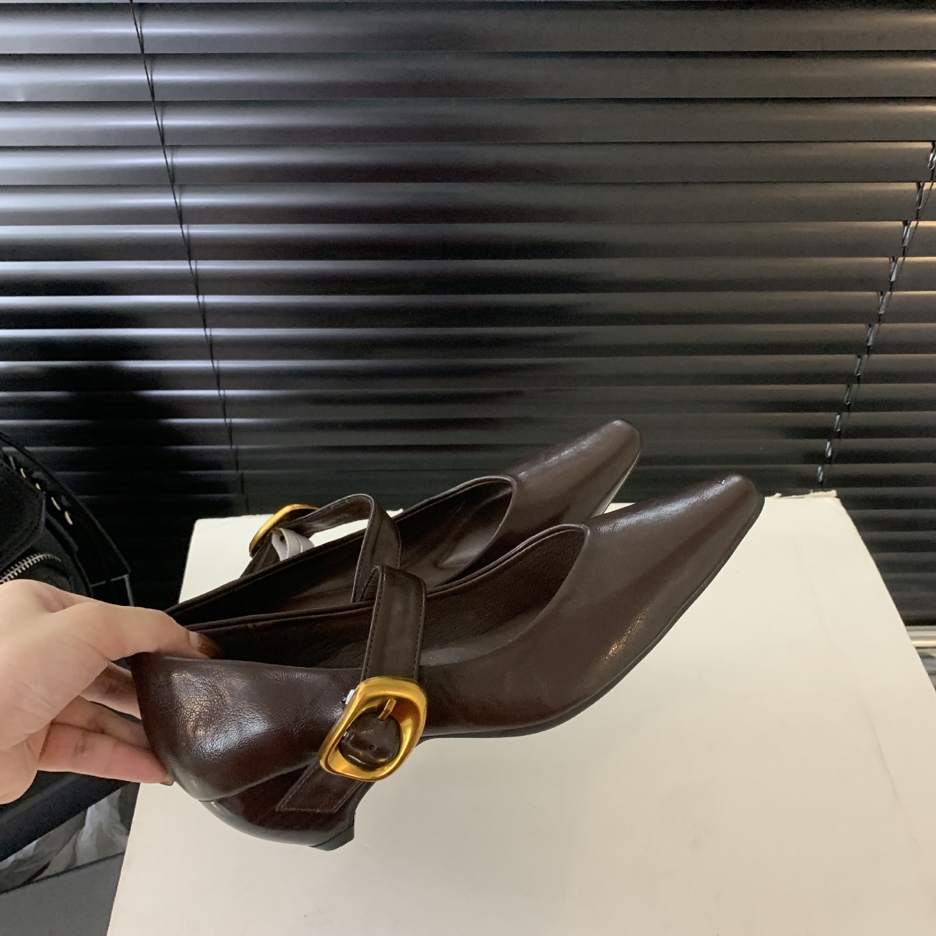 2024 새로운 여름 한국 스타일 패션 프랑스 스타일 레트로 미드 힐 여성 신발 두꺼운 발 뒤꿈치 여성 싱글 레이어 신발스토어 가기