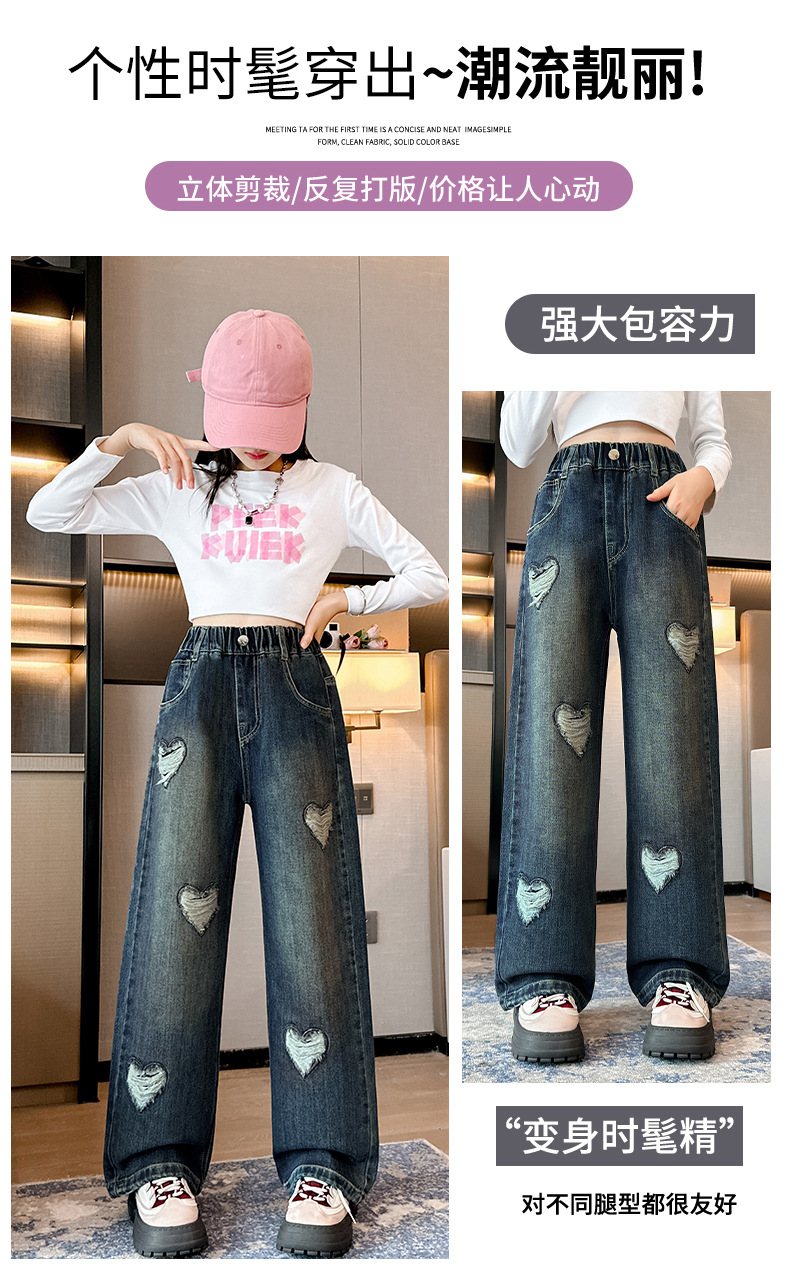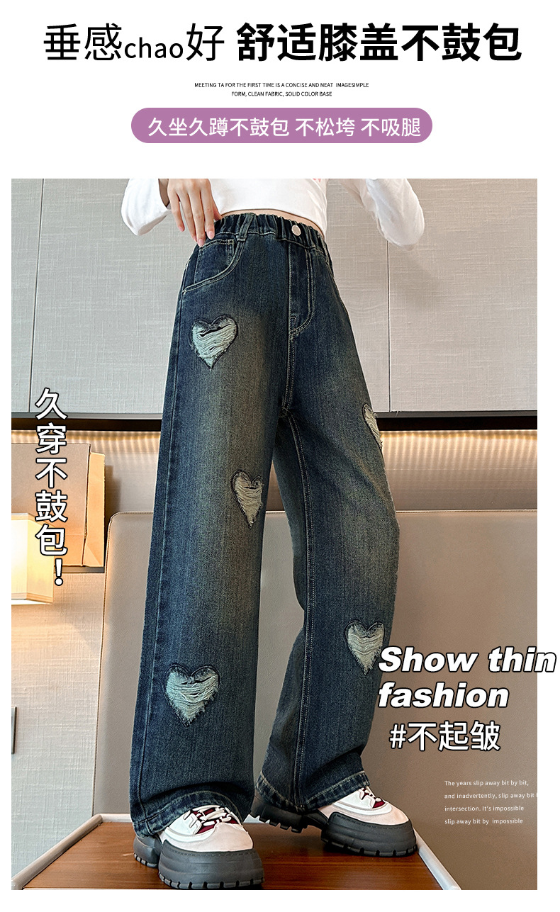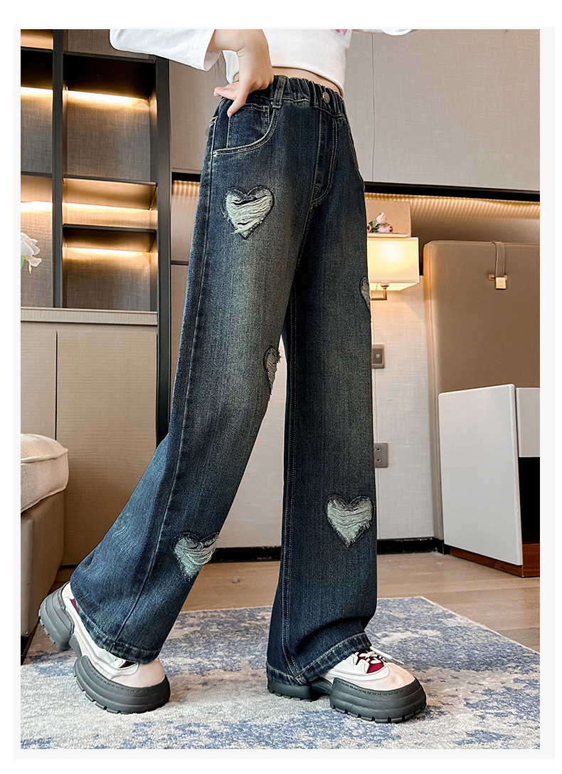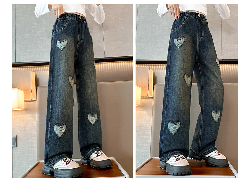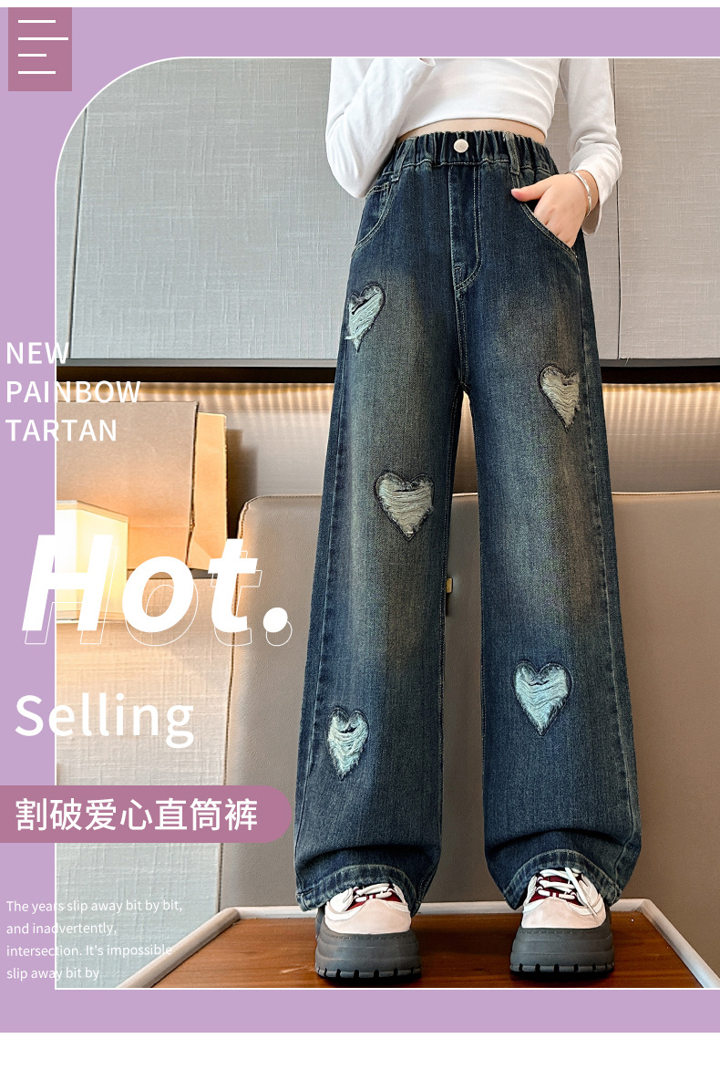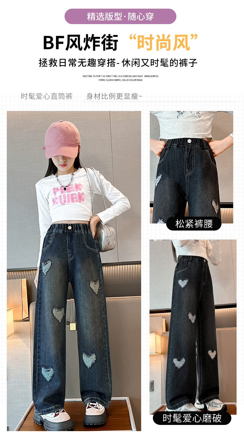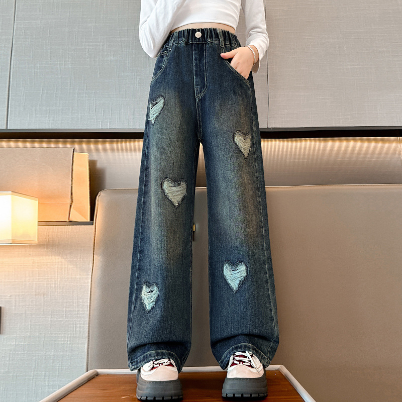 소녀 청바지 2024 년 봄과 가을 새로운 어린이 스트레이트 좁은 바지 소녀 가을 넓은 다리 바지 느슨한스토어 가기