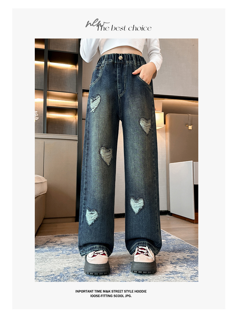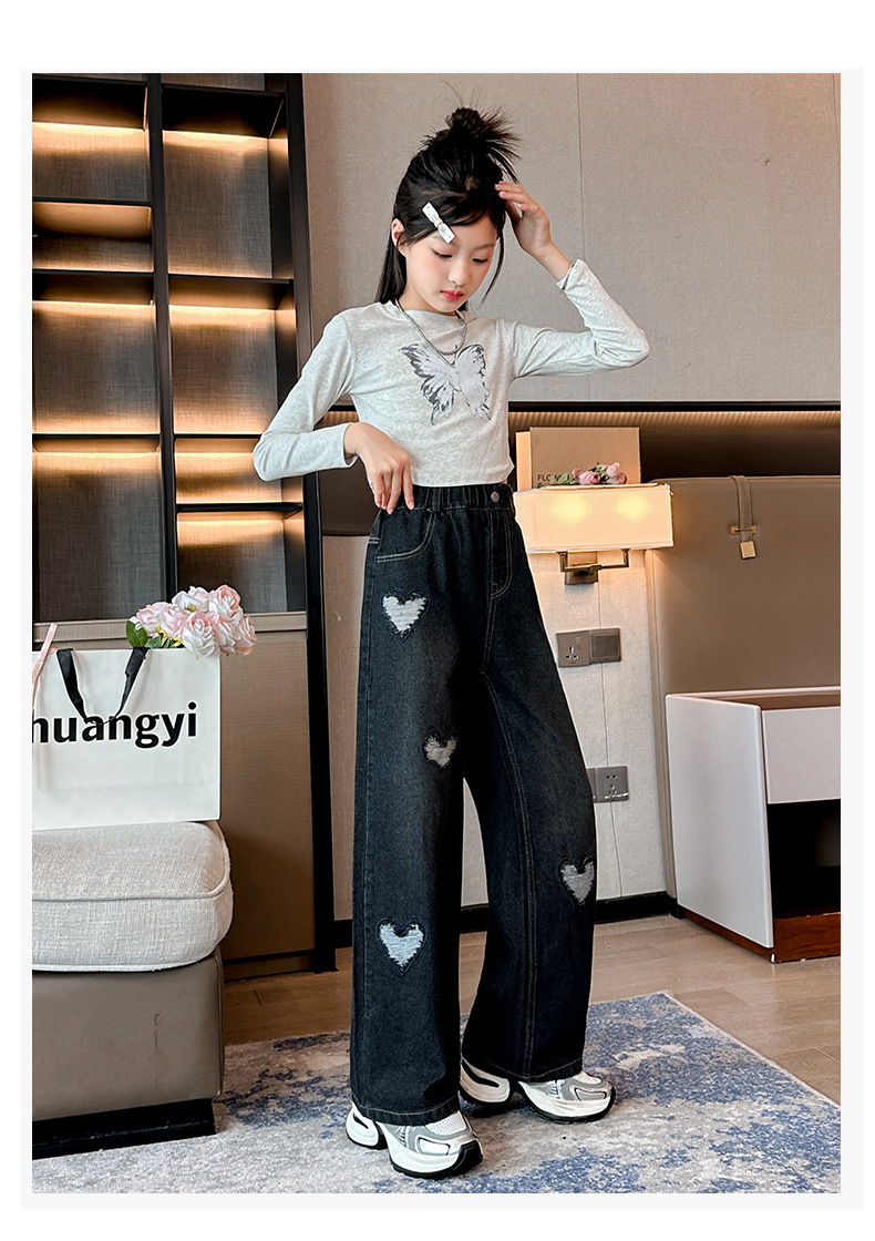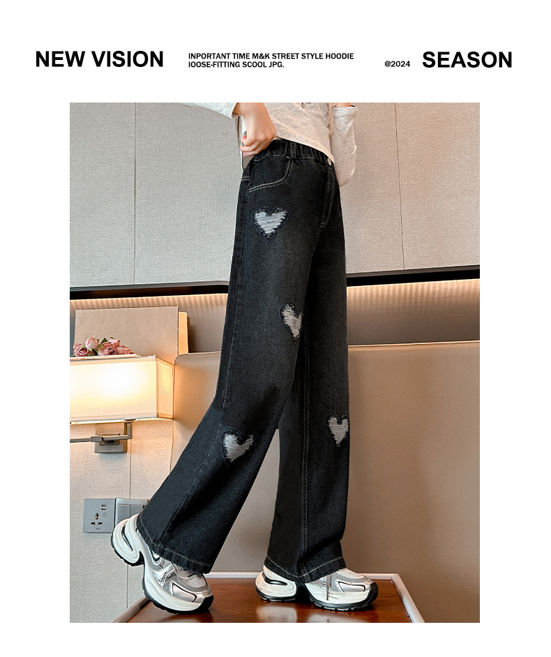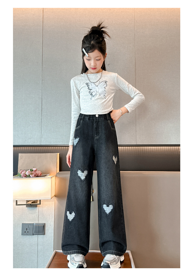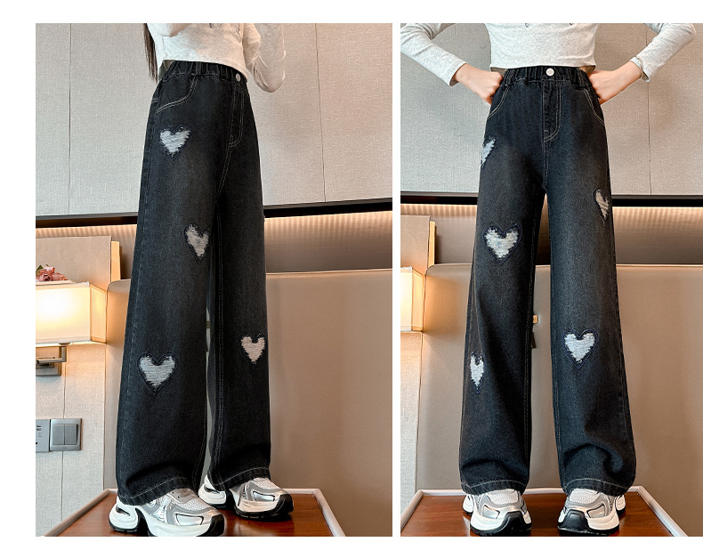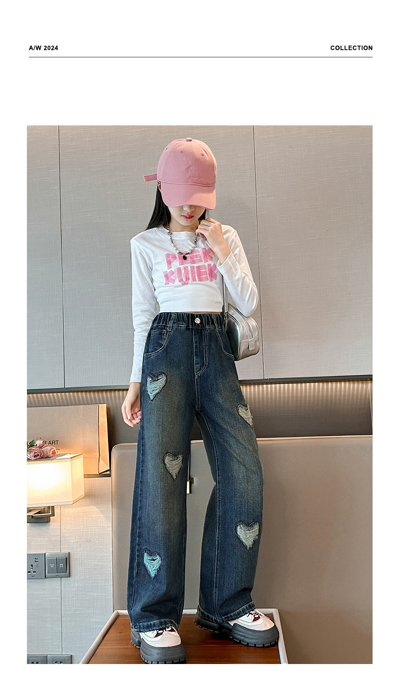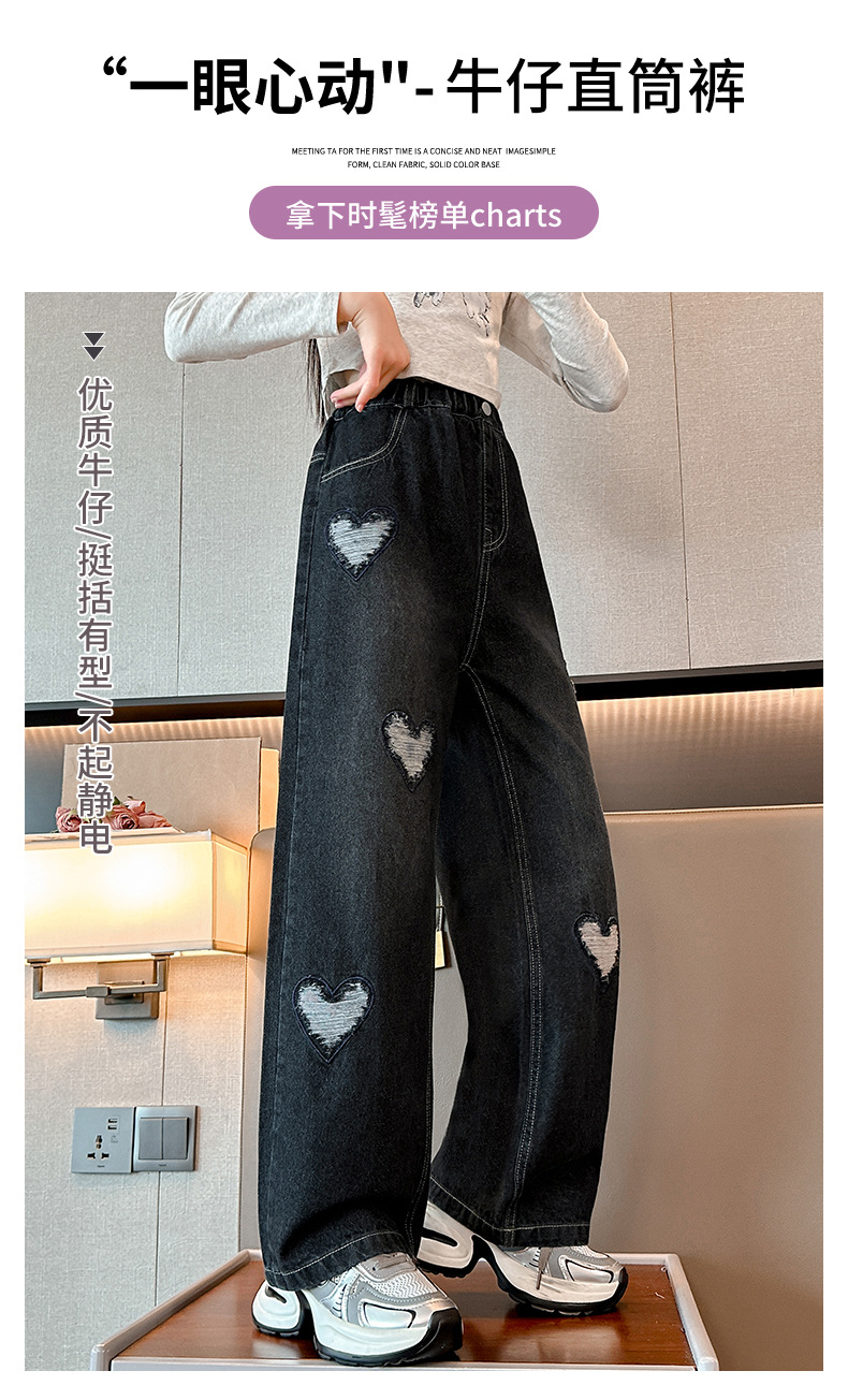 소녀 청바지 2024 년 봄과 가을 새로운 어린이 스트레이트 좁은 바지 소녀 가을 넓은 다리 바지 느슨한스토어 가기
