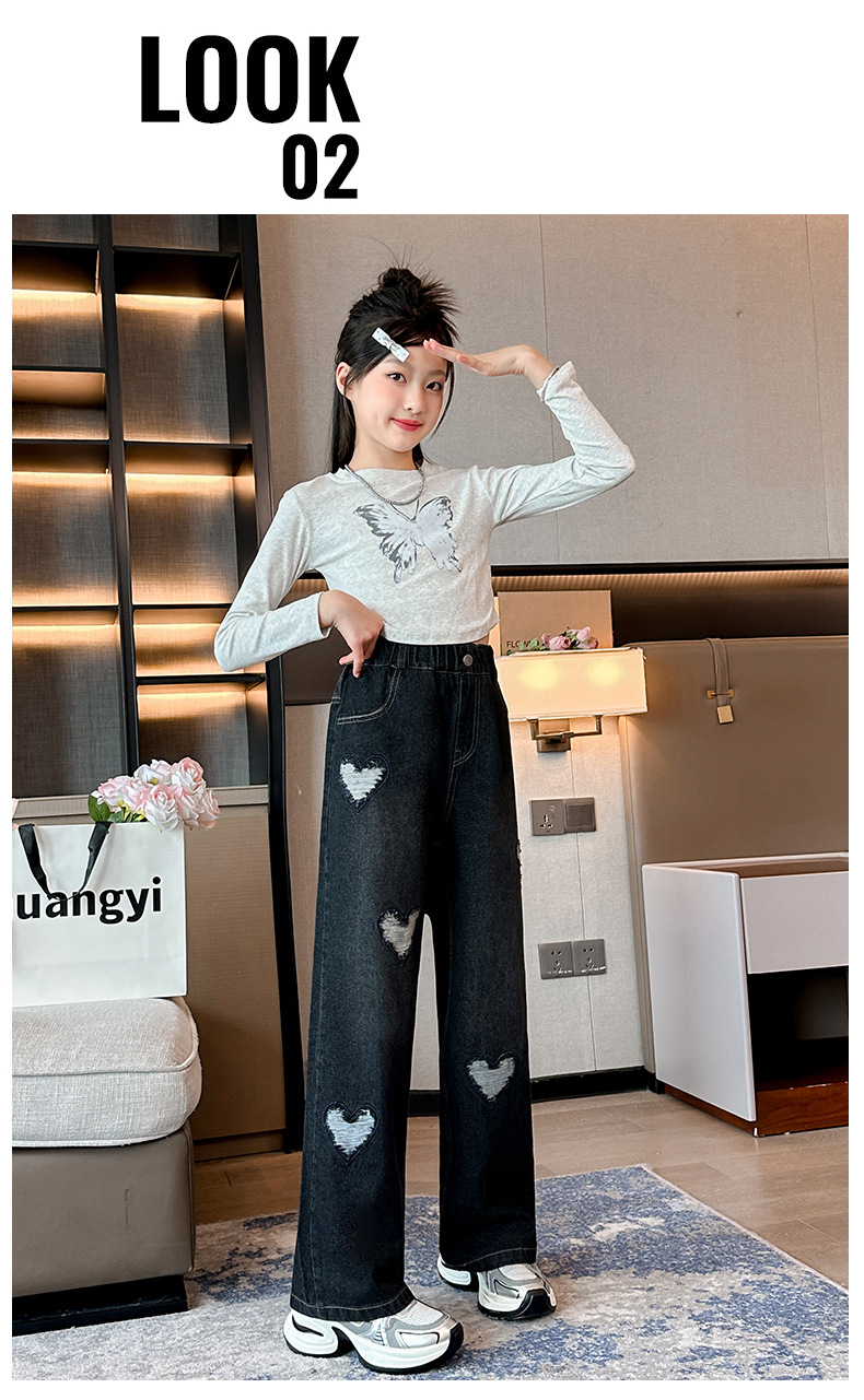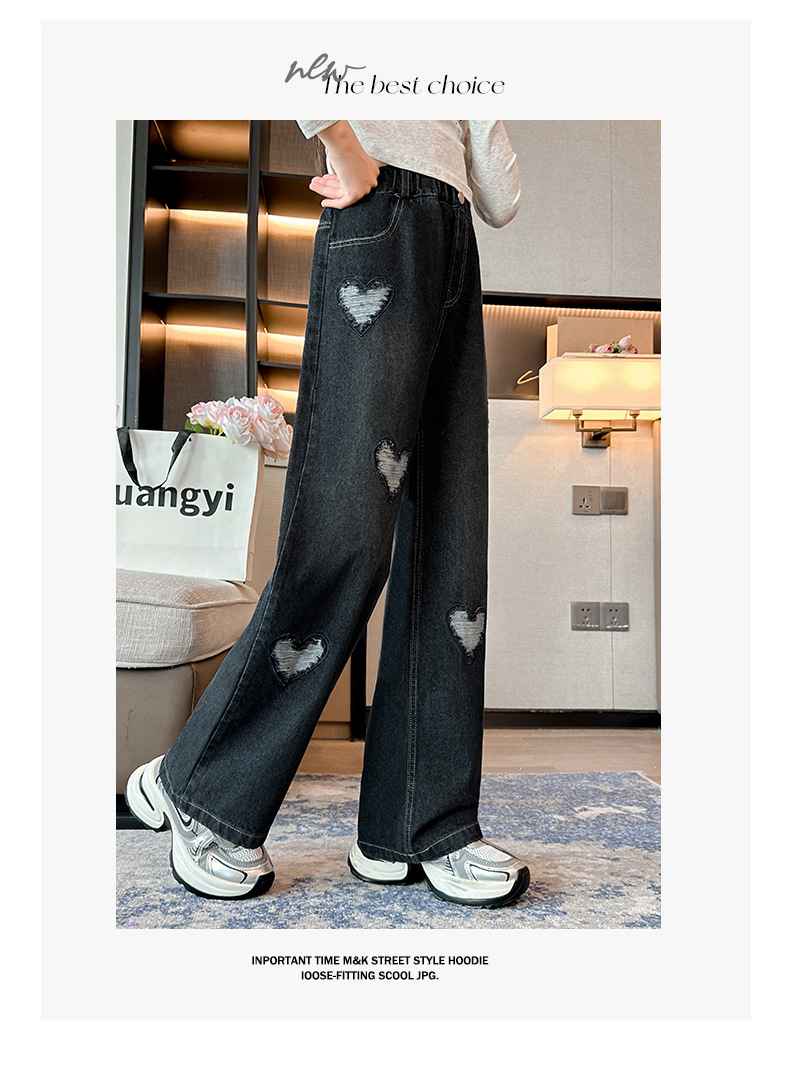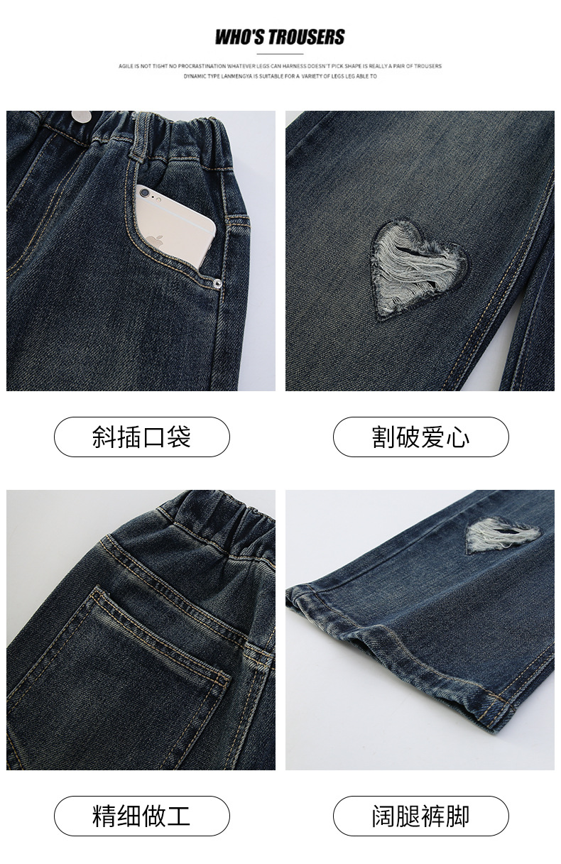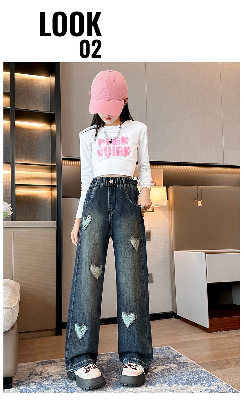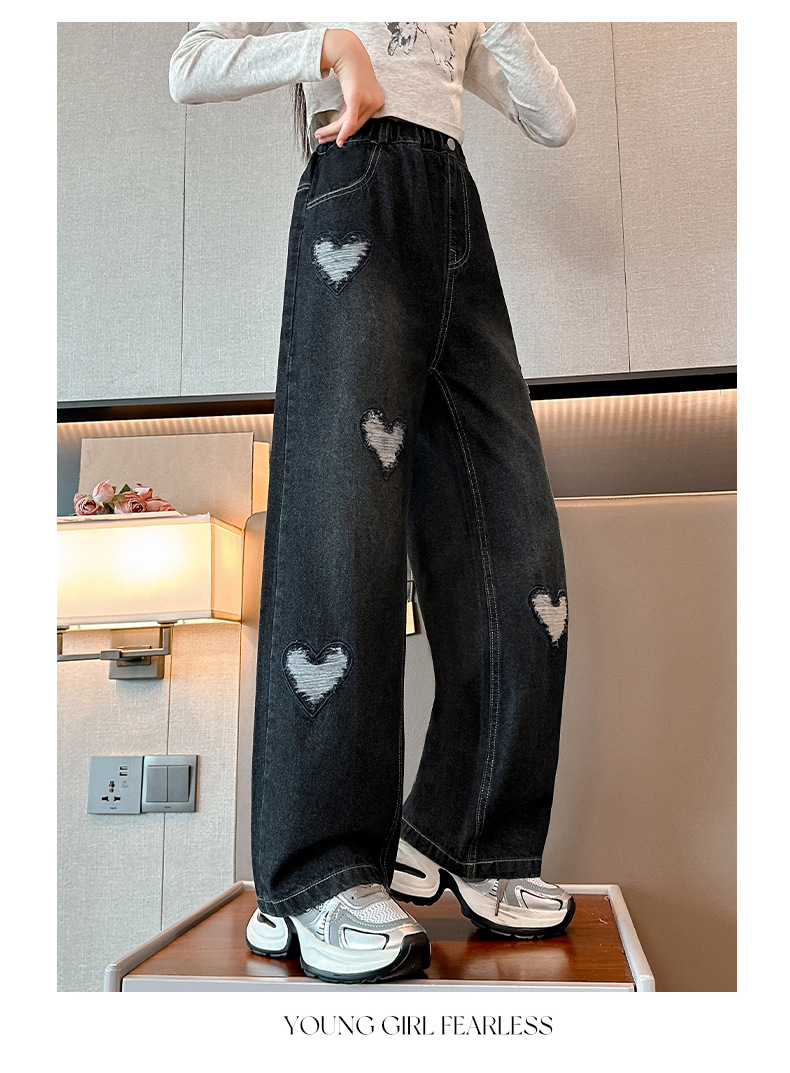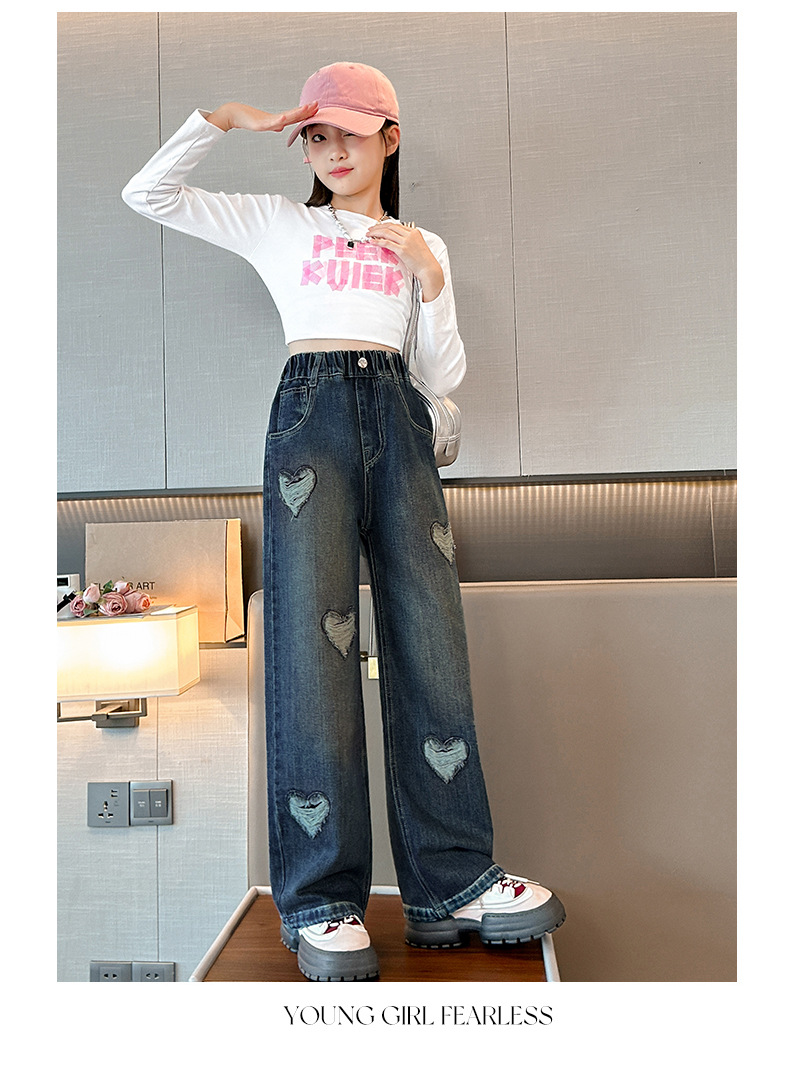 소녀 청바지 2024 년 봄과 가을 새로운 어린이 스트레이트 좁은 바지 소녀 가을 넓은 다리 바지 느슨한스토어 가기