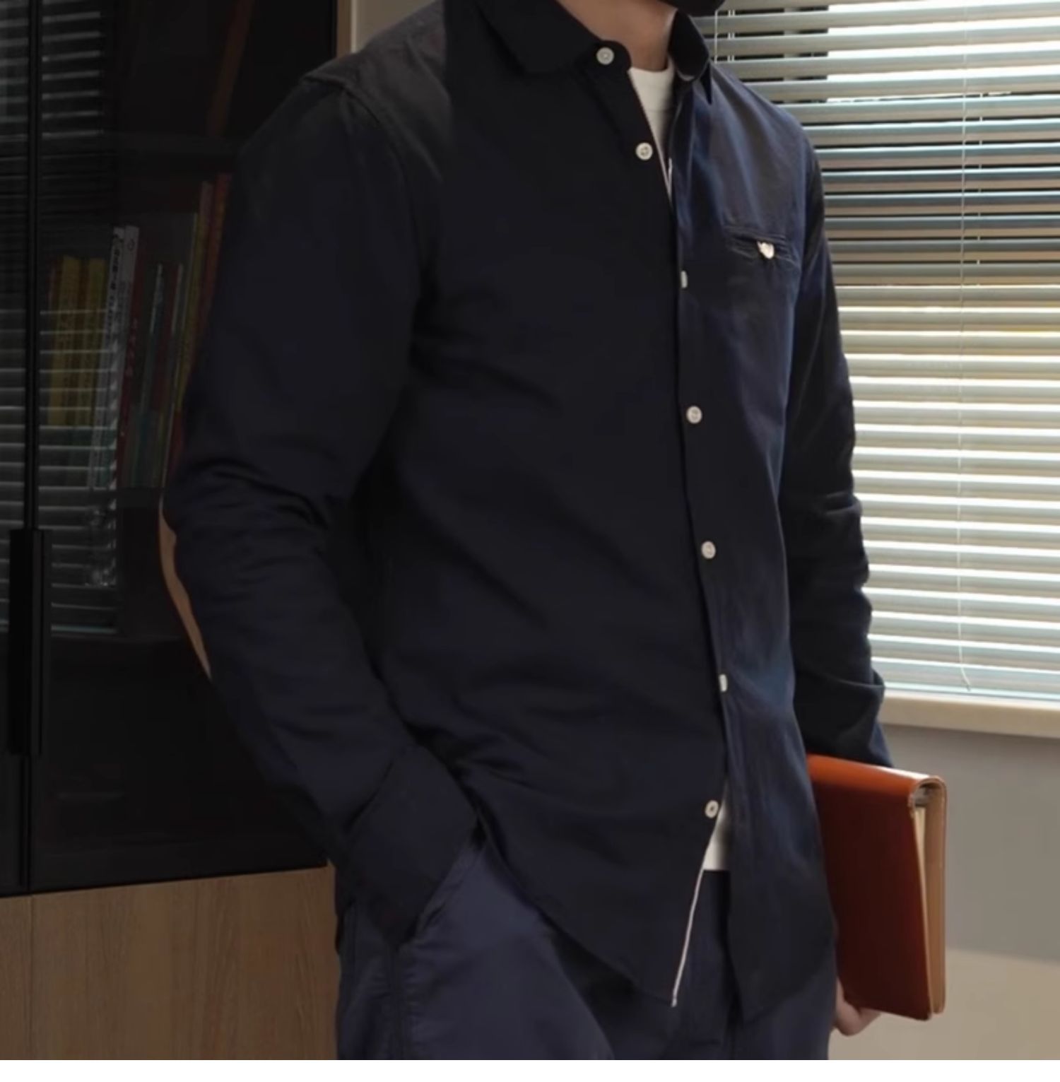 纯棉牛津纺衬衫男长袖日系复古男士衬衫拼接麂皮绒补丁修身寸衫男