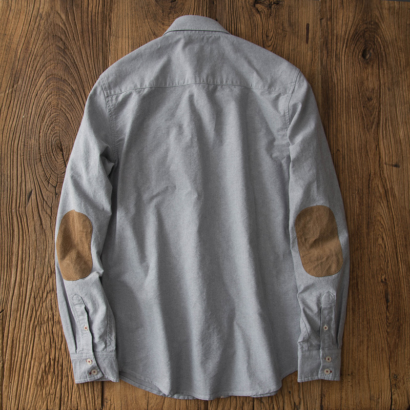 면 옥스포드 셔츠 남성 긴팔 일본 스타일 빈티지 남성 셔츠 바느질 스웨이드 패치 슬림 핏 남성용 셔츠스토어 가기