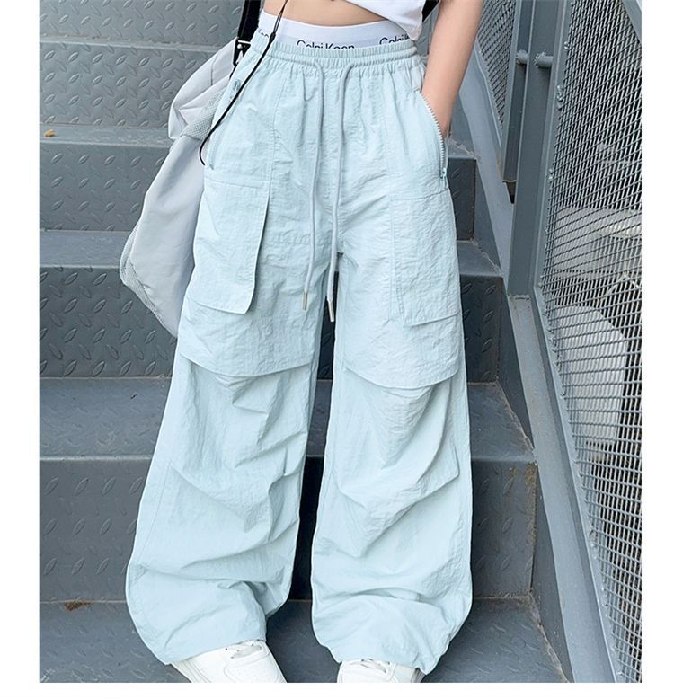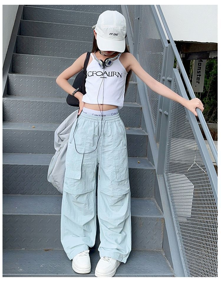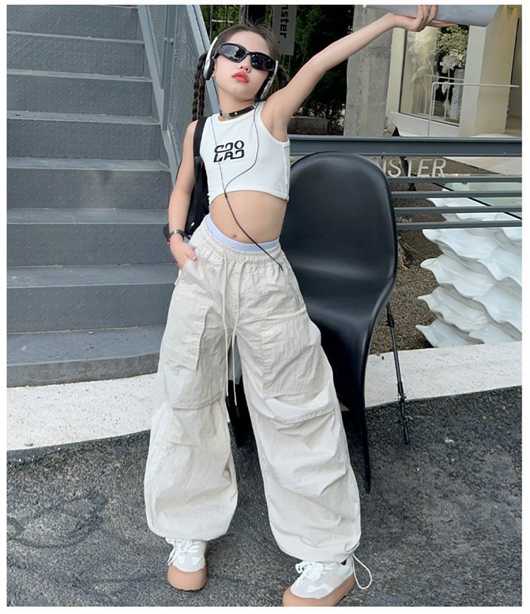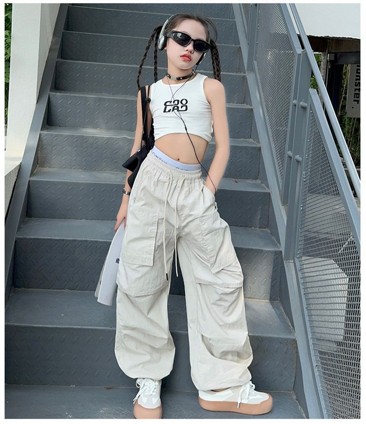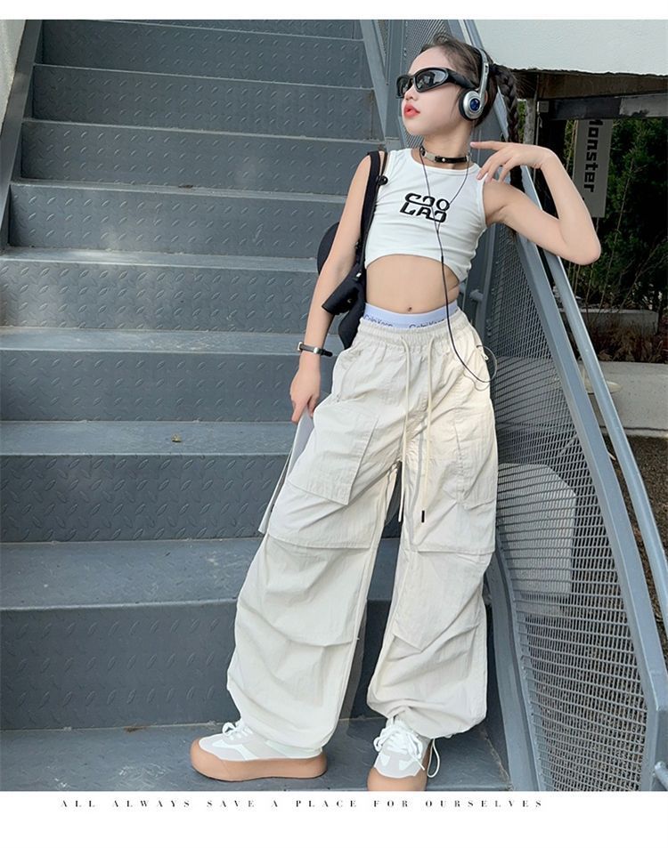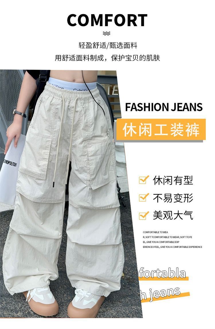 여자 작업 바지 2024 여름 새로운 스타일 어린이 바지 여성 큰 어린이 여름 착용 얇은 유행 바지스토어 가기