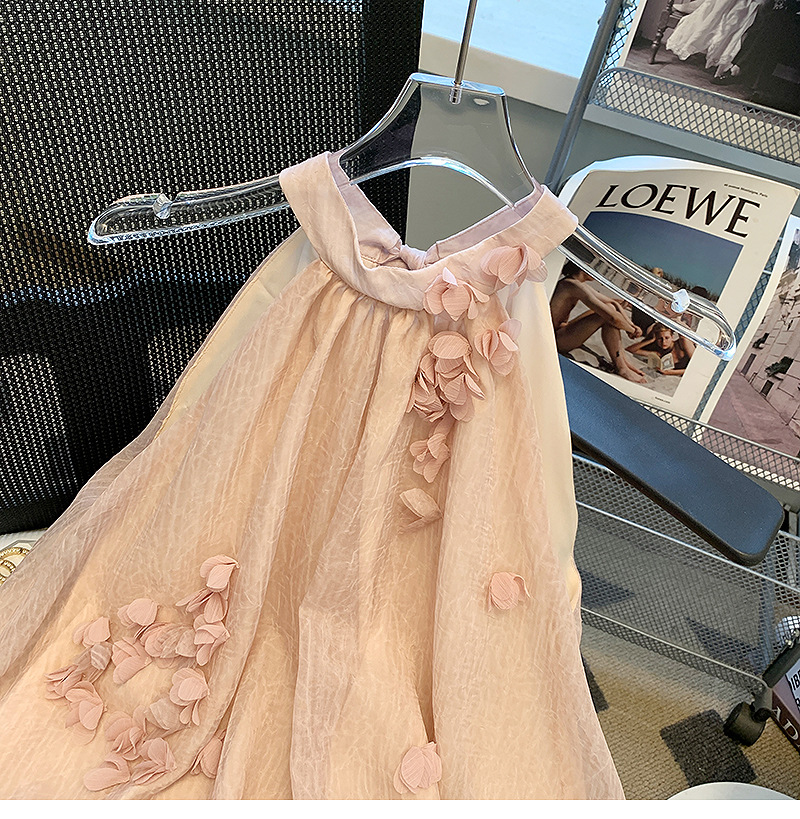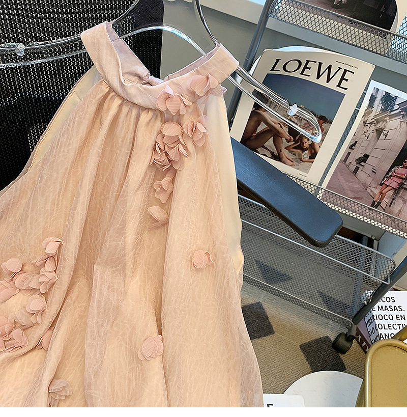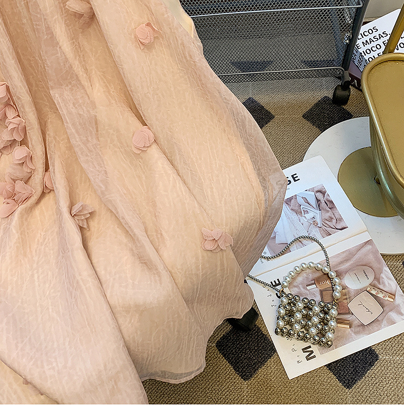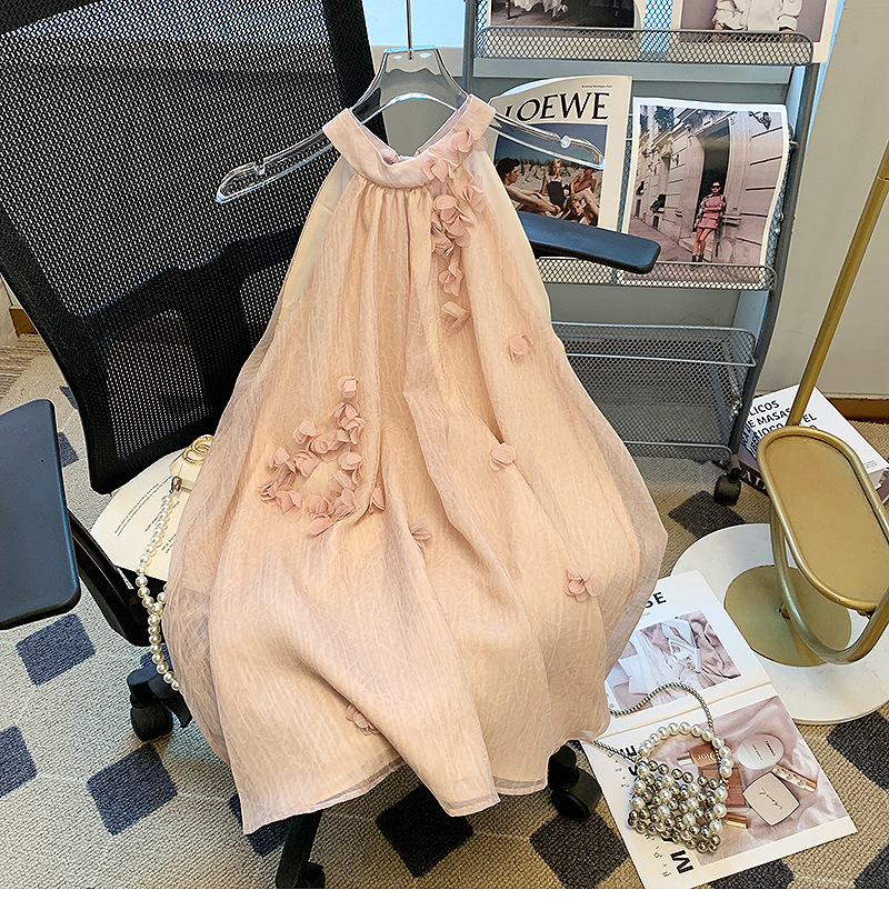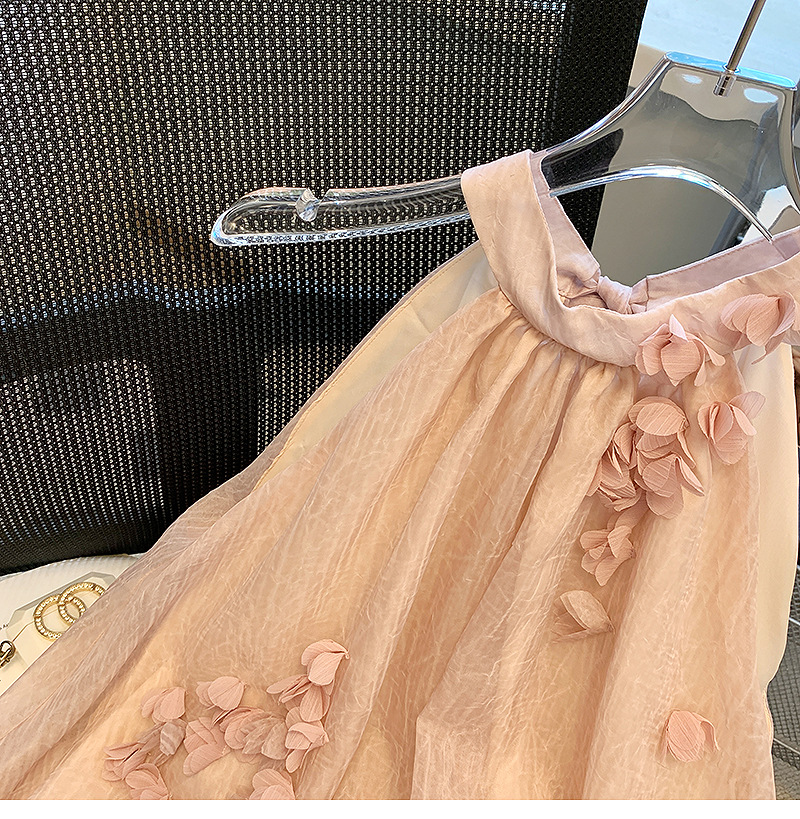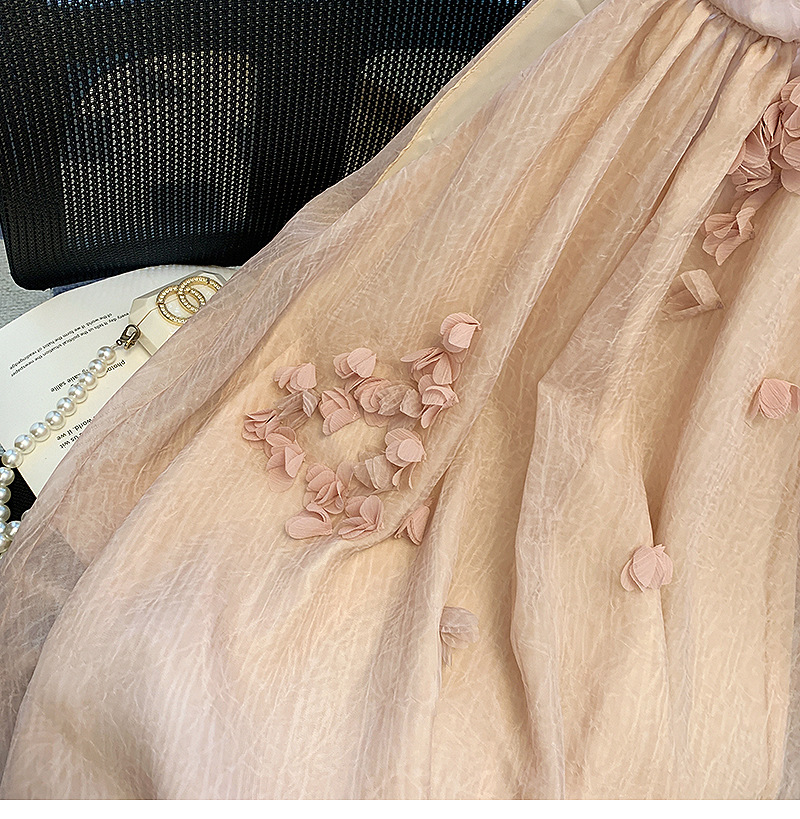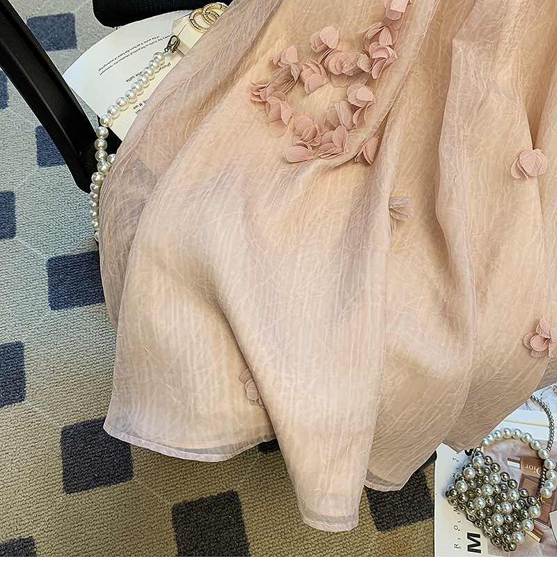 프랑스 스타일 핑크 3 차원 꽃잎 셔츠 여성용 여름 도파민 소녀의 배꼽 원피스 시폰 작은 탑