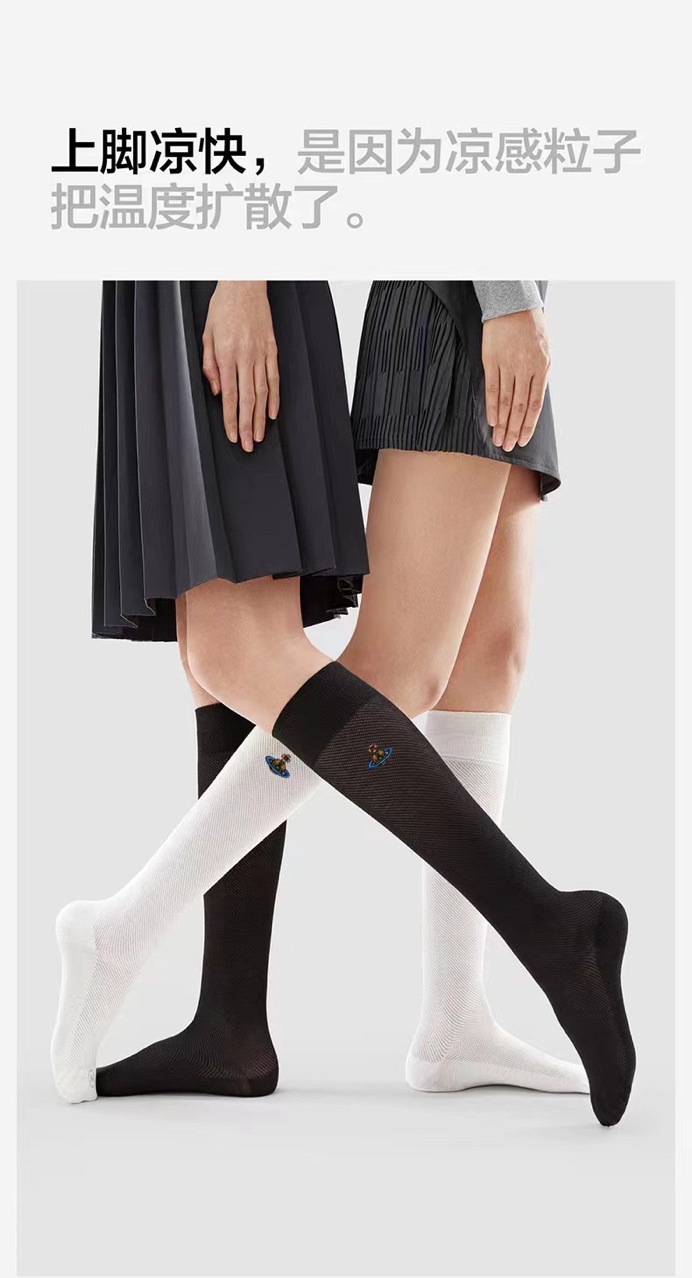 서부 황후 Dowager의 새로운 일본 토성 자수 송아지 양말 메쉬 통기성 얇은 Jk 블랙과 화이트 솔리드 컬러 스타킹 슬림스토어 가기