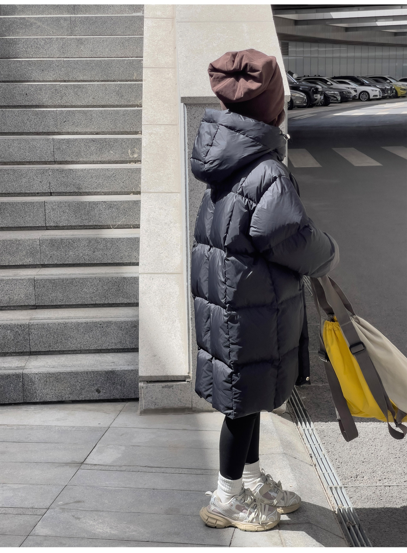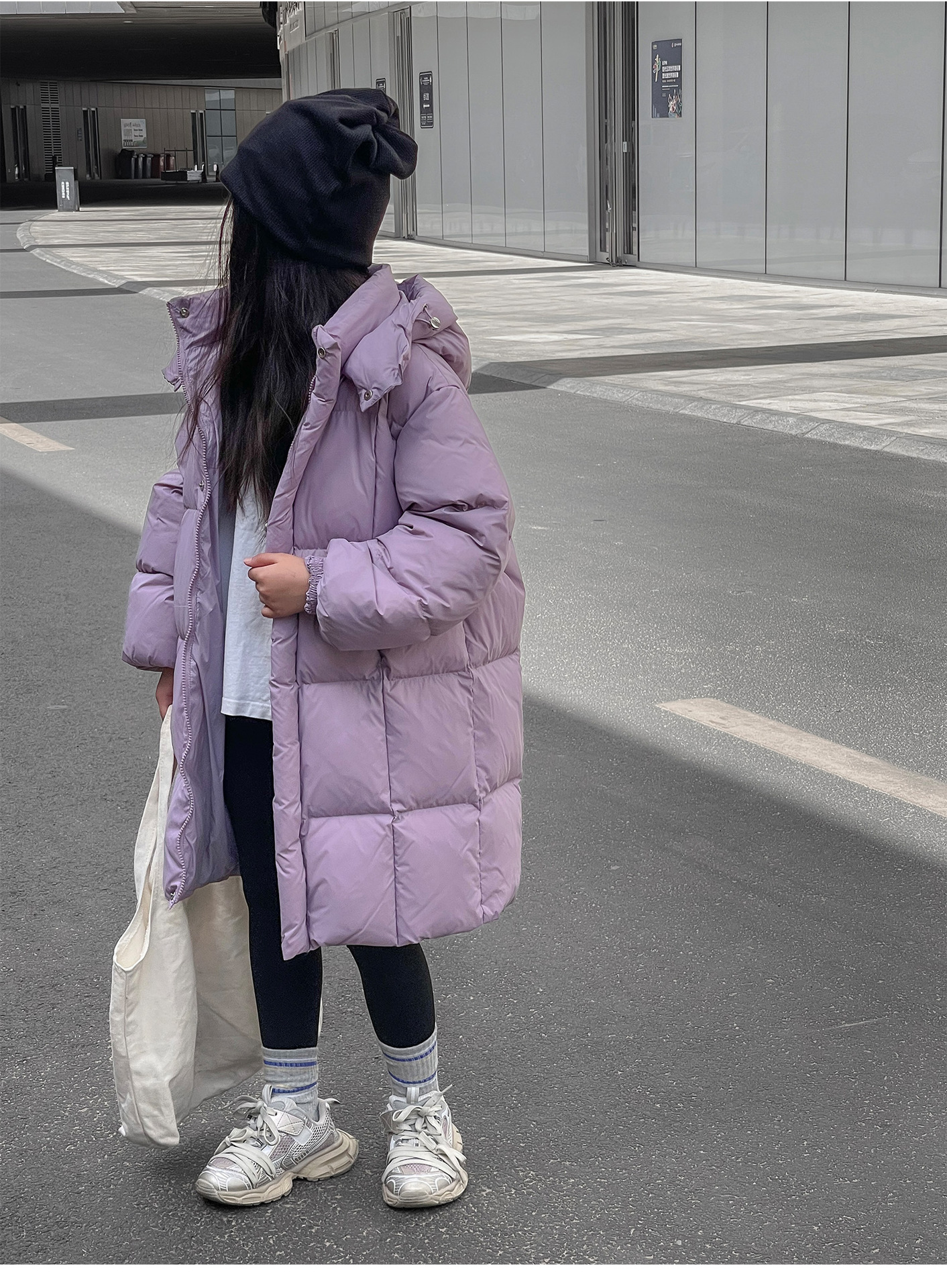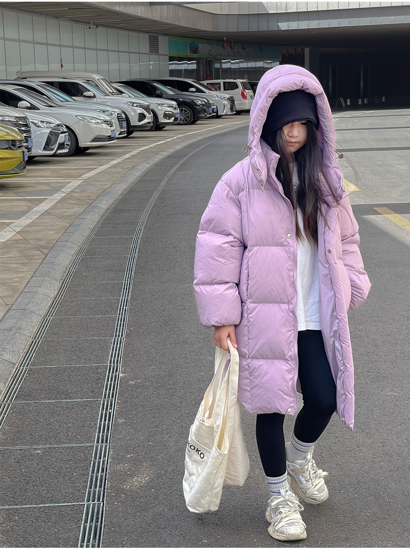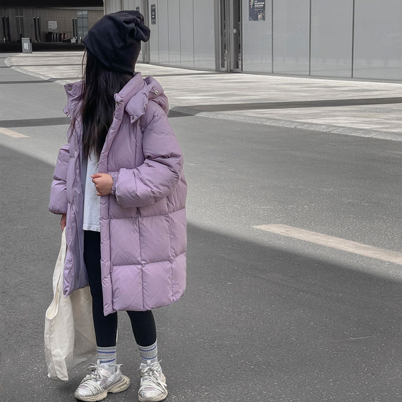 2024 새로운 어린이 후드 다운 재킷 한국 패션 소년 소녀 긴 두꺼운 흰색 오리 다운 코트스토어 가기