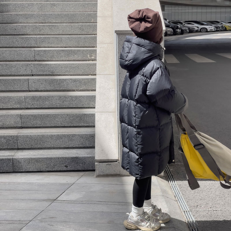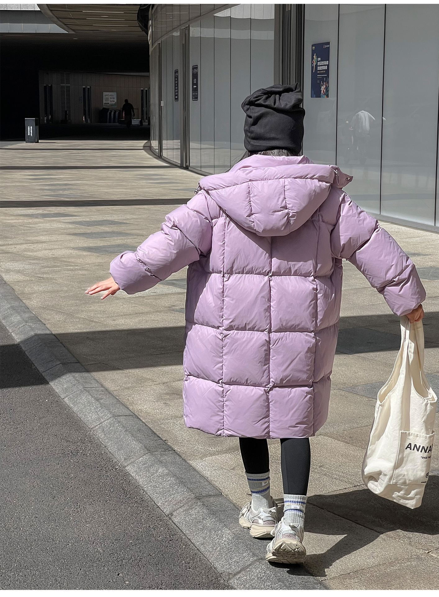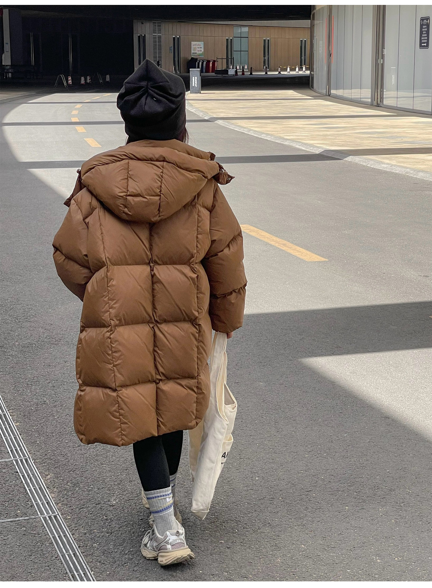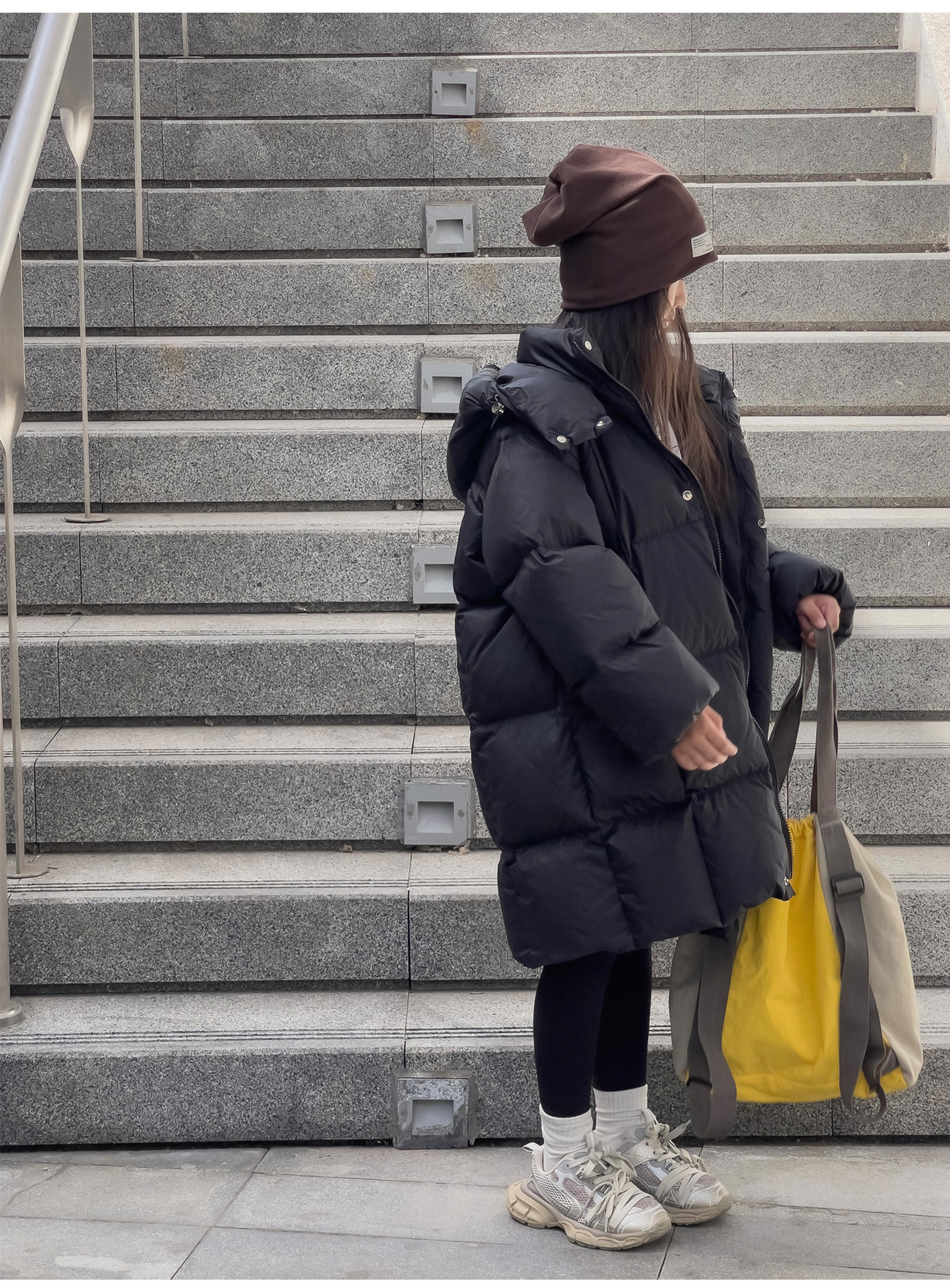 2024 새로운 어린이 후드 다운 재킷 한국 패션 소년 소녀 긴 두꺼운 흰색 오리 다운 코트스토어 가기