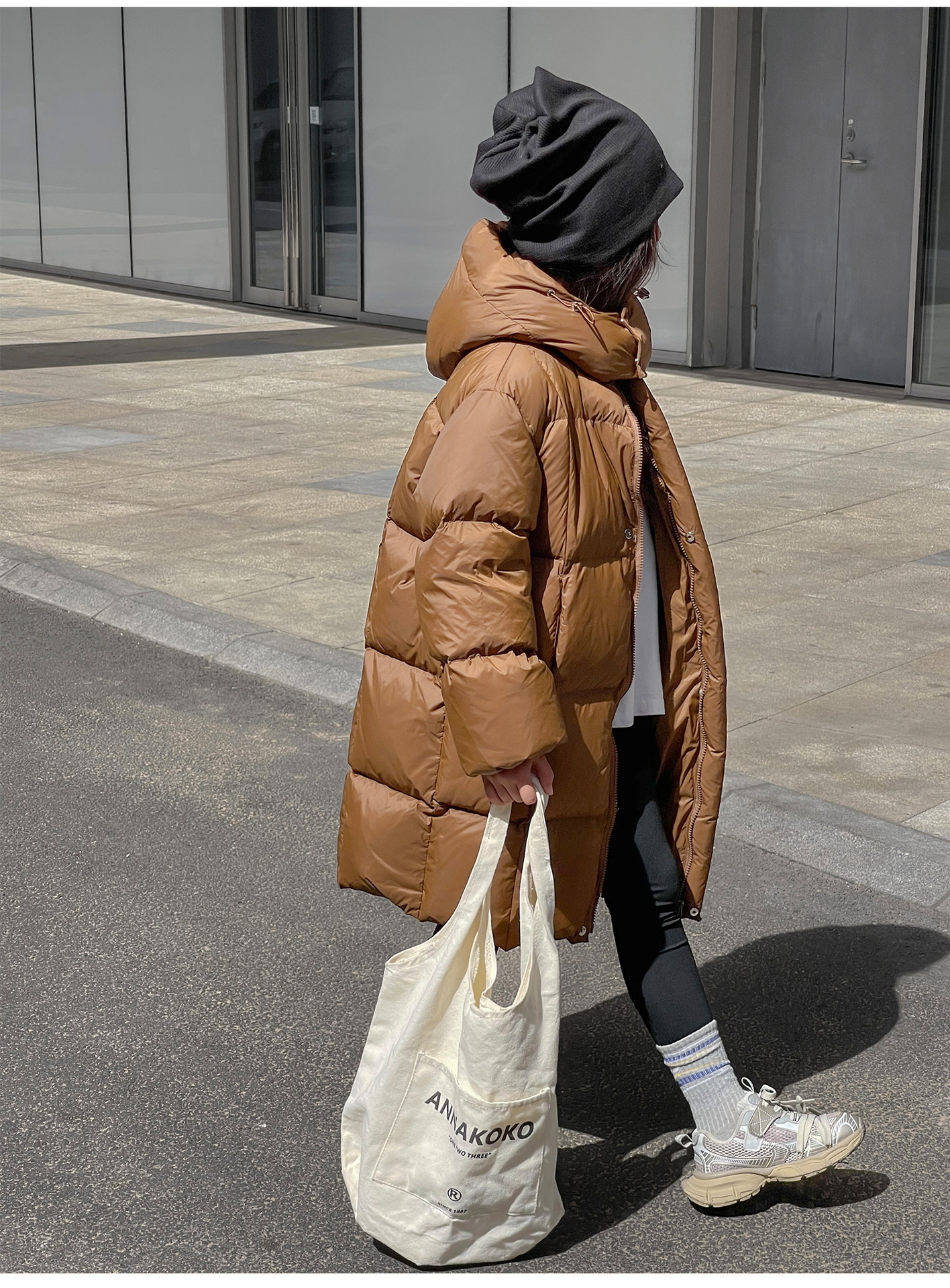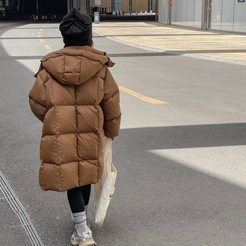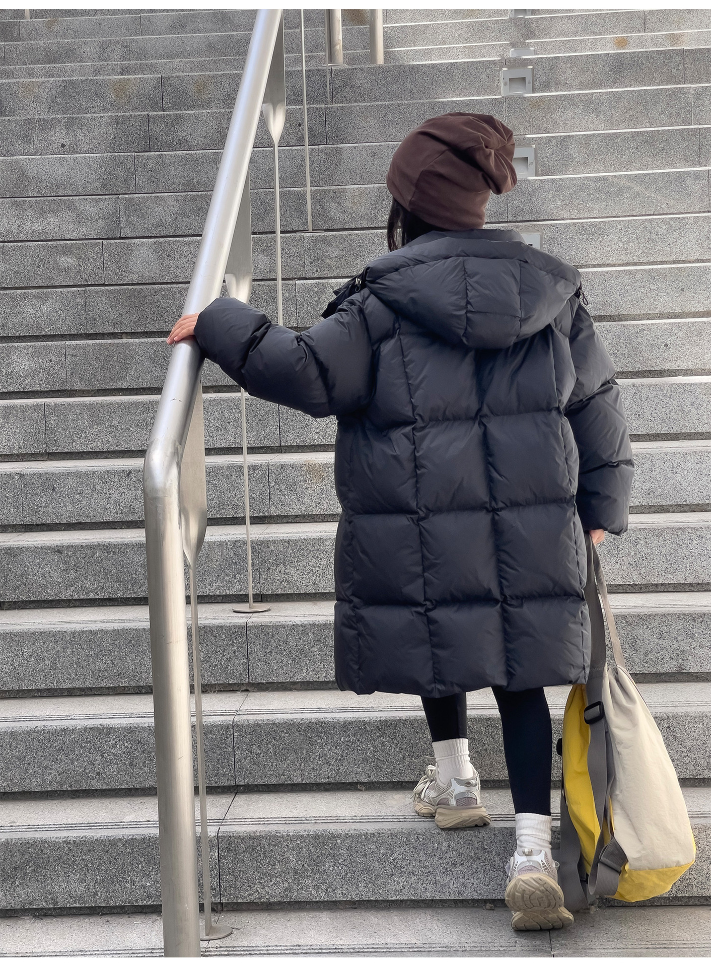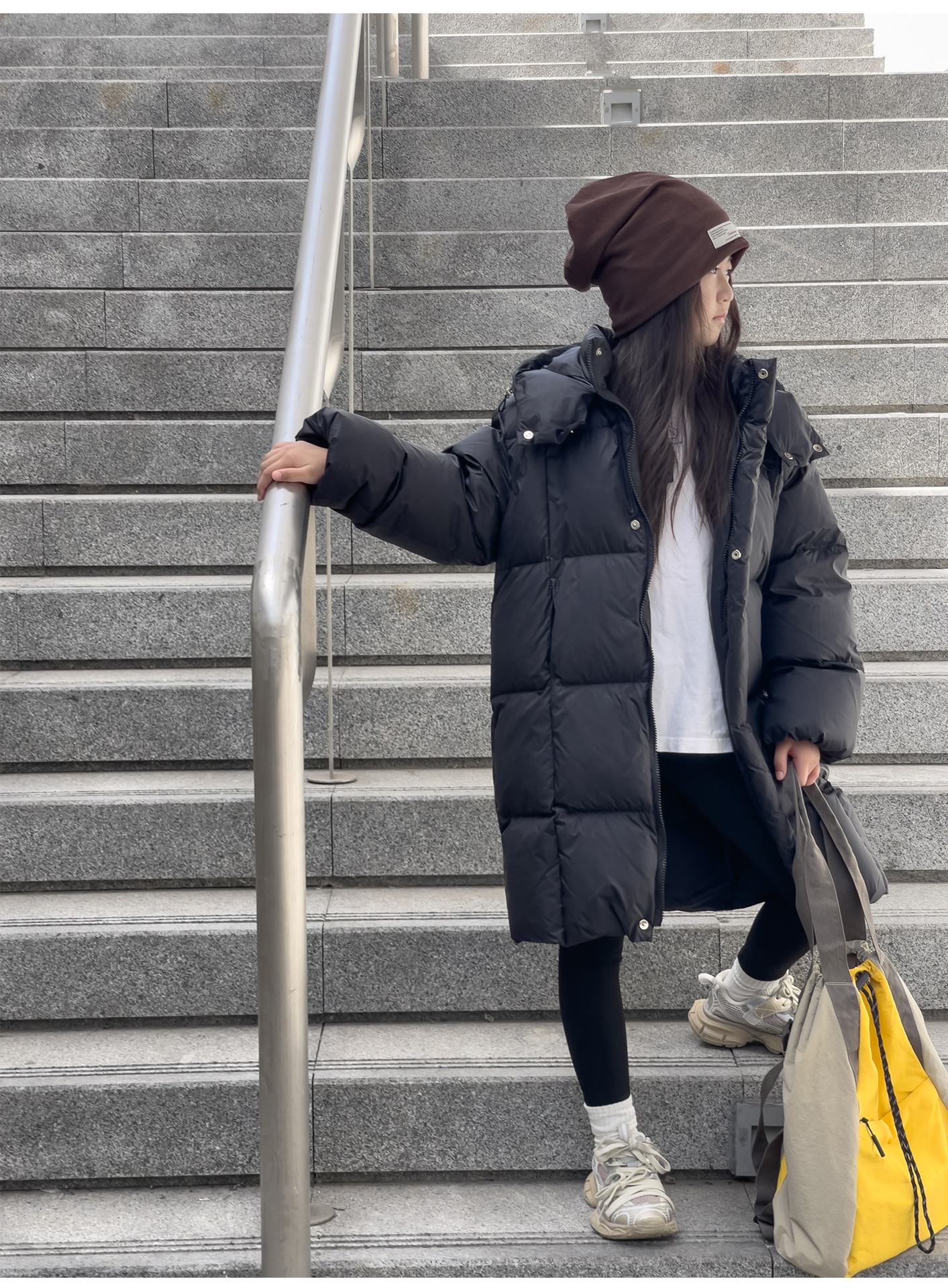 2024 새로운 어린이 후드 다운 재킷 한국 패션 소년 소녀 긴 두꺼운 흰색 오리 다운 코트스토어 가기