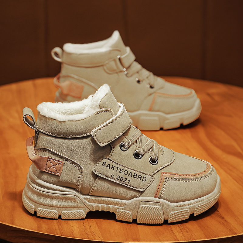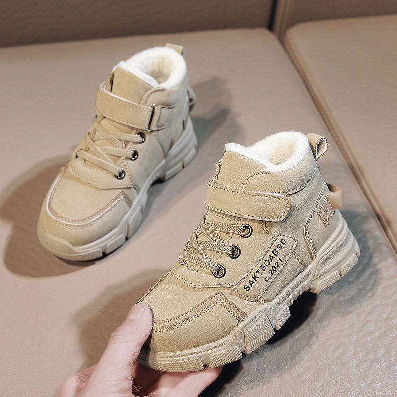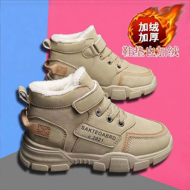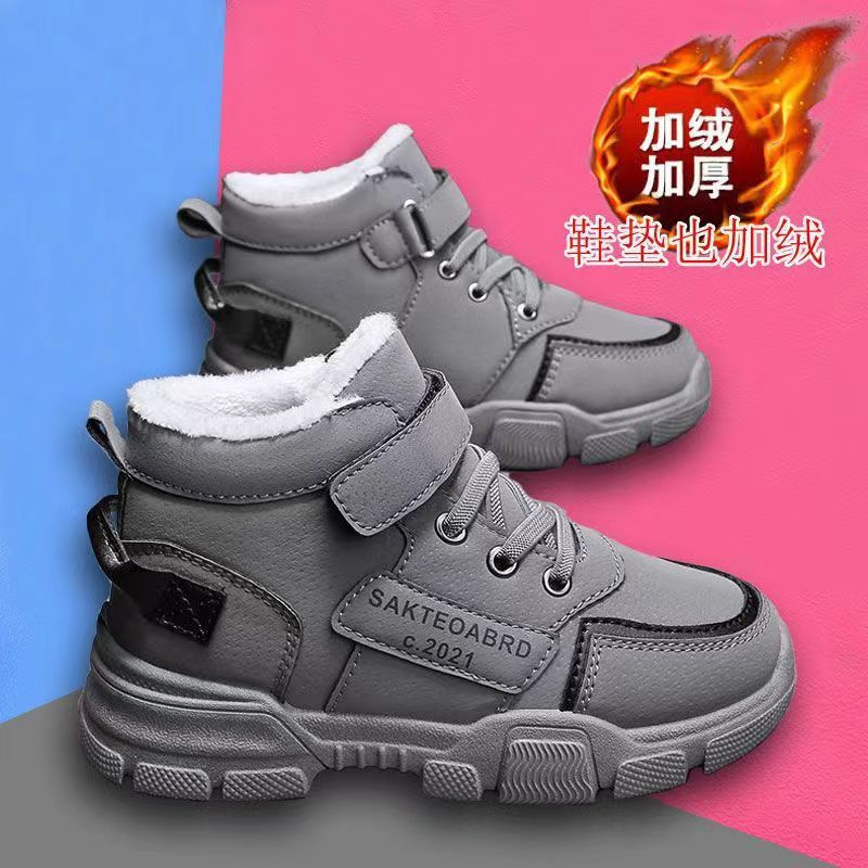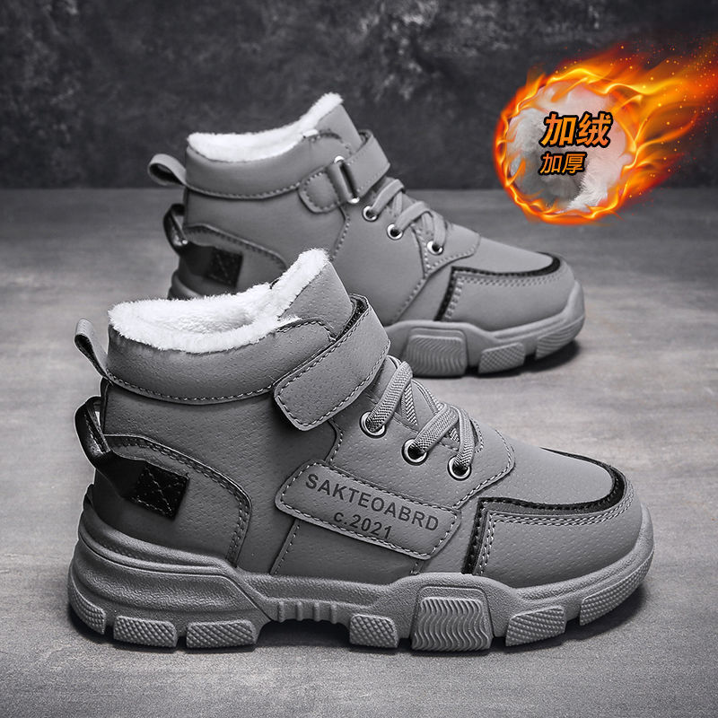 소년 신발 가을과 겨울 어린이 기모 두꺼운 따뜻한 스노우 부츠 중 큰 어린이 소녀 두 면 스포츠 코튼 신발
