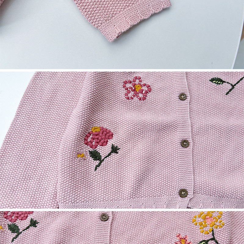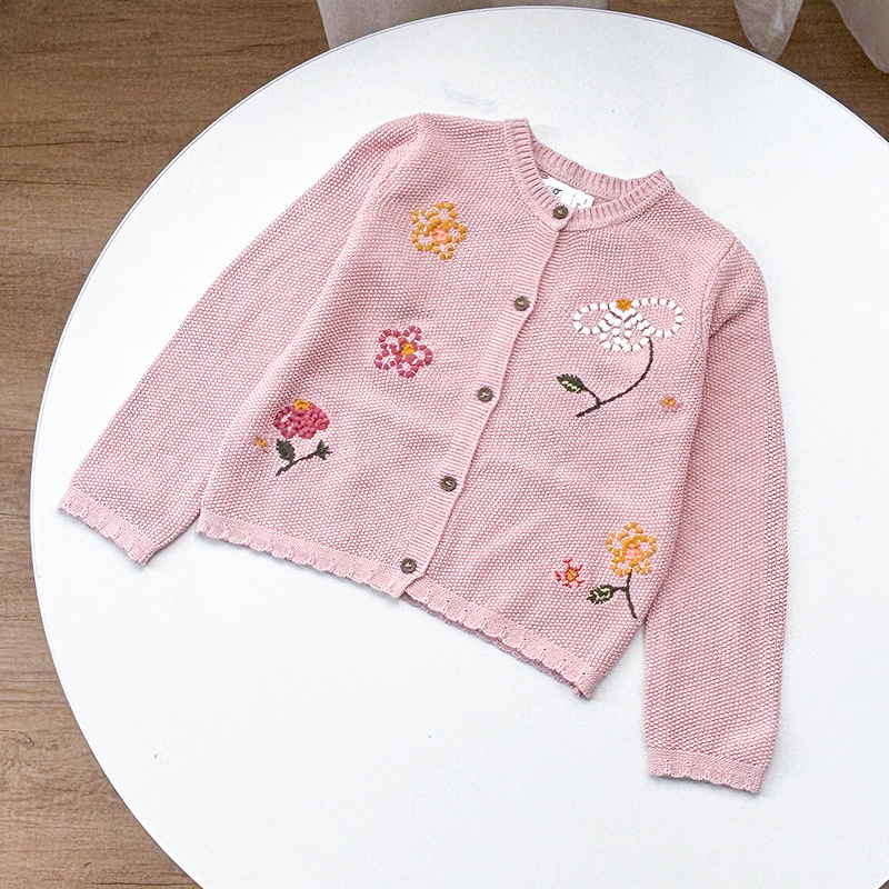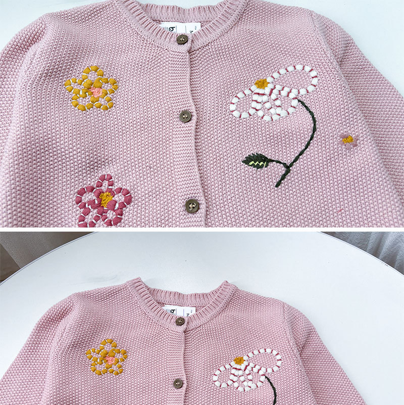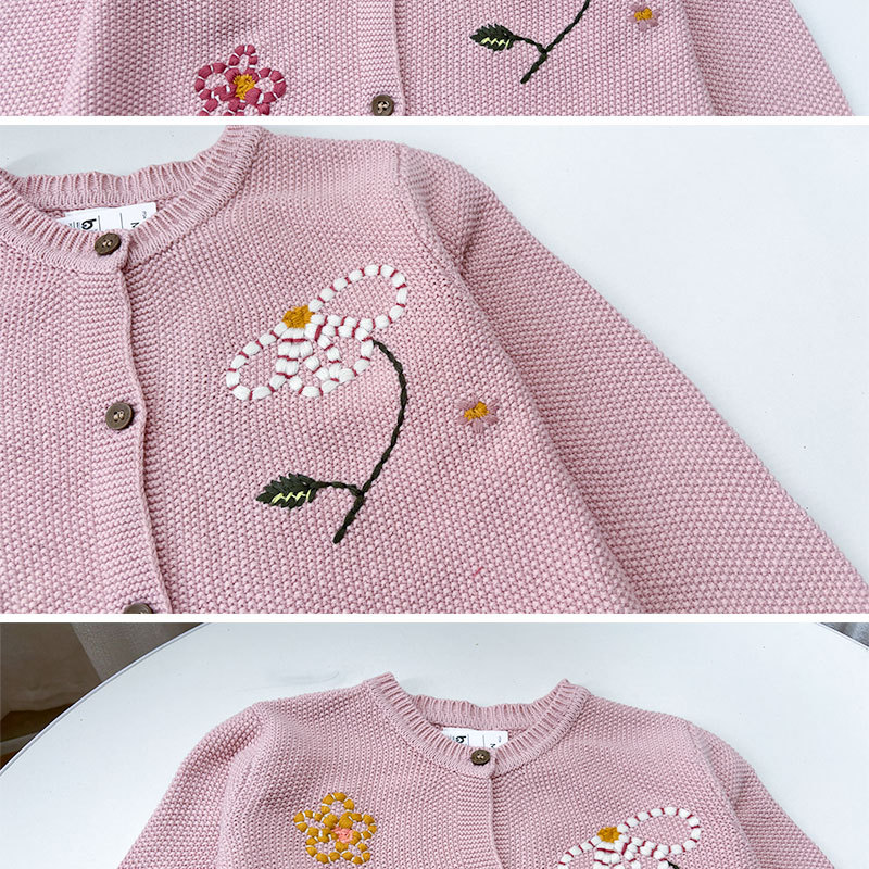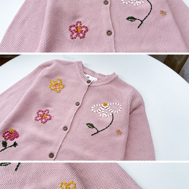잉단! 여자 니트 카디건 코트 아기 스웨터 면 손으로 수 놓은 작은 꽃 외국 스타일 코트 100-150