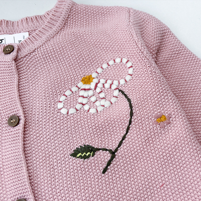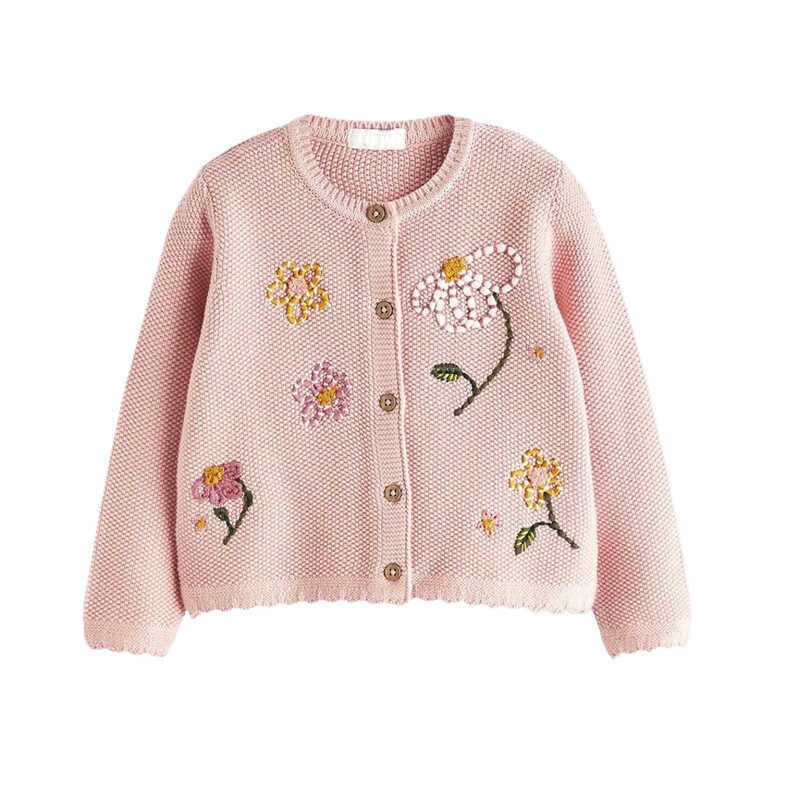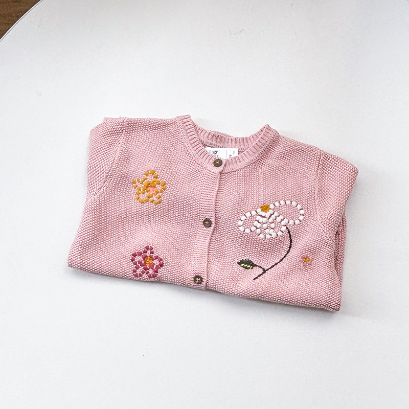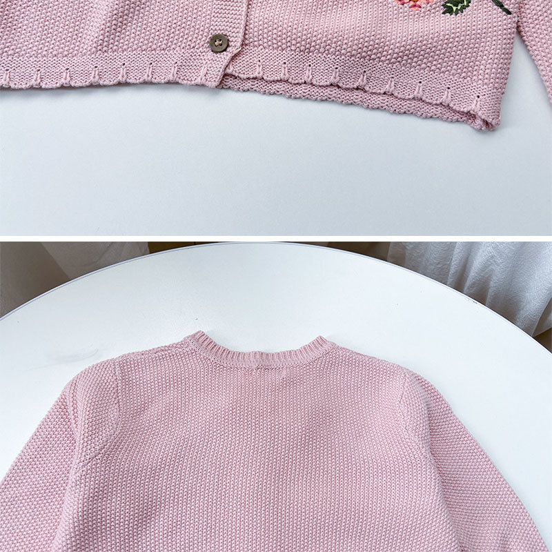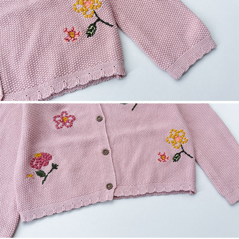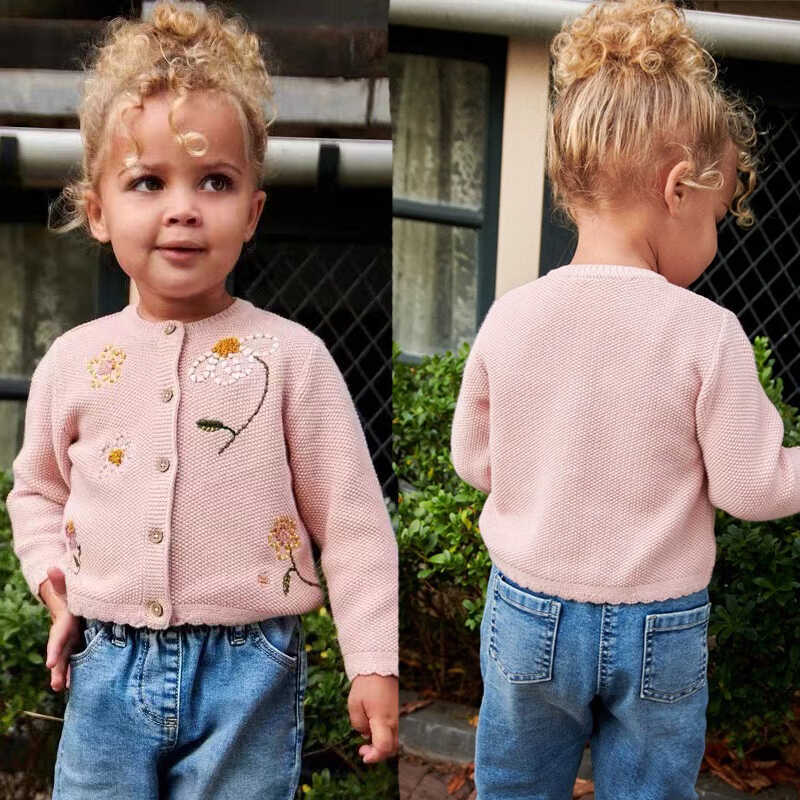 잉단! 여자 니트 카디건 코트 아기 스웨터 면 손으로 수 놓은 작은 꽃 외국 스타일 코트 100-150