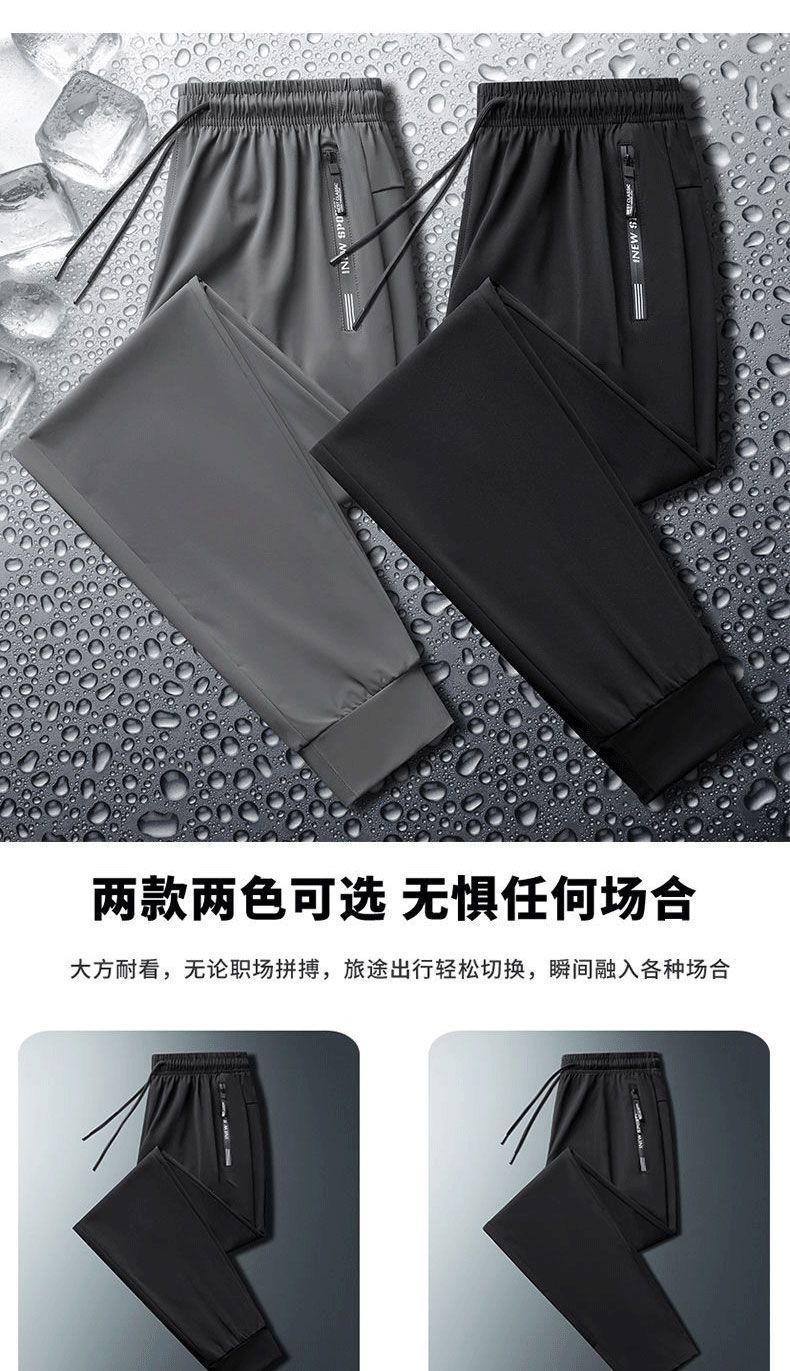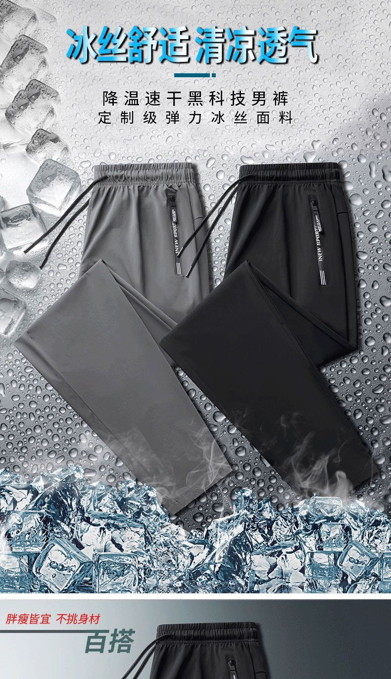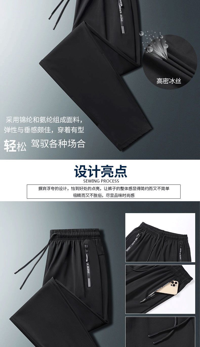 아이스 실크 캐주얼 바지 남자 여름 빠른 건조 에어컨 바지 느슨한 스트레이트 바지 높은 스트레치 스포츠 바지 솔리드 컬러 발목 바지
