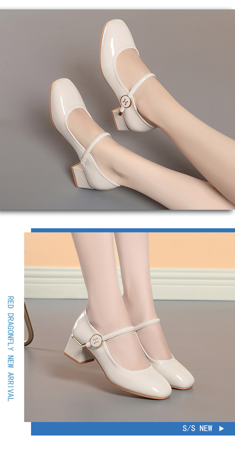 Chunky Heel Mid-Heel 신발 여성의 2024 봄과 가을 가죽 신발 피곤하지 않은 발 들러리 신발 스커트 스퀘어 발가락 신발 메리 제인 여성 신발스토어 가기