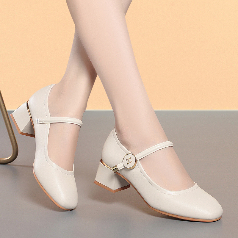 Chunky Heel Mid-Heel 신발 여성의 2024 봄과 가을 가죽 신발 피곤하지 않은 발 들러리 신발 스커트 스퀘어 발가락 신발 메리 제인 여성 신발