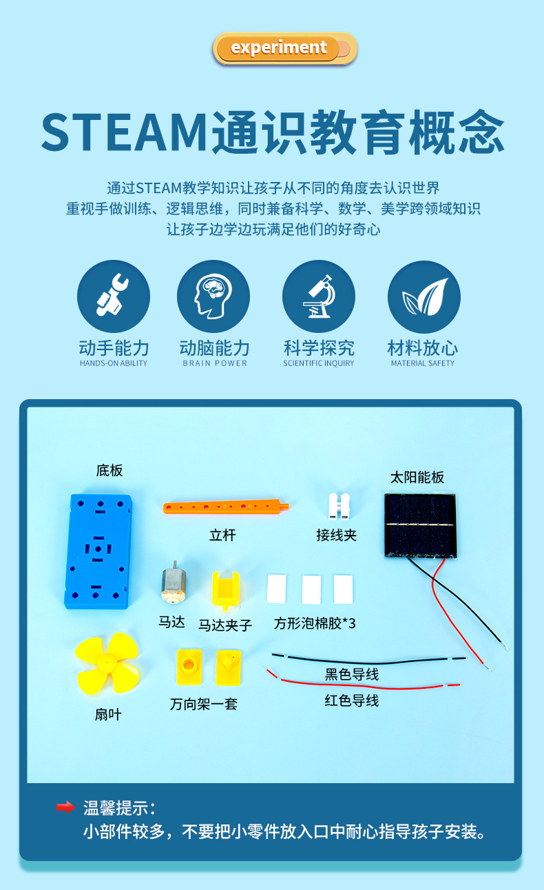 과학 실험 diy 보편적 인 태양 팬 새로운 에너지 기술 작은 생산 어린이 수제 재료 패키지 세트