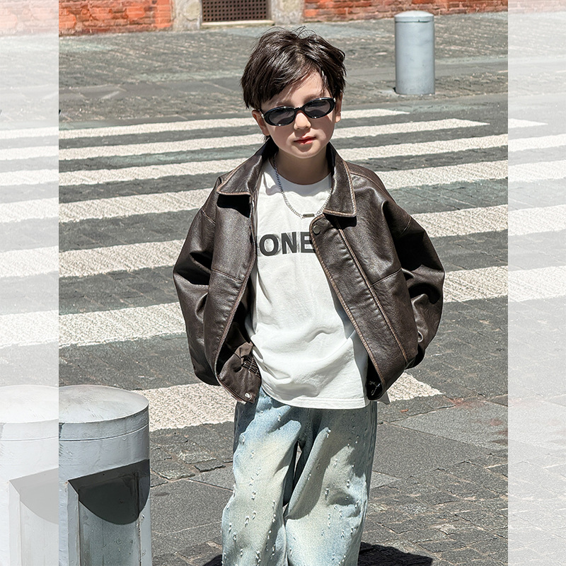[우편 판매 1 시간 전 10: 00 에 7.31] 어린이 파이 슈아이 홍콩 스타일 PU 가죽 소년 오토바이 코트스토어 가기