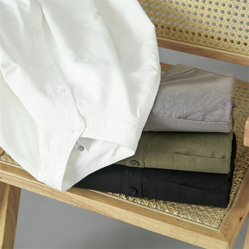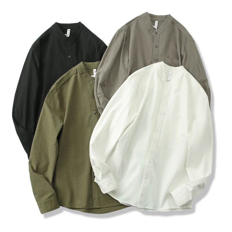 젊고 중년 헨리 칼라 100 면 더블 원사 편안한 통기성 가을 남자 복고풍 칼라 캐주얼 긴팔 트렌디 셔츠스토어 가기