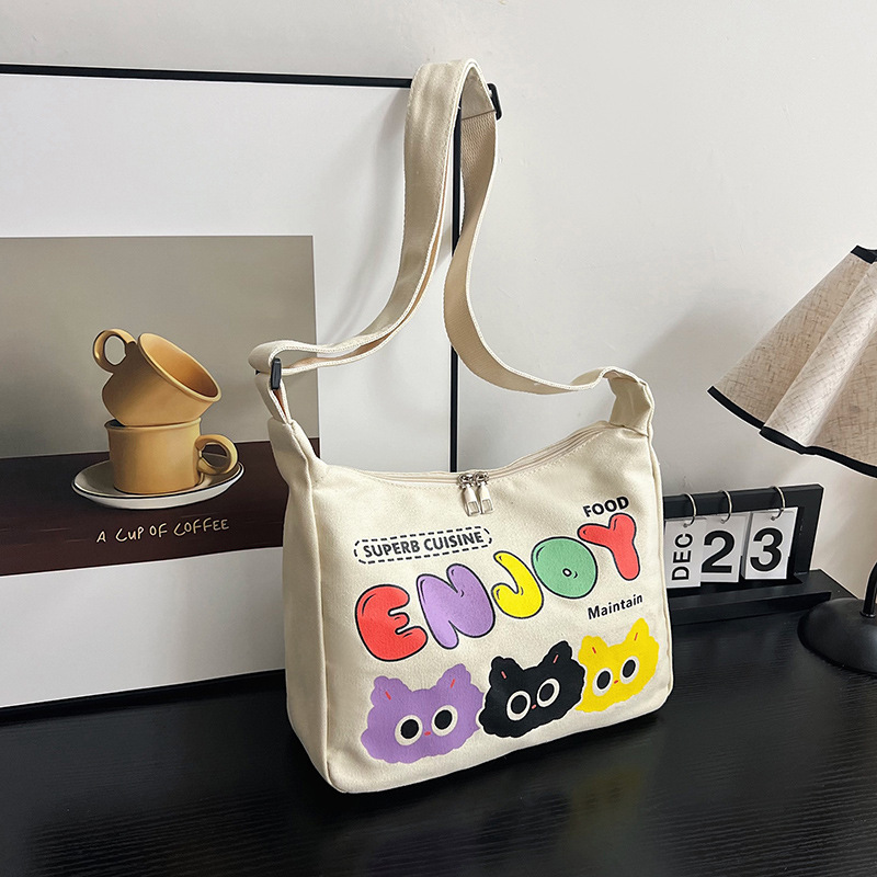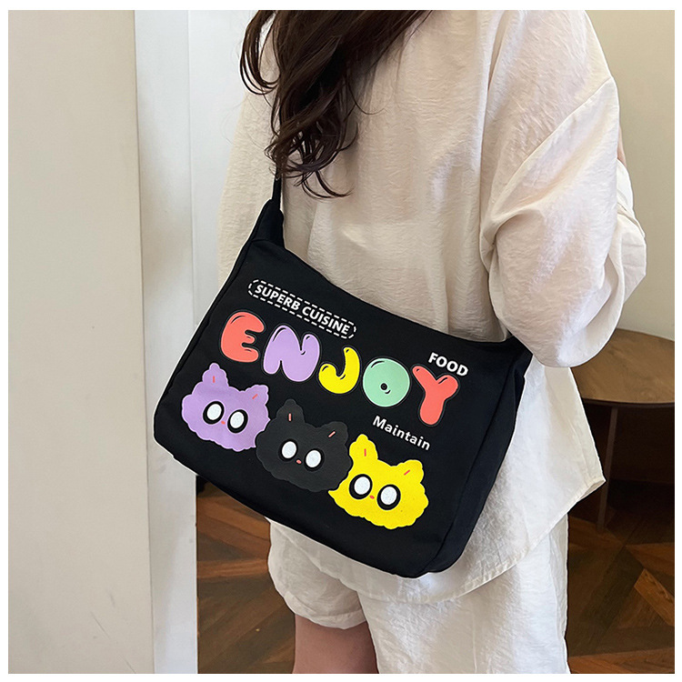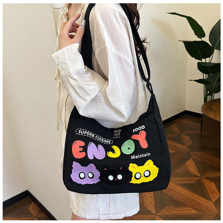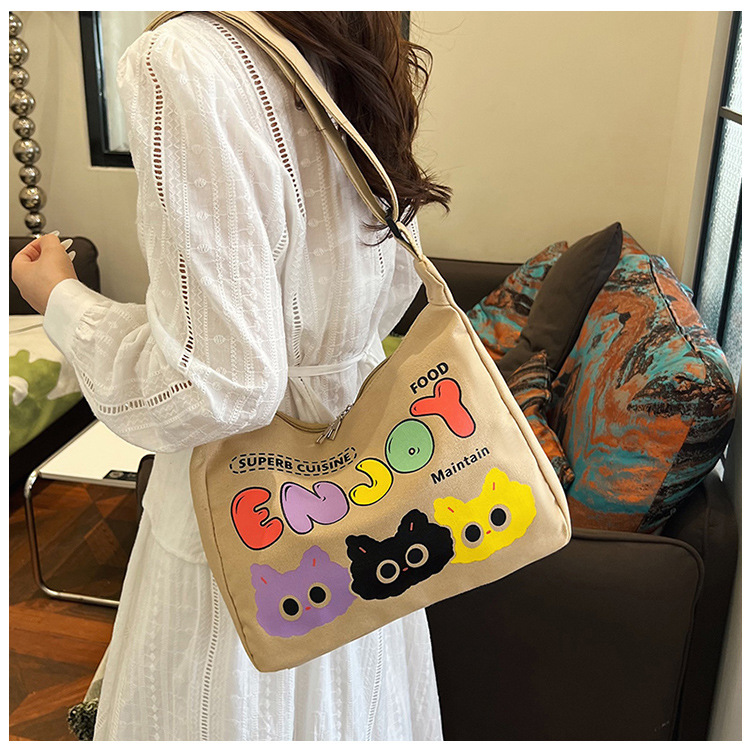 만화 캔버스 2024 새로운 대용량 어깨 가방 학생 문학 스타일 크로스 바디 가방 작업 토트 백스토어 가기