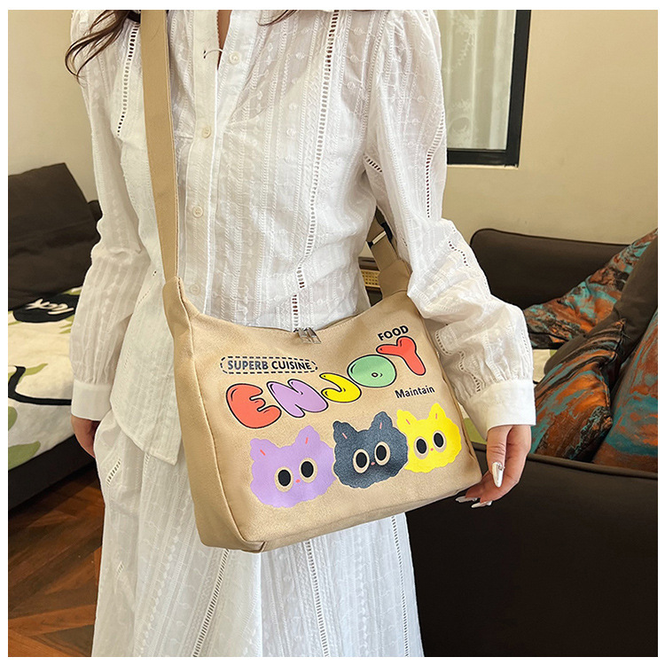 만화 캔버스 2024 새로운 대용량 어깨 가방 학생 문학 스타일 크로스 바디 가방 작업 토트 백