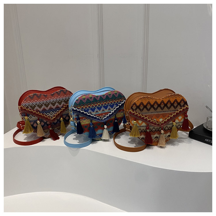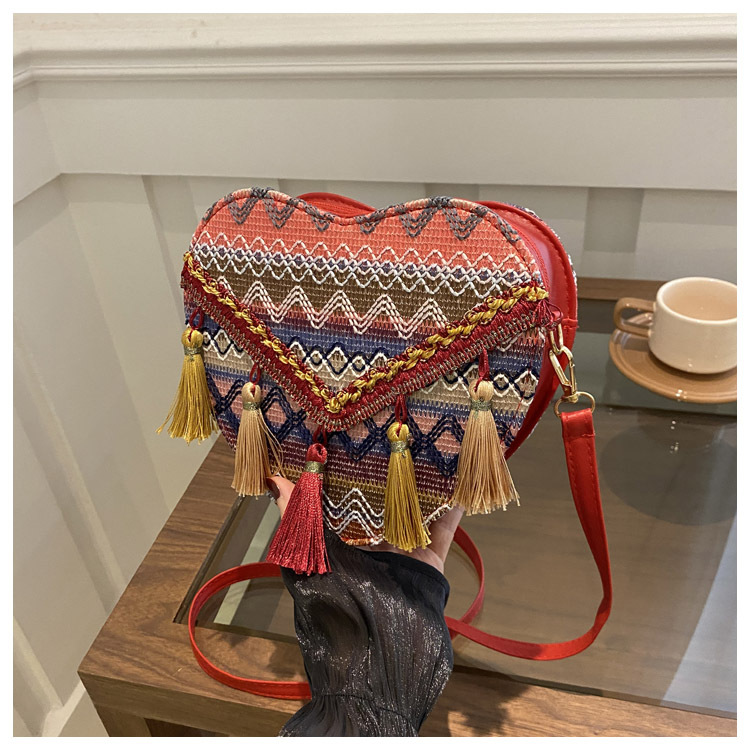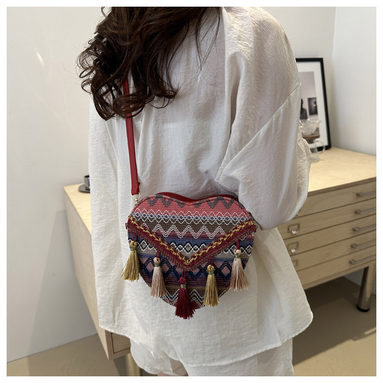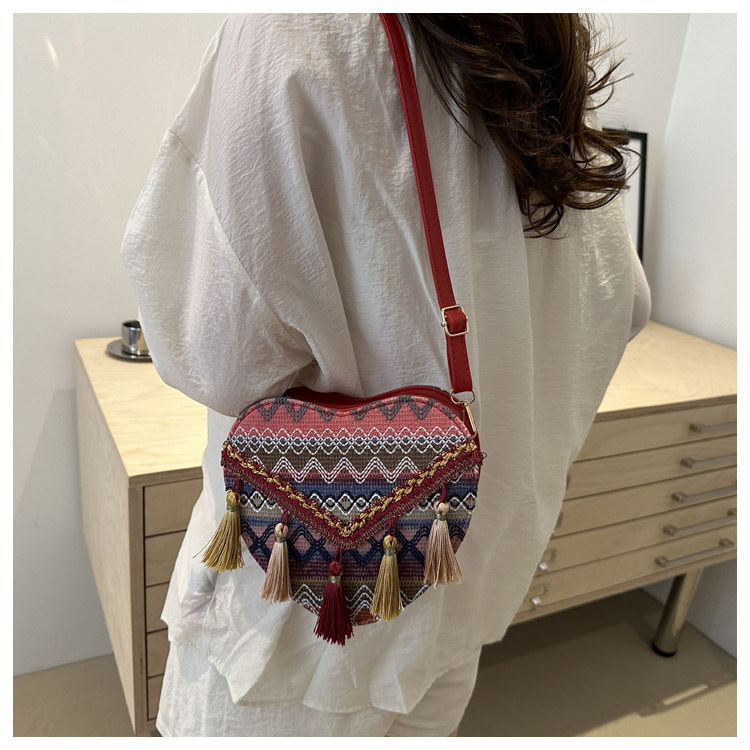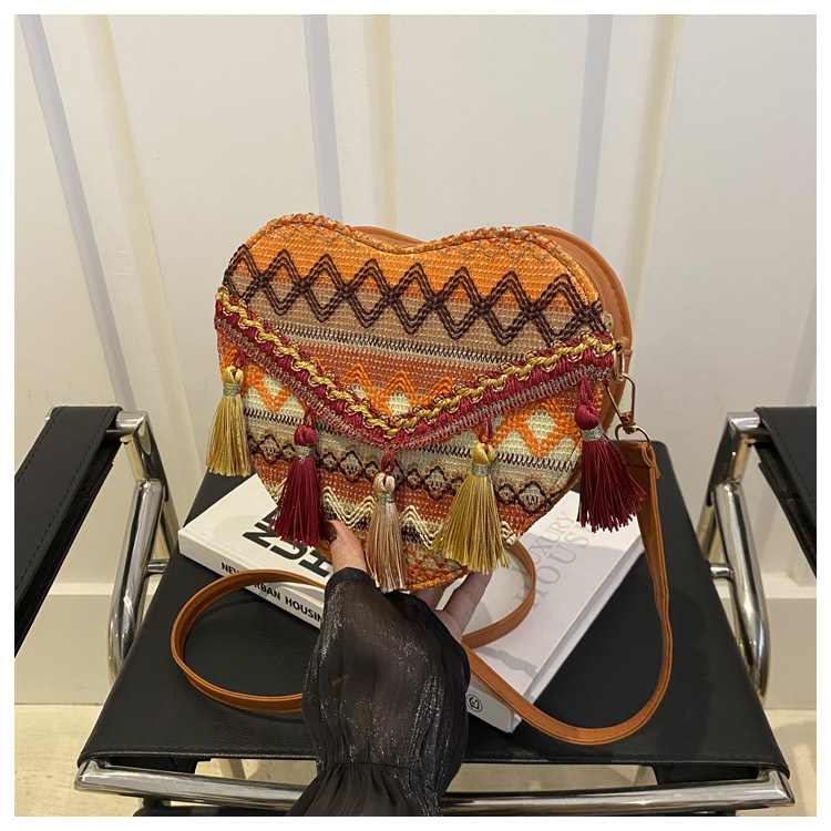 2024 새로운 고 가치 민족 술 가방 틈새 디자인 트렌디 한 어깨 크로스 바디 가방 여성용 하트 백