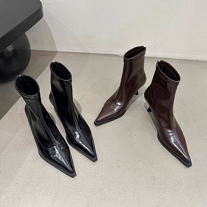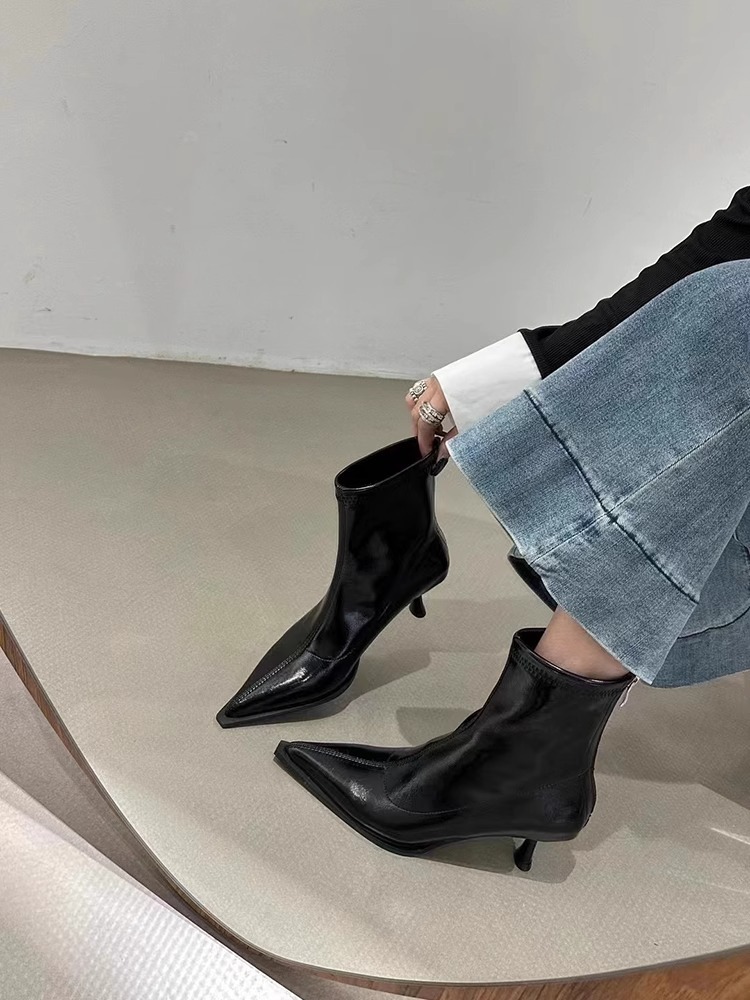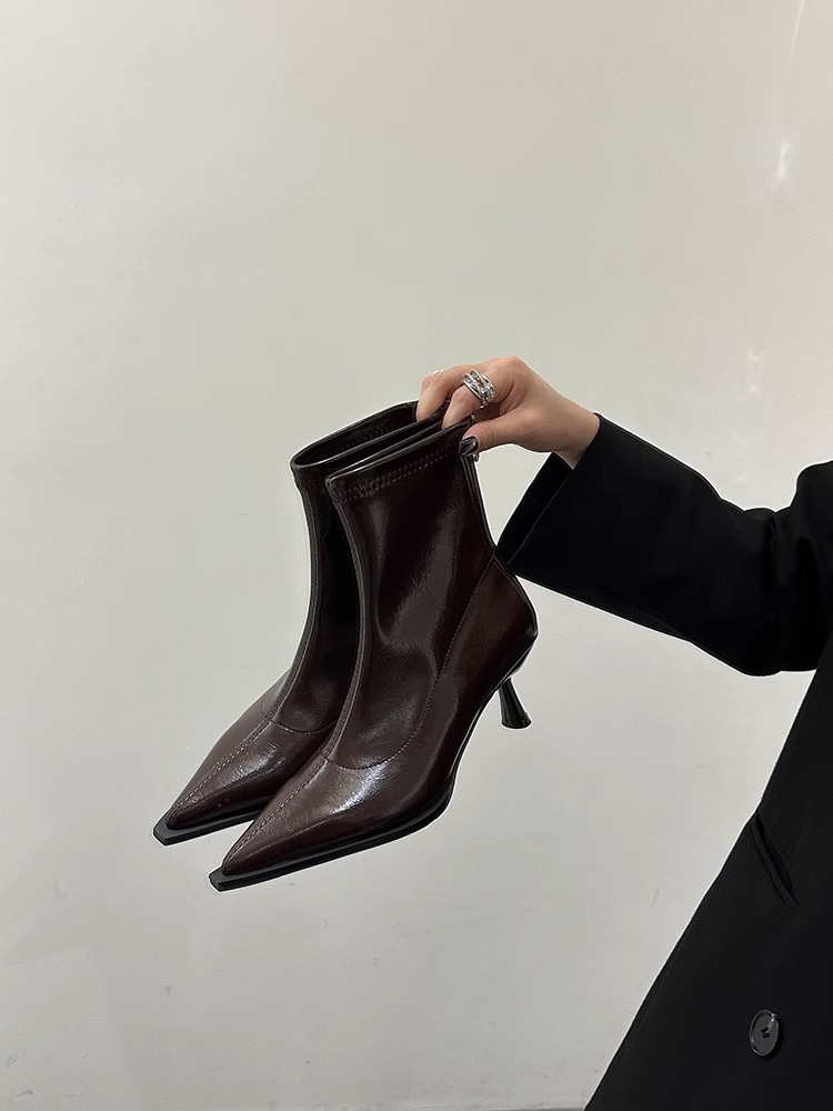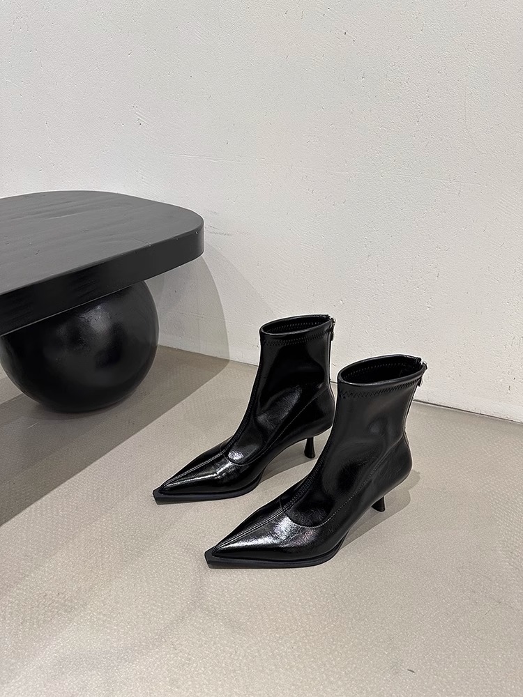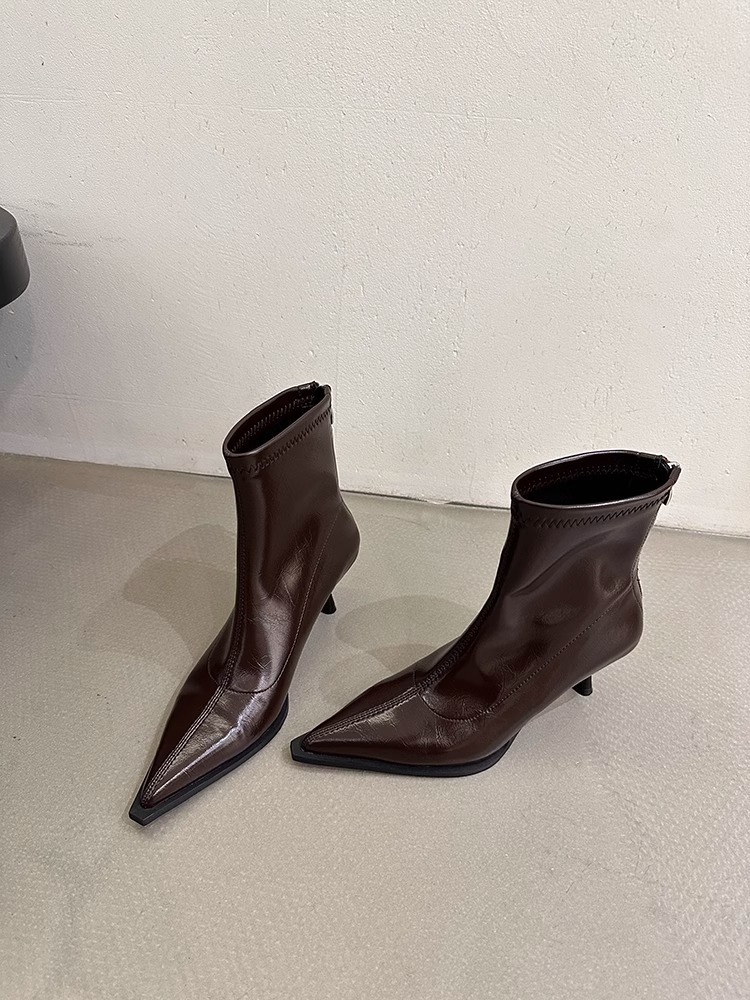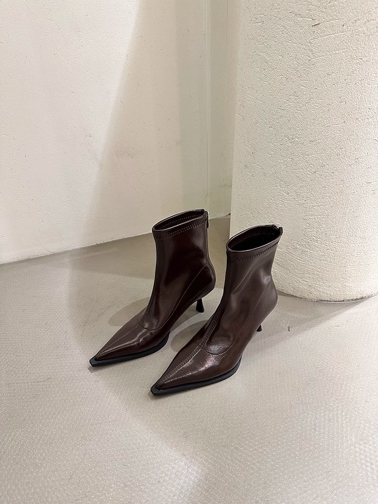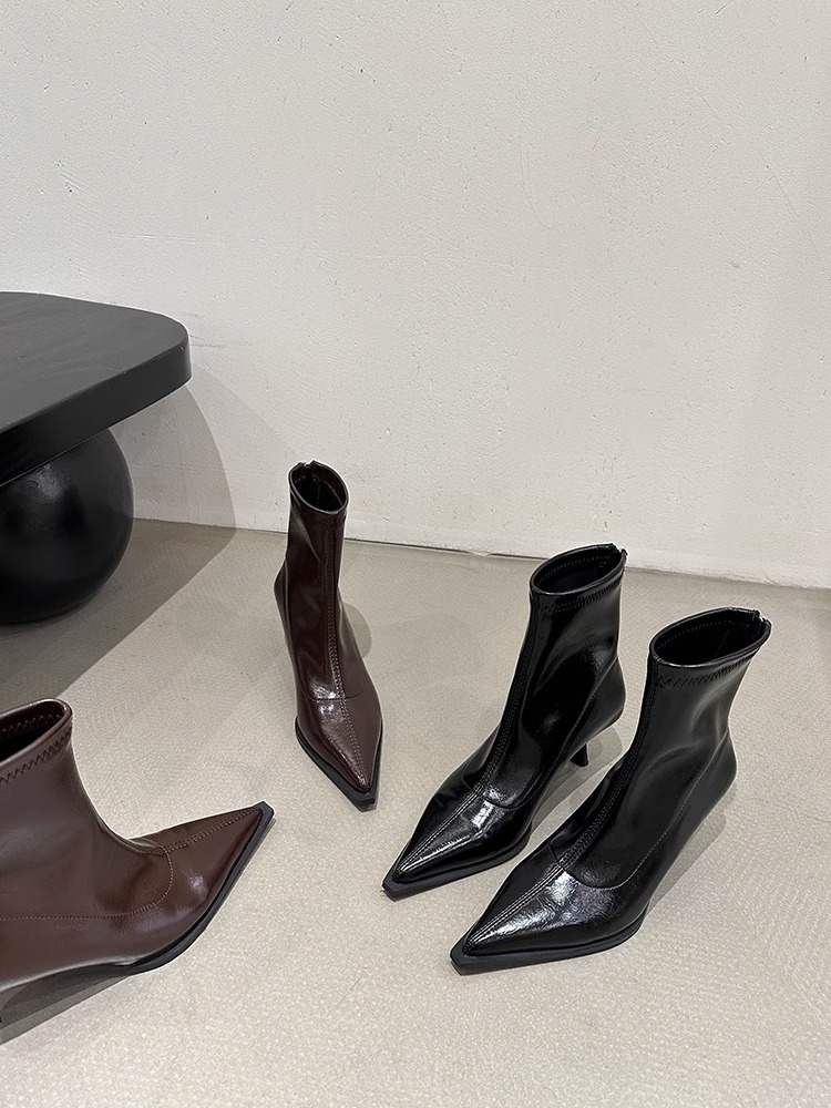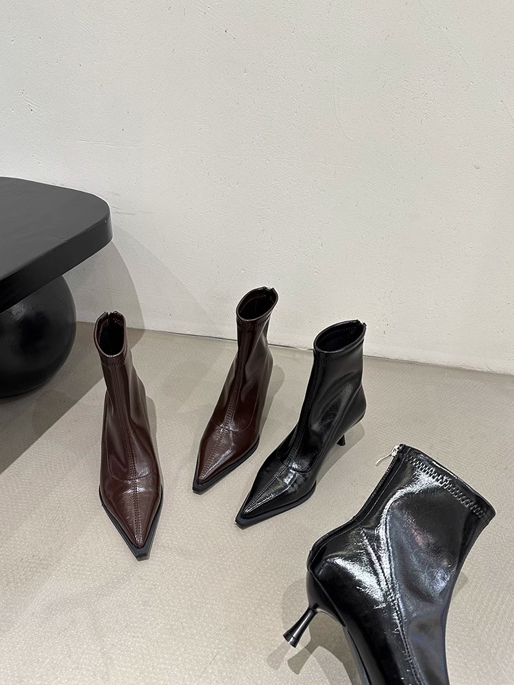 여성용 포인티드 토 숏부츠 2025 가을 겨울 신상 부츠 플러스 벨벳 숏부츠 니치 슬림 여성 부츠 스틸레토 하이힐 부츠