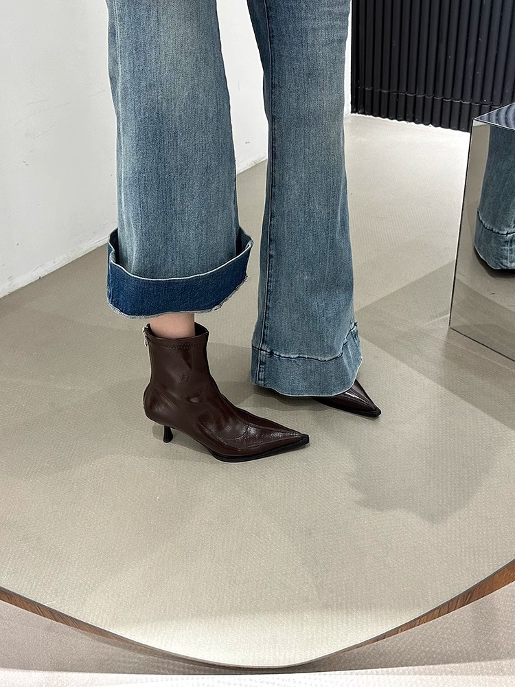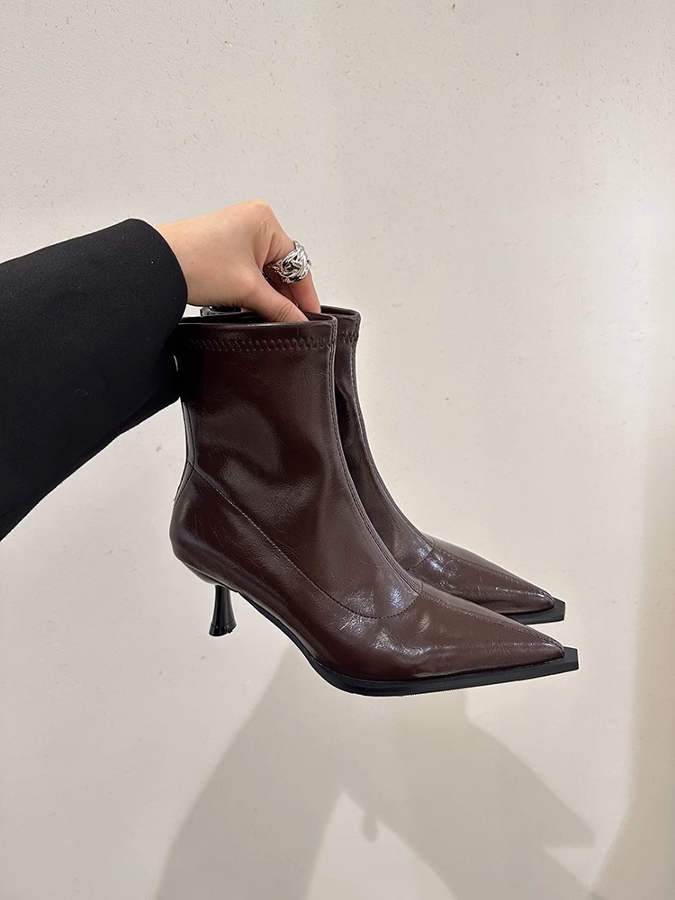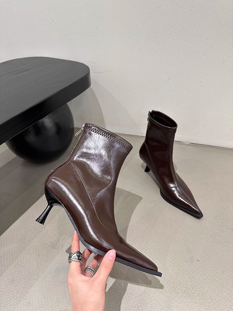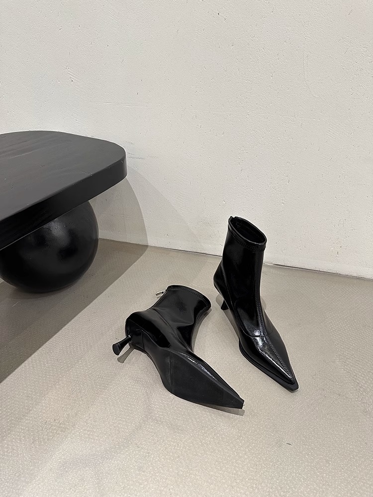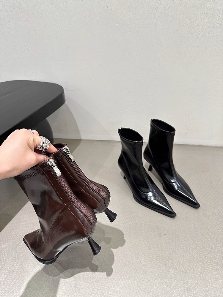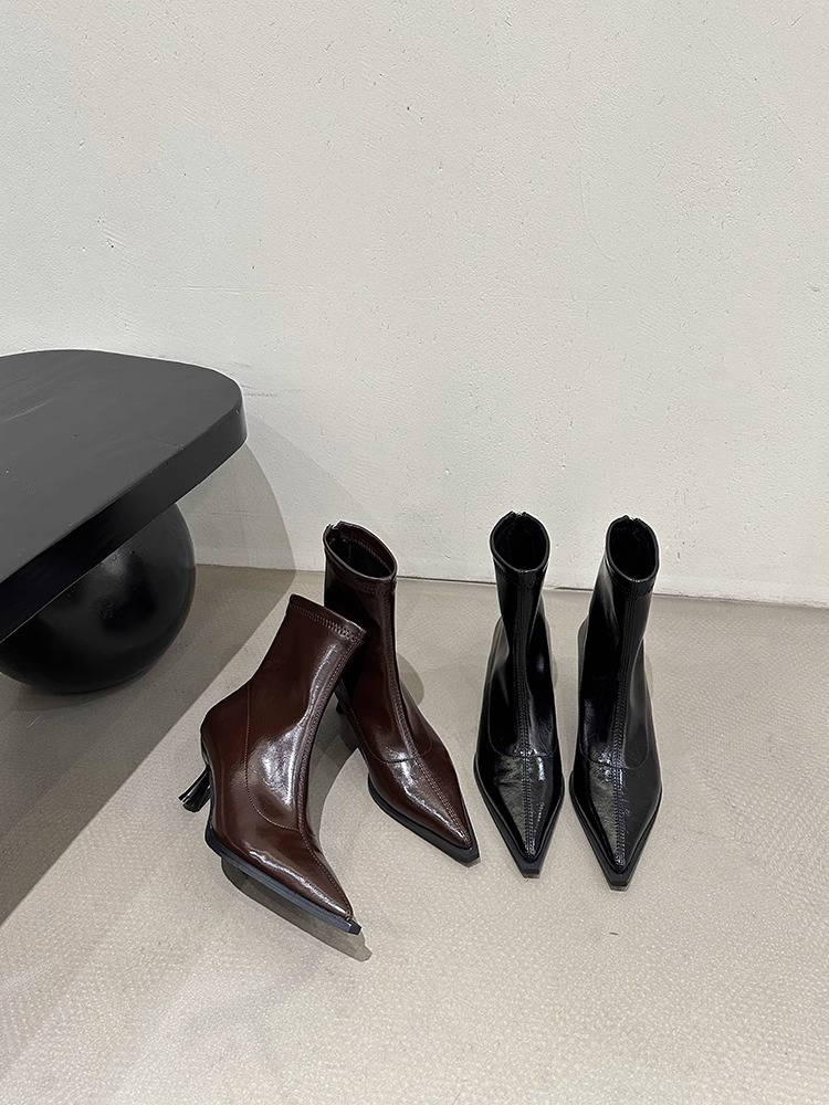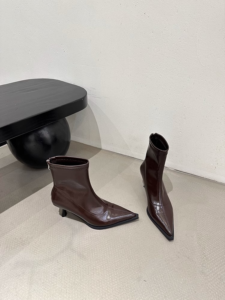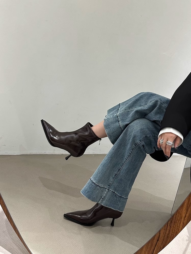 여성용 포인티드 토 숏부츠 2025 가을 겨울 신상 부츠 플러스 벨벳 숏부츠 니치 슬림 여성 부츠 스틸레토 하이힐 부츠