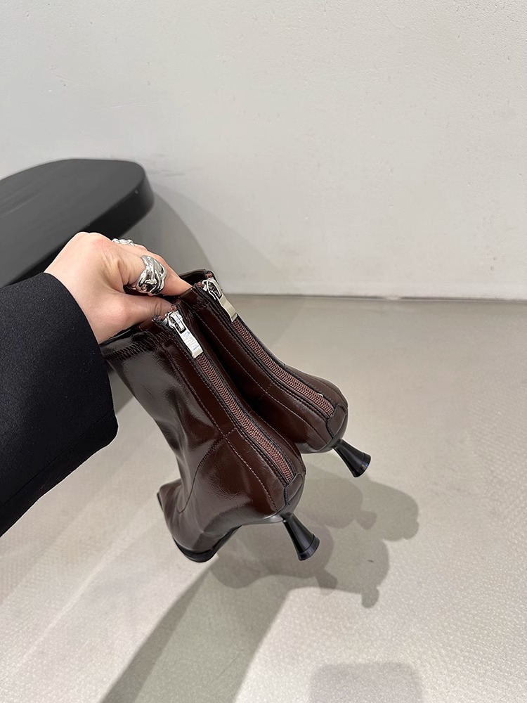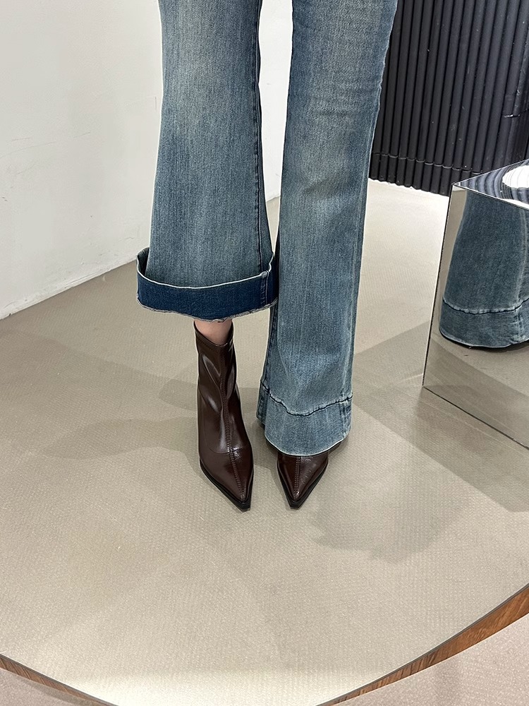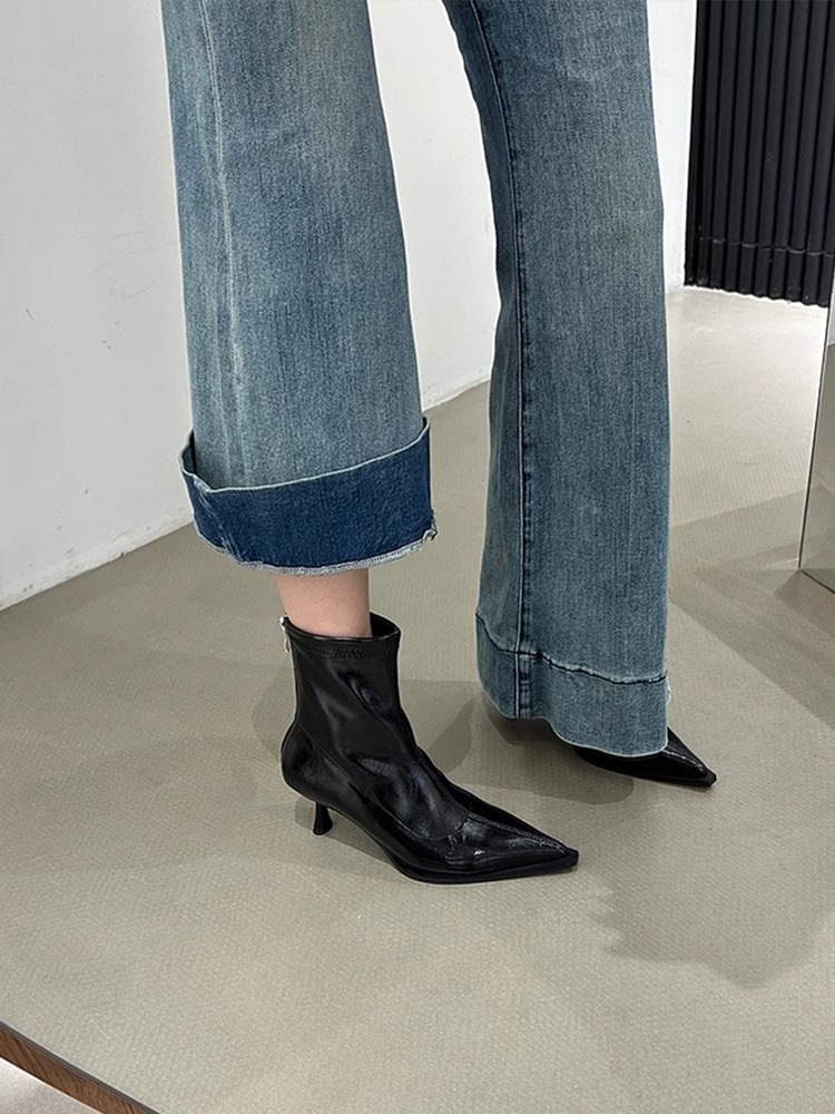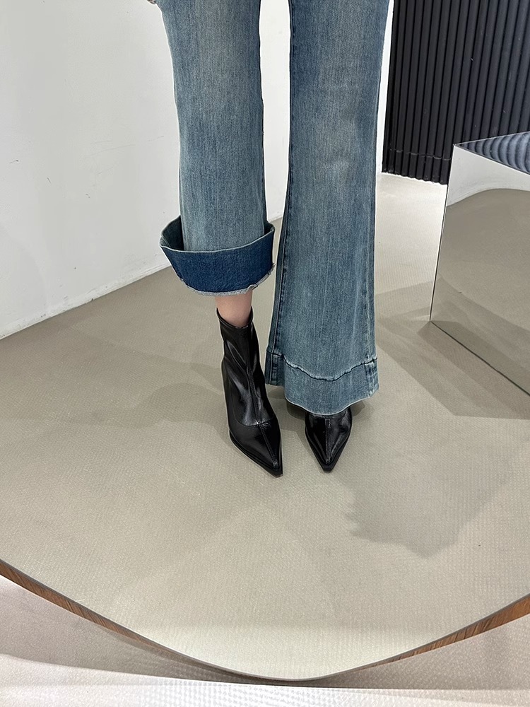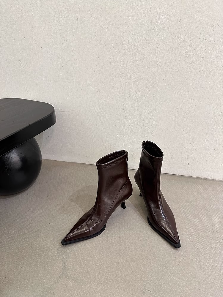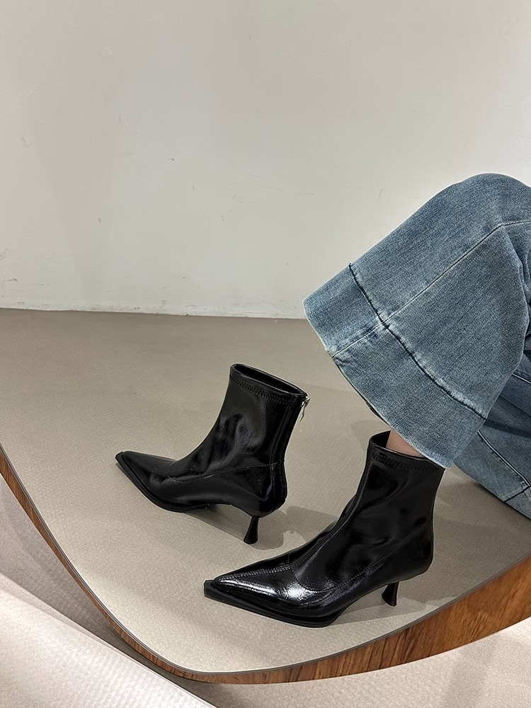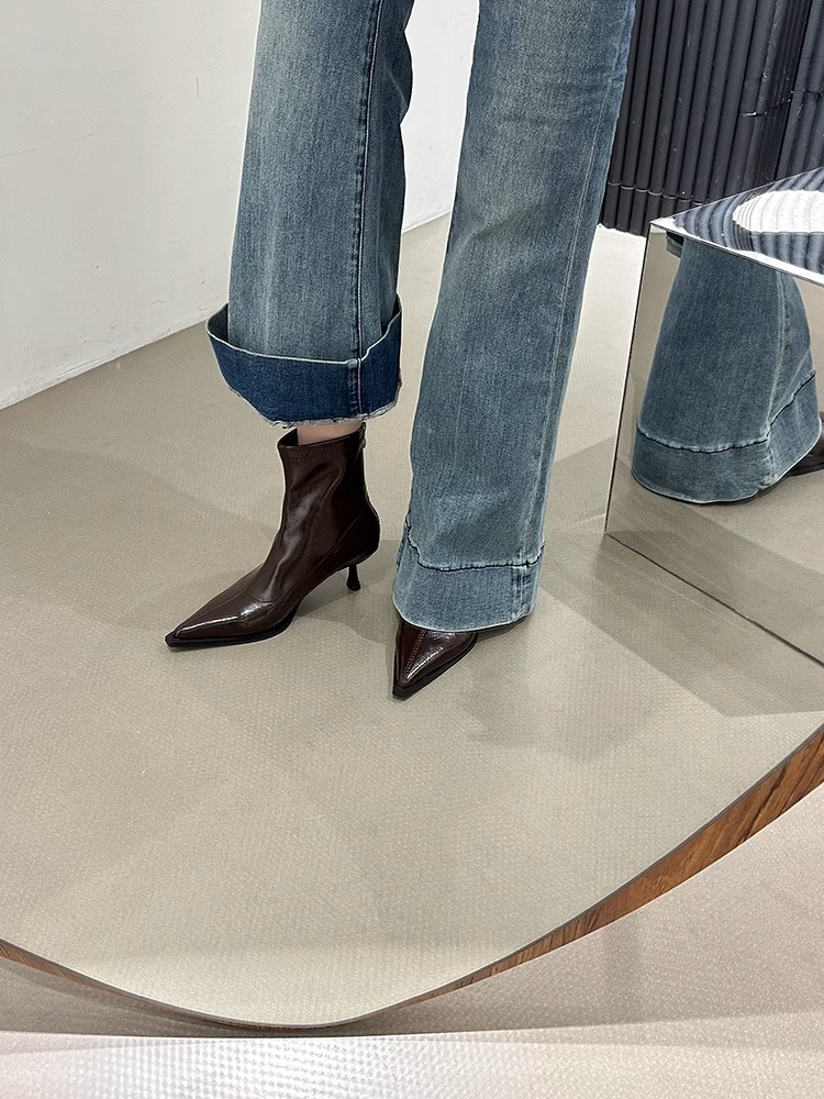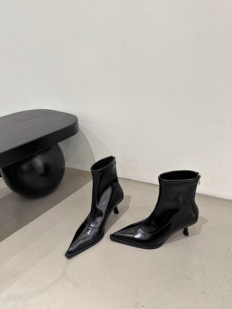 여성용 포인티드 토 숏부츠 2025 가을 겨울 신상 부츠 플러스 벨벳 숏부츠 니치 슬림 여성 부츠 스틸레토 하이힐 부츠