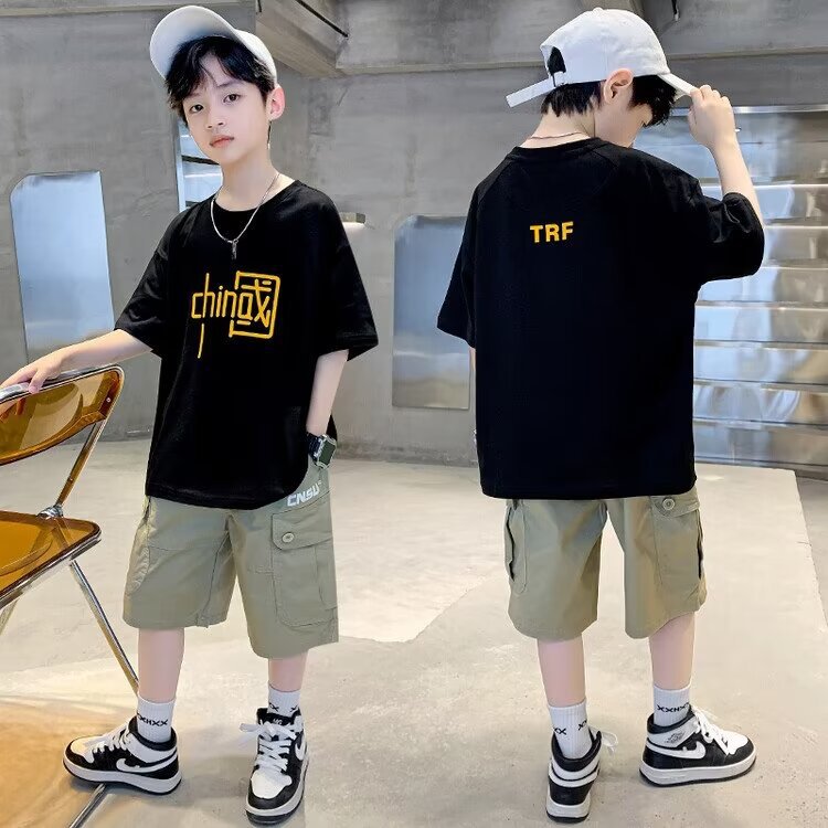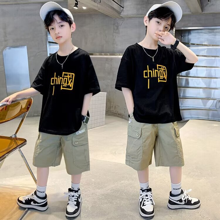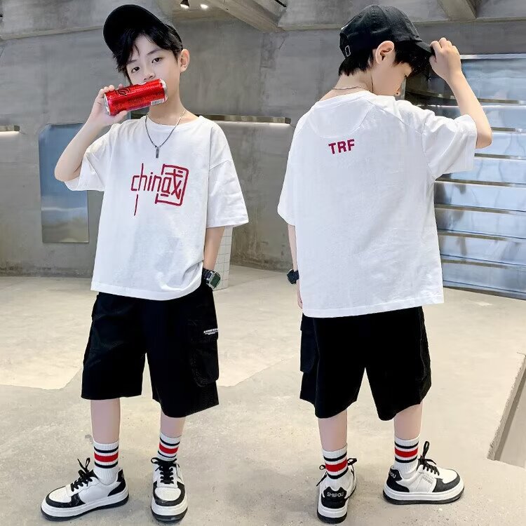 한국식 반팔 티셔츠 여름 반팔 2024 새로운 잘 생긴 유행 중 · 빅 키즈 보이즈 탑 티셔츠 아동복 트렌디스토어 가기