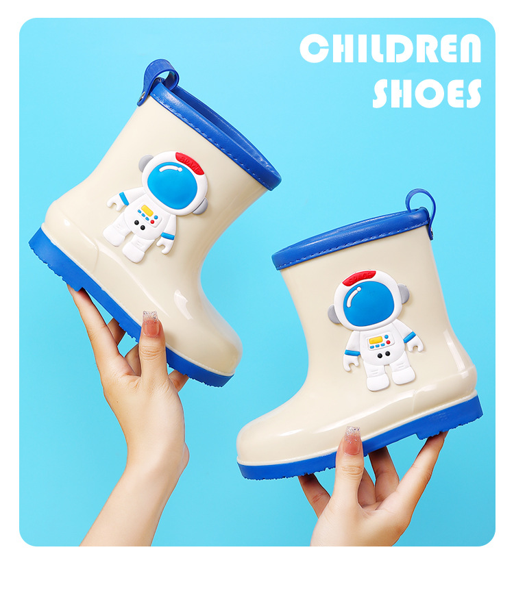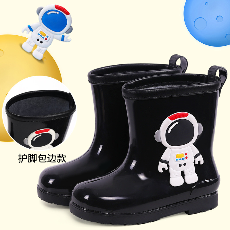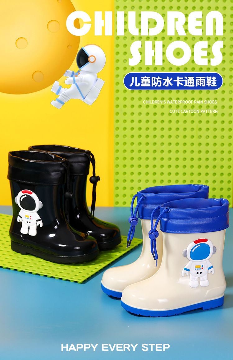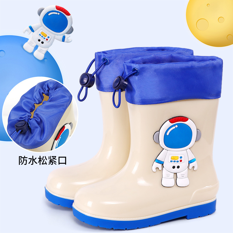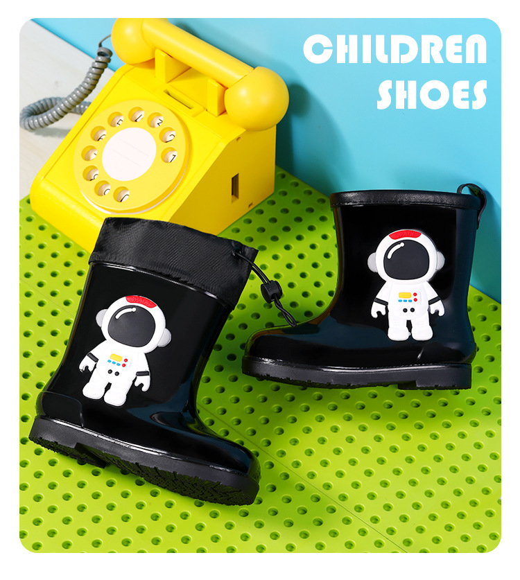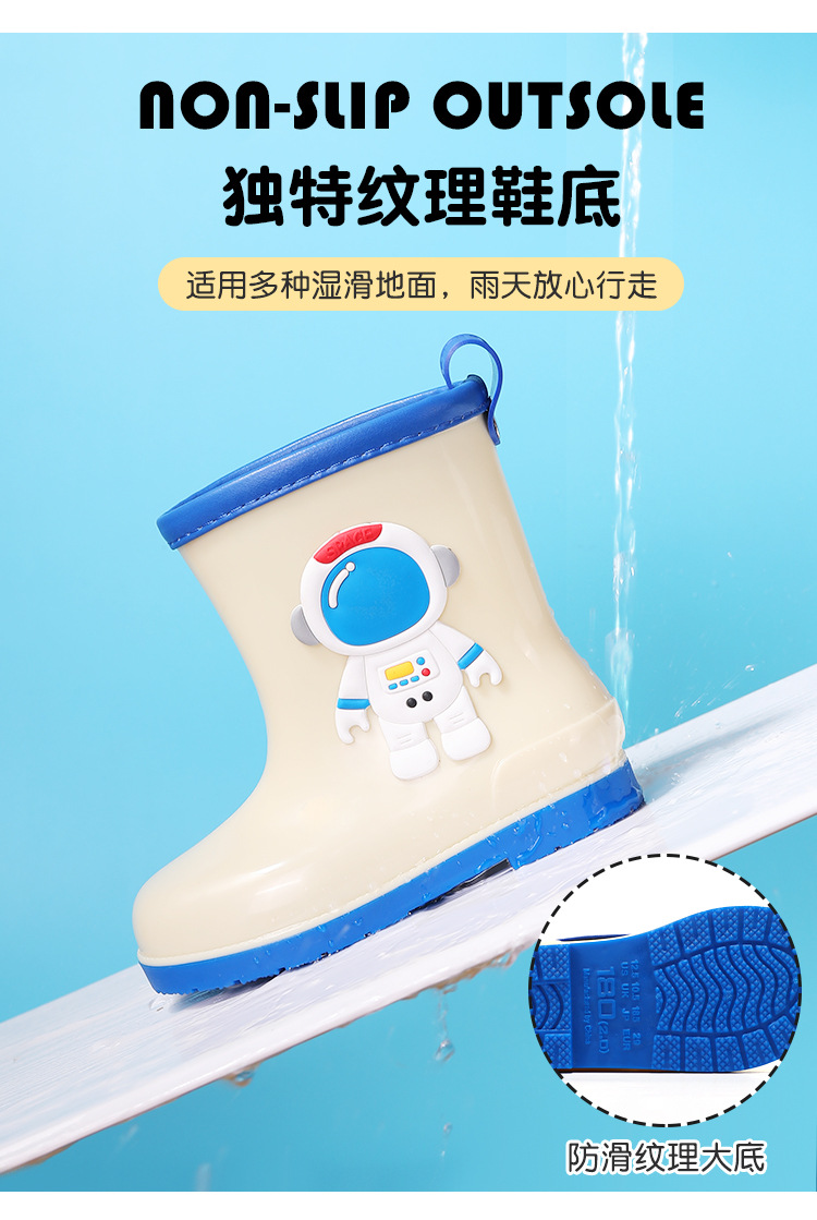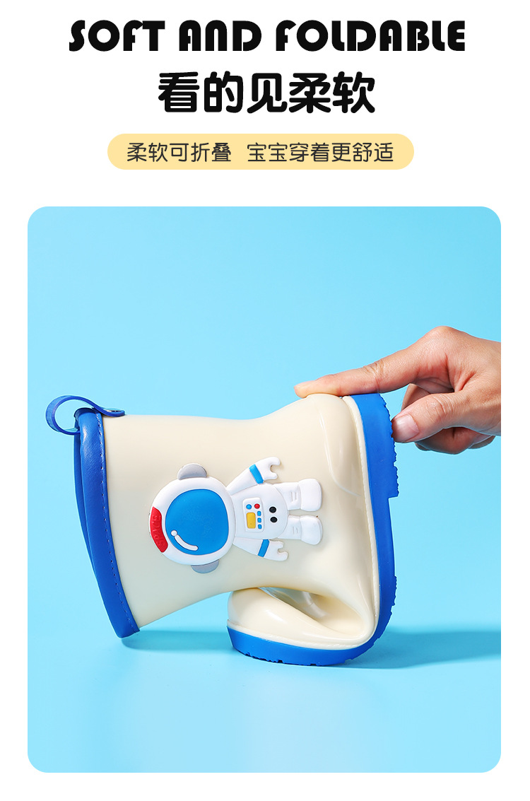 어린이를위한 탄성 장화가있는 만화 우주 비행사 경량 방수 미끄럼 방지 유치원 어린이 워터 슈즈