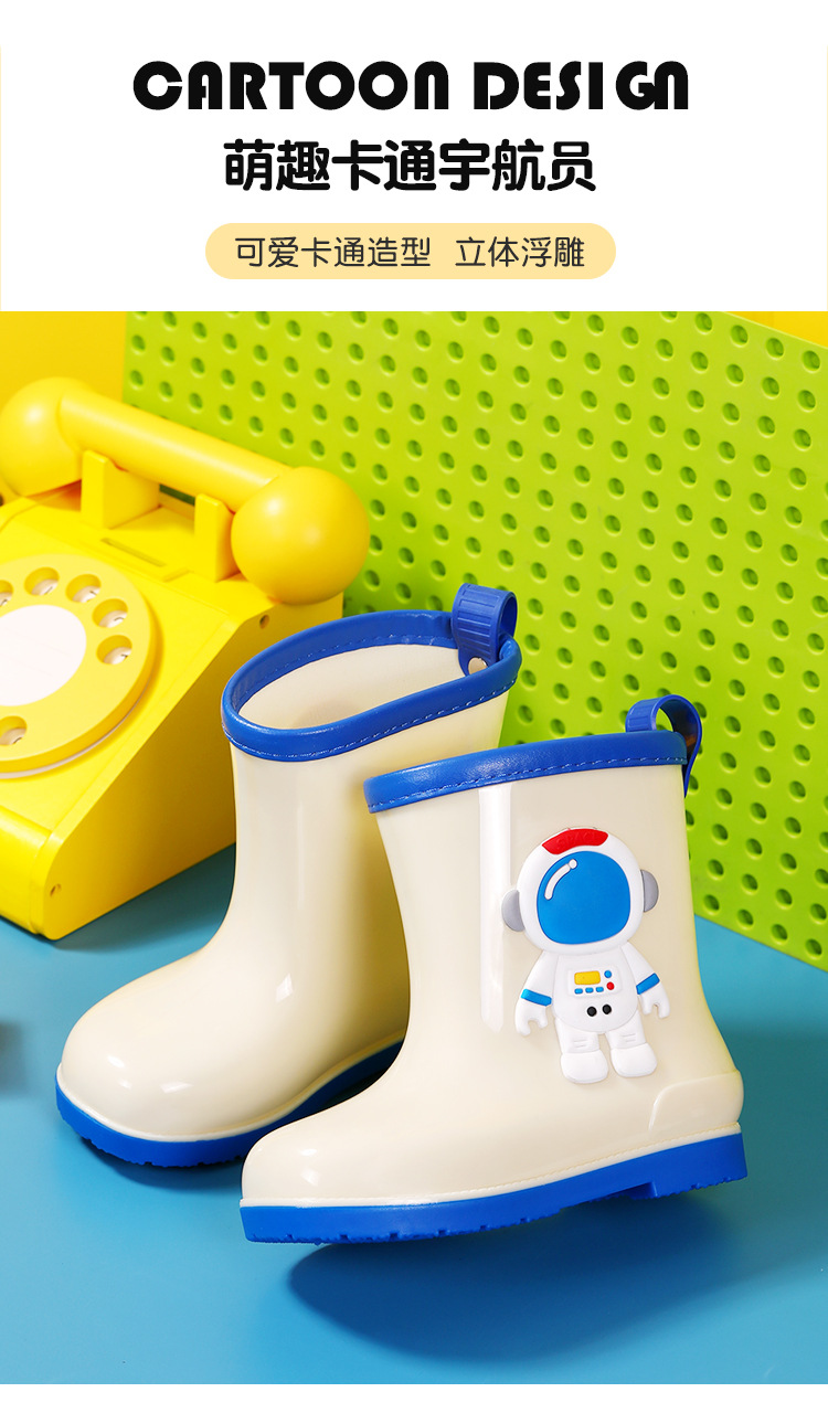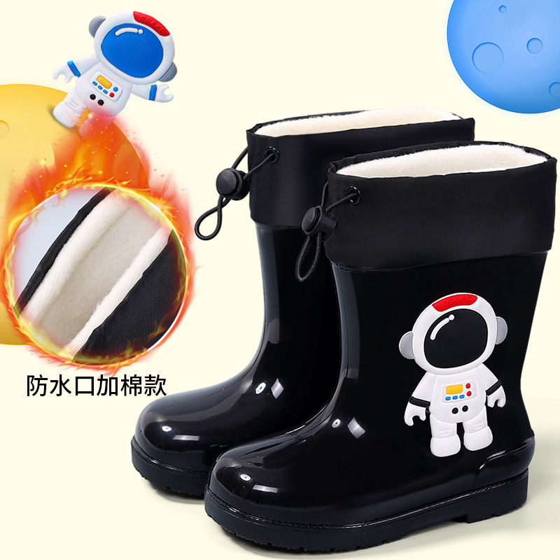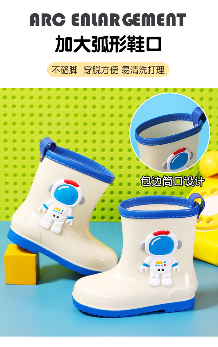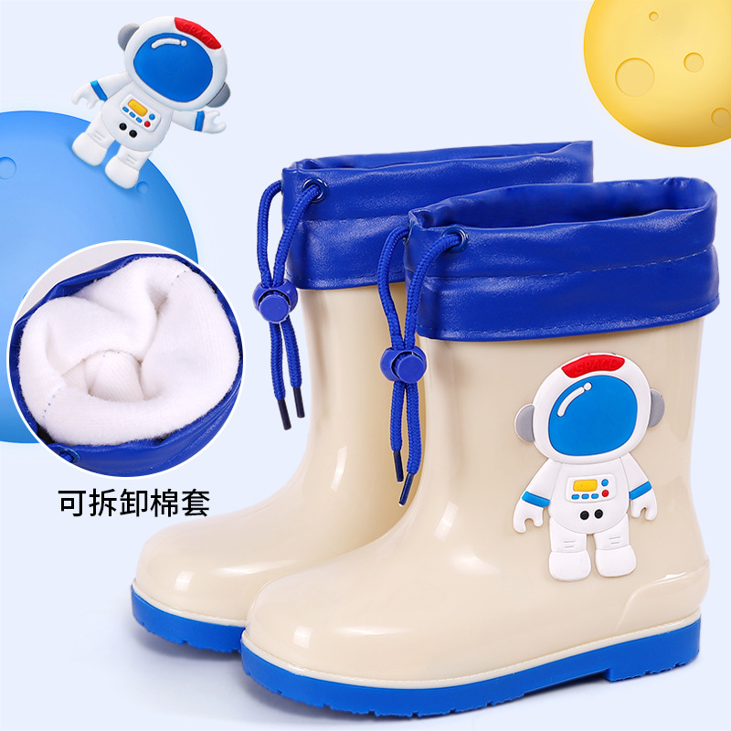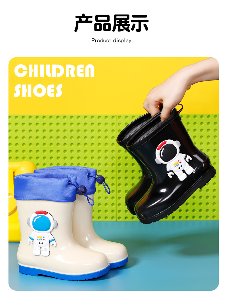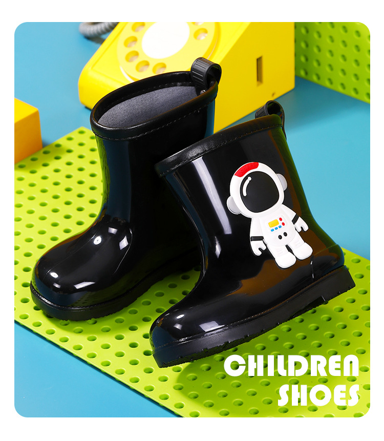 어린이를위한 탄성 장화가있는 만화 우주 비행사 경량 방수 미끄럼 방지 유치원 어린이 워터 슈즈
