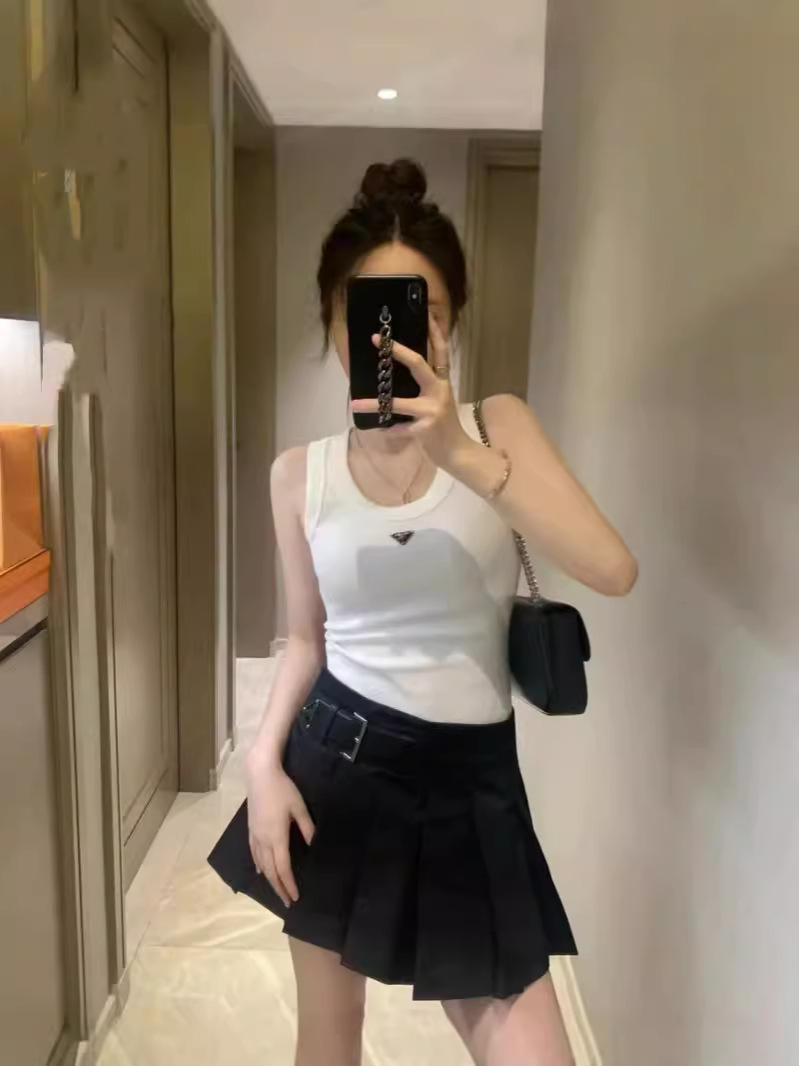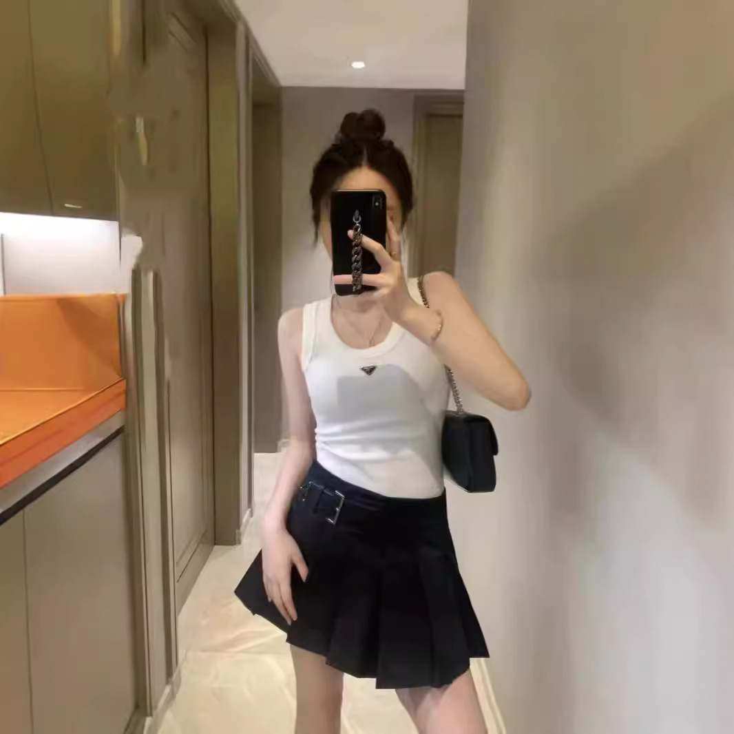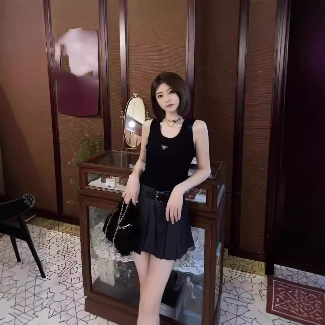 역삼각형 메탈 로고 장식 탄성 있는 핫걸 스타일 여성용 캐주얼 베이스탑 2026 봄 신상품스토어 가기