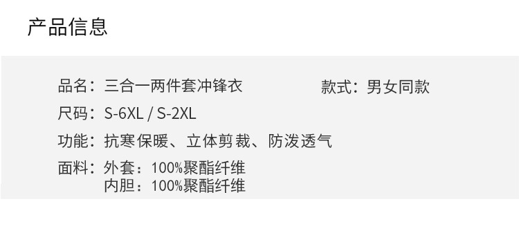 야외 충전 의류 3 대 1 안티 스플래싱 워터 남성용 고급 맞춤형 로고 등산 세트 여성용 방풍 방수 재킷