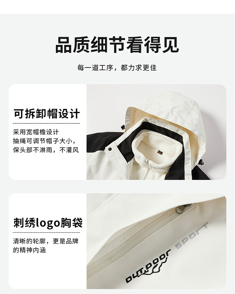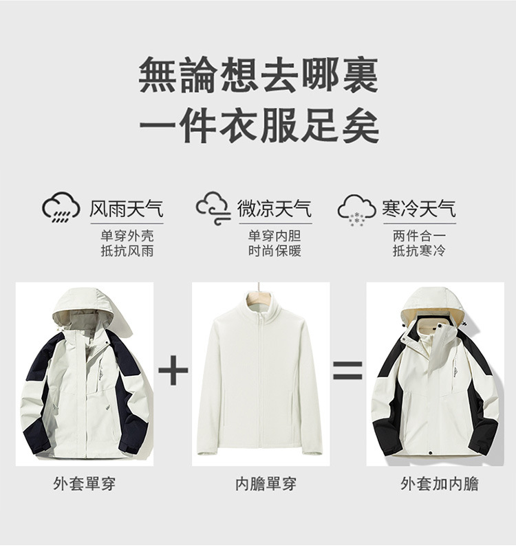 야외 충전 의류 3 대 1 안티 스플래싱 워터 남성용 고급 맞춤형 로고 등산 세트 여성용 방풍 방수 재킷스토어 가기