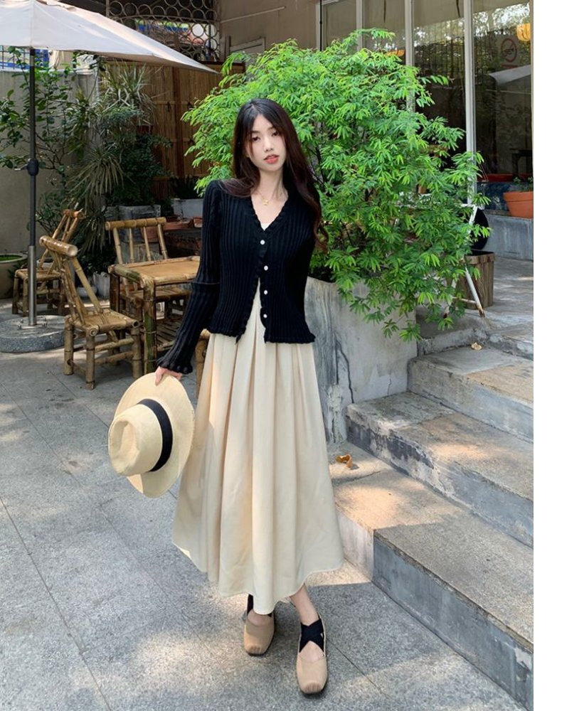 부드러운 스타일 차 브레이크 프랑스 패션 긴 원피스 기질 여신 스타일 하이 엔드 슬링 원피스 투피스 세트 여름