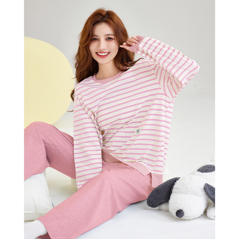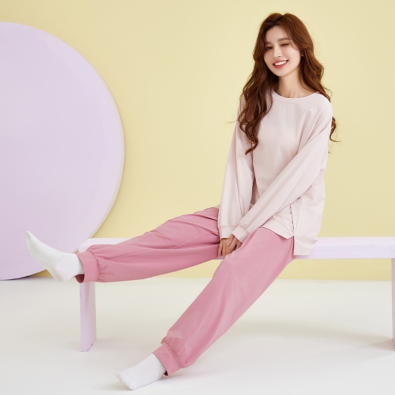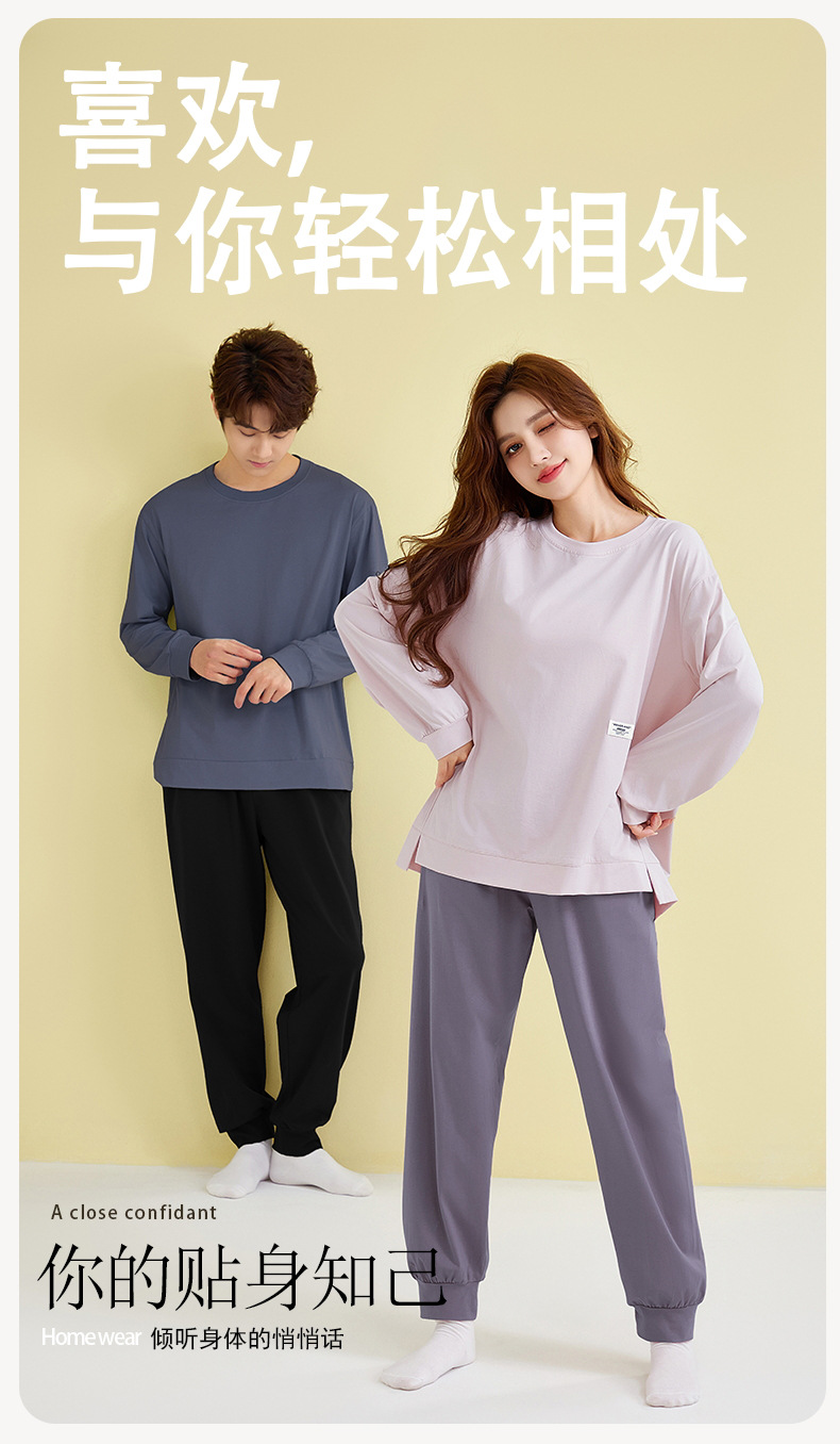 잠옷 여성면 둥근 목 긴 소매 바지 간단한 캐주얼 커플의 세트 외부 얇은 남성 홈 옷을 입고스토어 가기