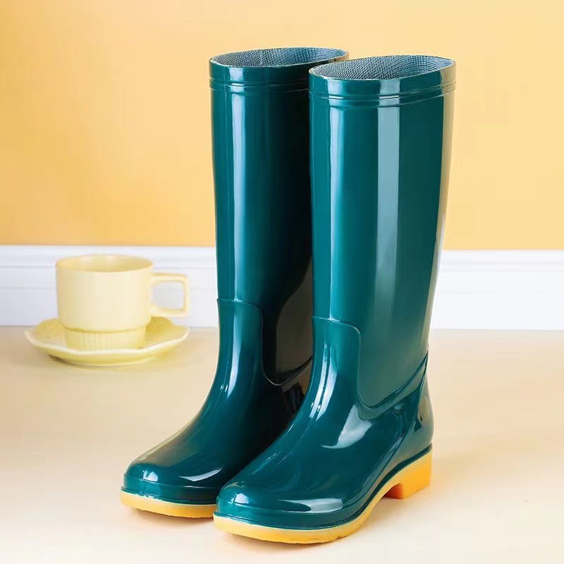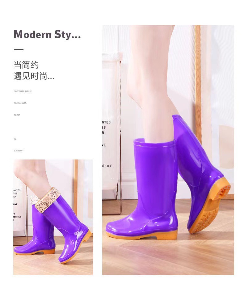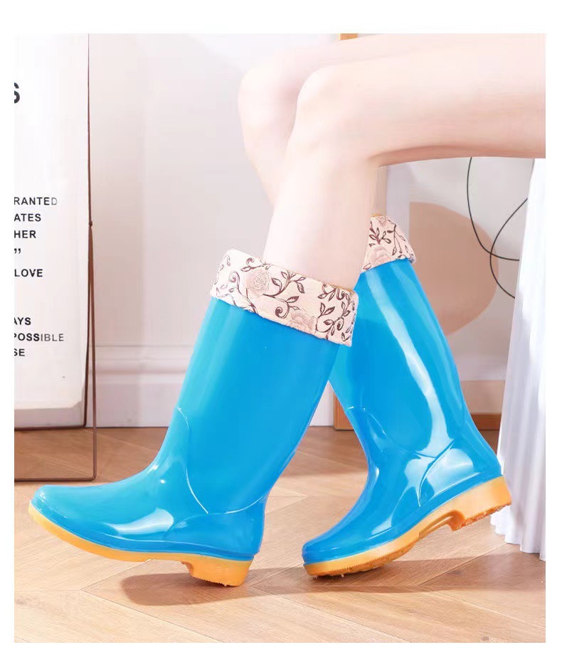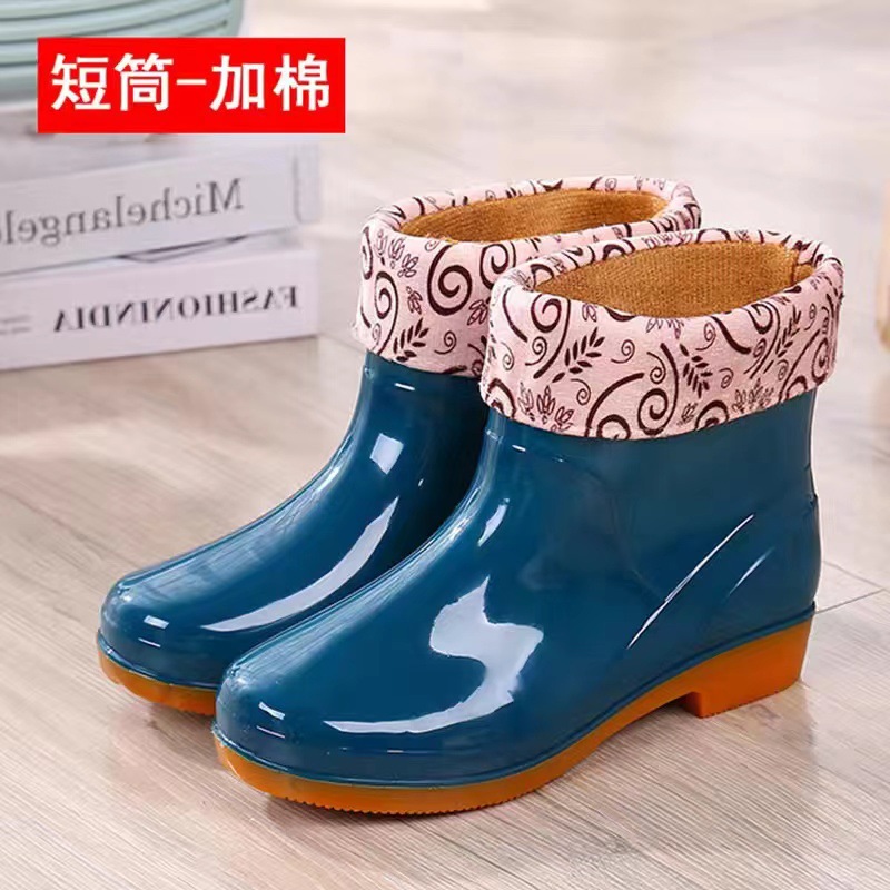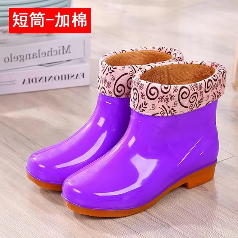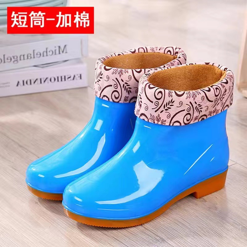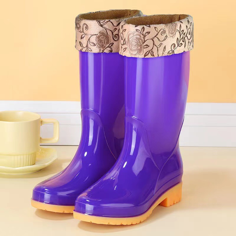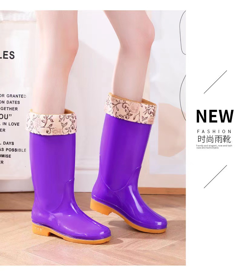 높은 튜브 미끄럼 기모 면화 장화 장화 방수 신발 배럴 고무 신발 오버 워터 부츠 여성 성인 주방 따뜻한 부츠스토어 가기