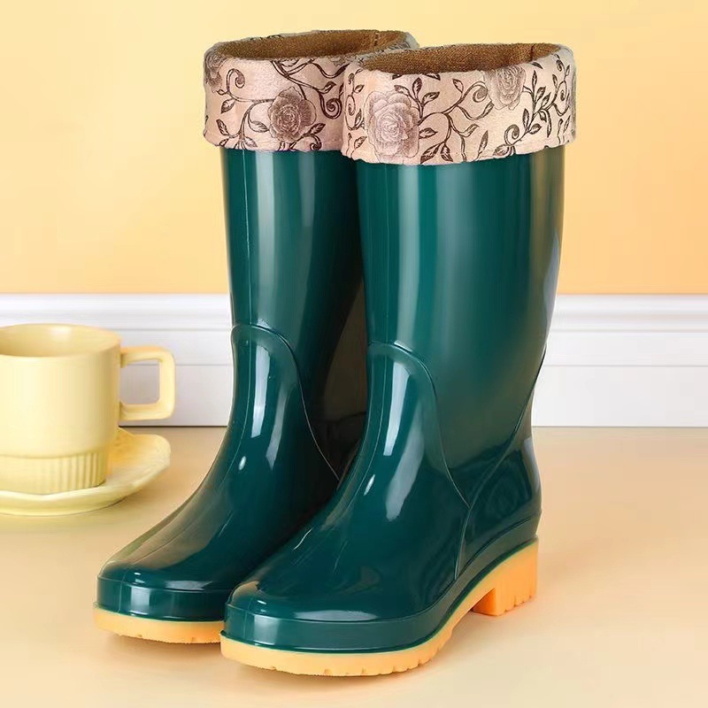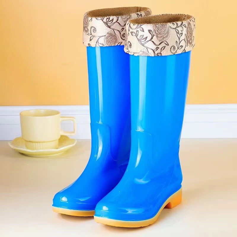 높은 튜브 미끄럼 기모 면화 장화 장화 방수 신발 배럴 고무 신발 오버 워터 부츠 여성 성인 주방 따뜻한 부츠