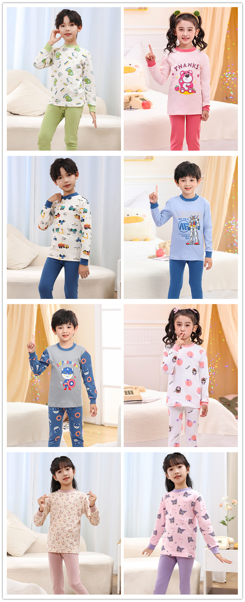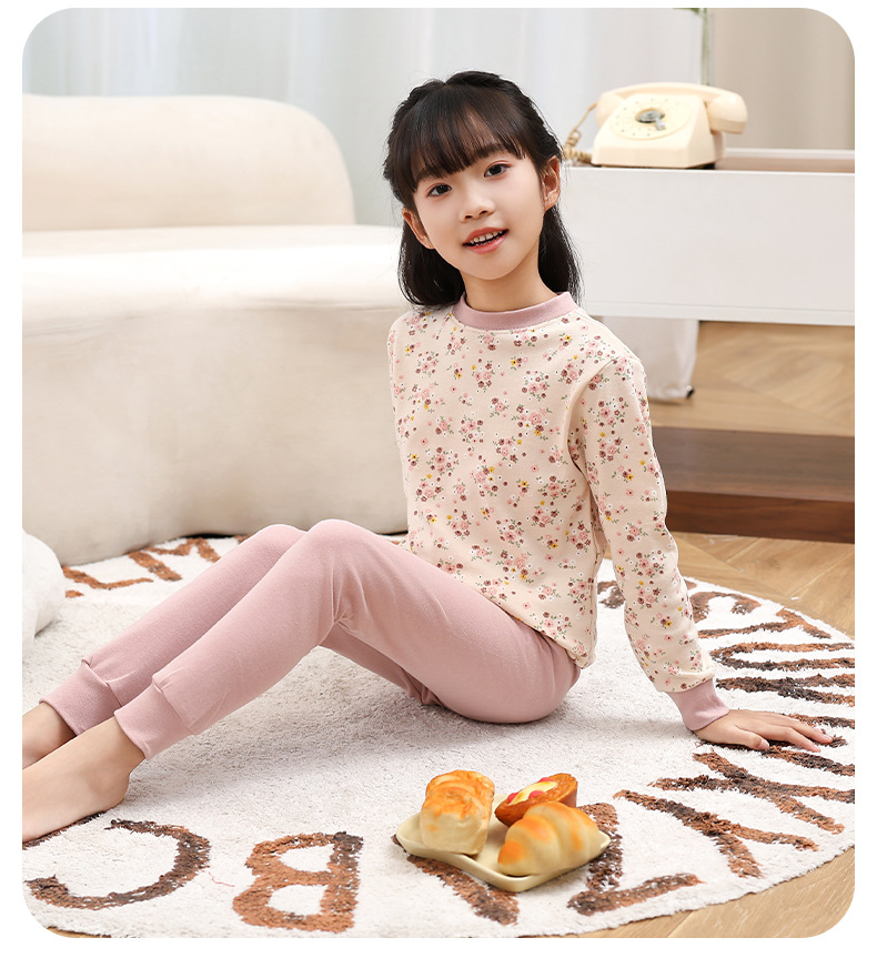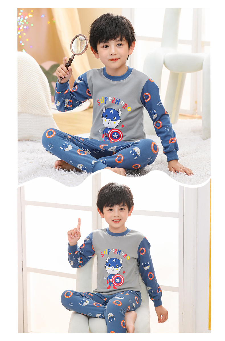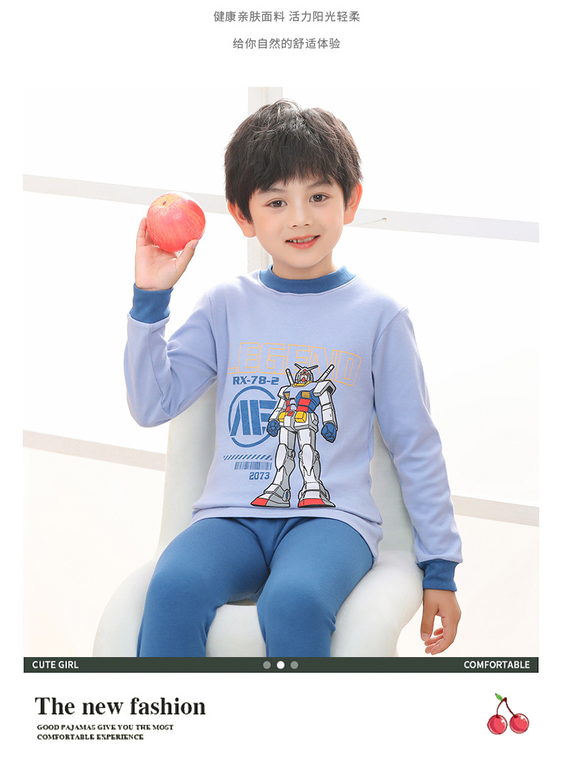 소년 소녀 가을 옷과 바지 중간 칼라 어린이 면화 속옷 세트 면 어린이 잠옷 홈 옷