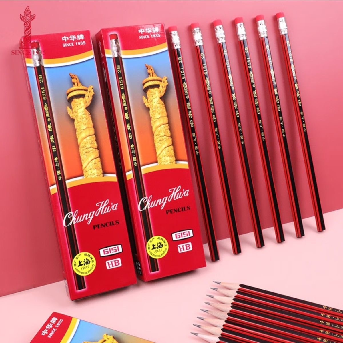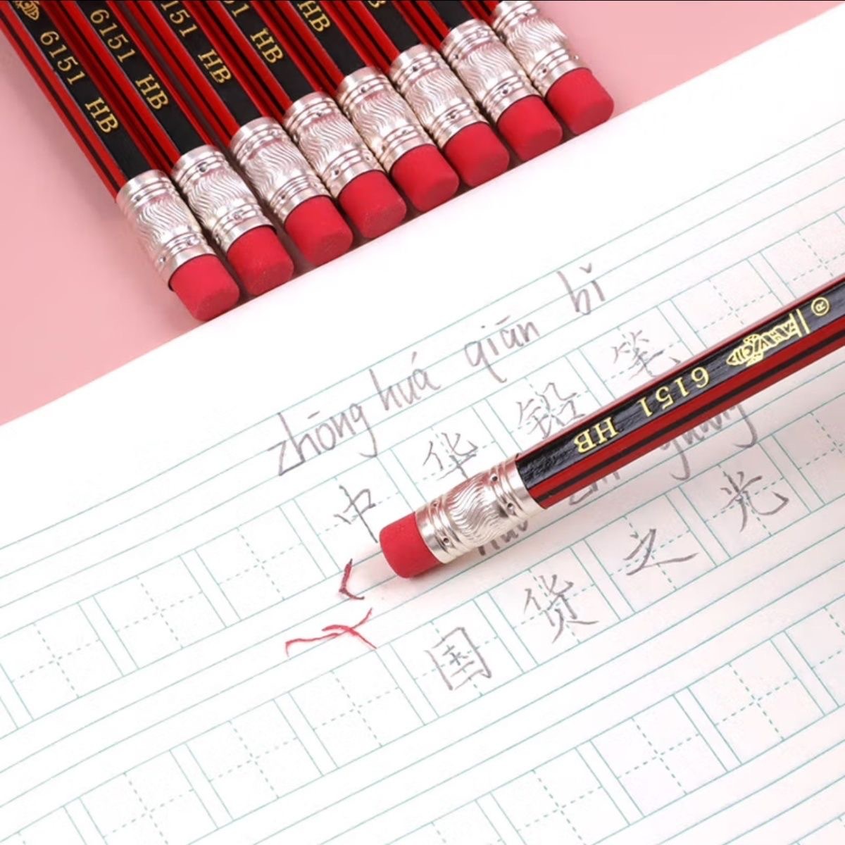 중국 브랜드 클래식 6151 연필 HB 학생 시험 특수 2B 연필 스케치 그리기 브러시 고무 헤드