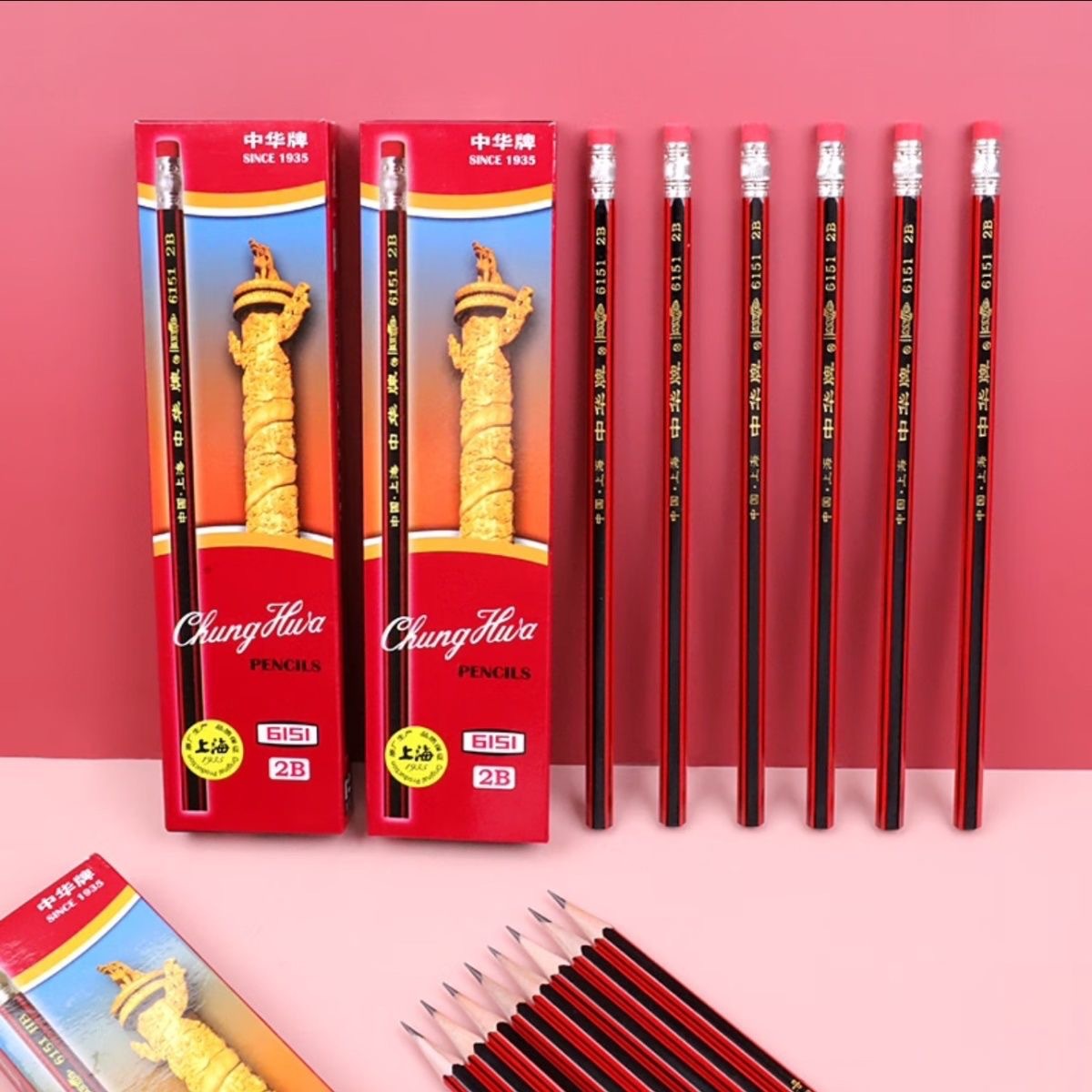중국 브랜드 클래식 6151 연필 HB 학생 시험 특수 2B 연필 스케치 그리기 브러시 고무 헤드스토어 가기
