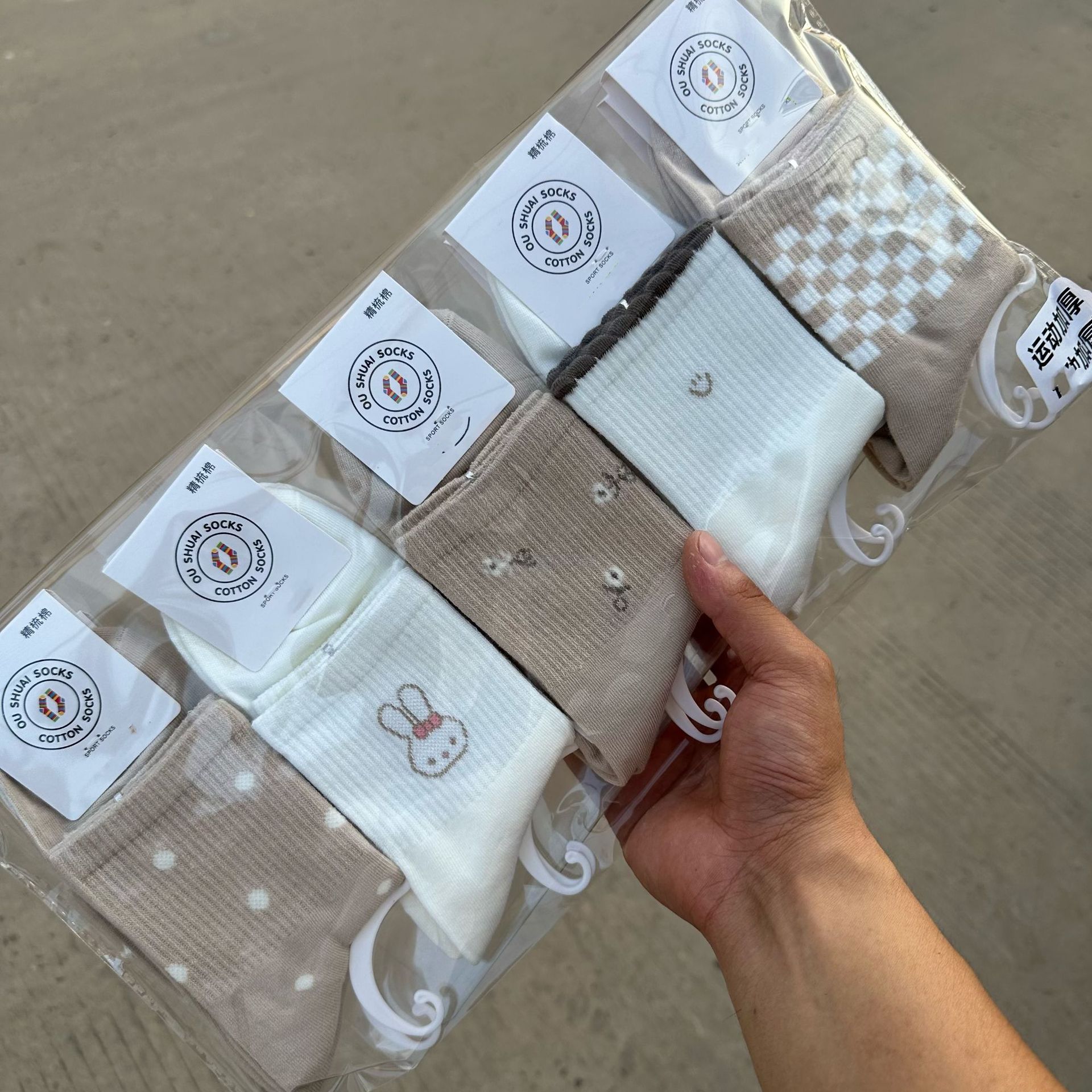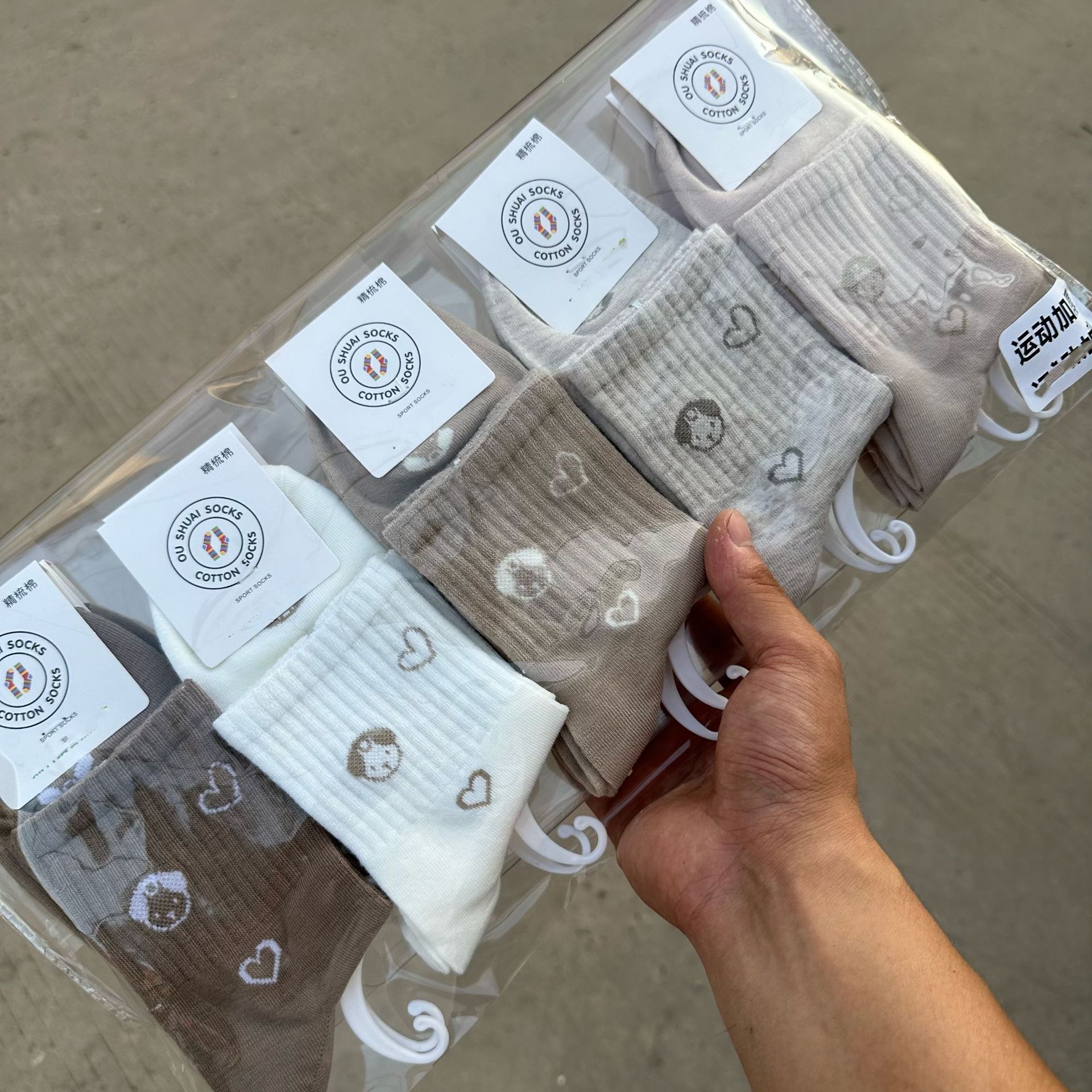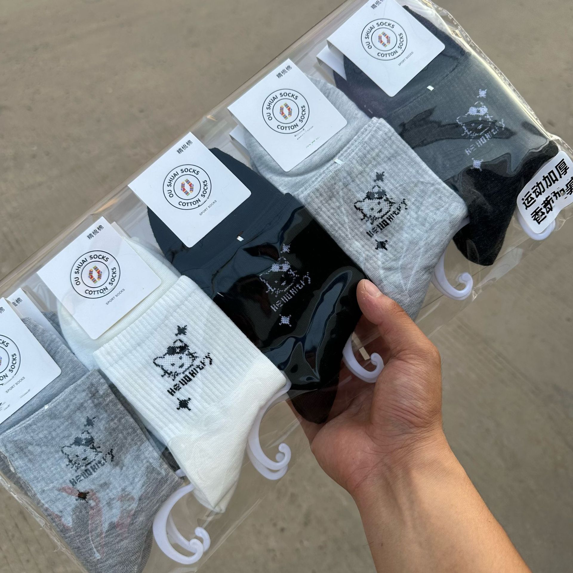 가을 겨울 신상 중목 양말 스포츠 양말 레터 그레이 커피색 동일 색상 편안하고 통기성 좋은 공장 도매스토어 가기