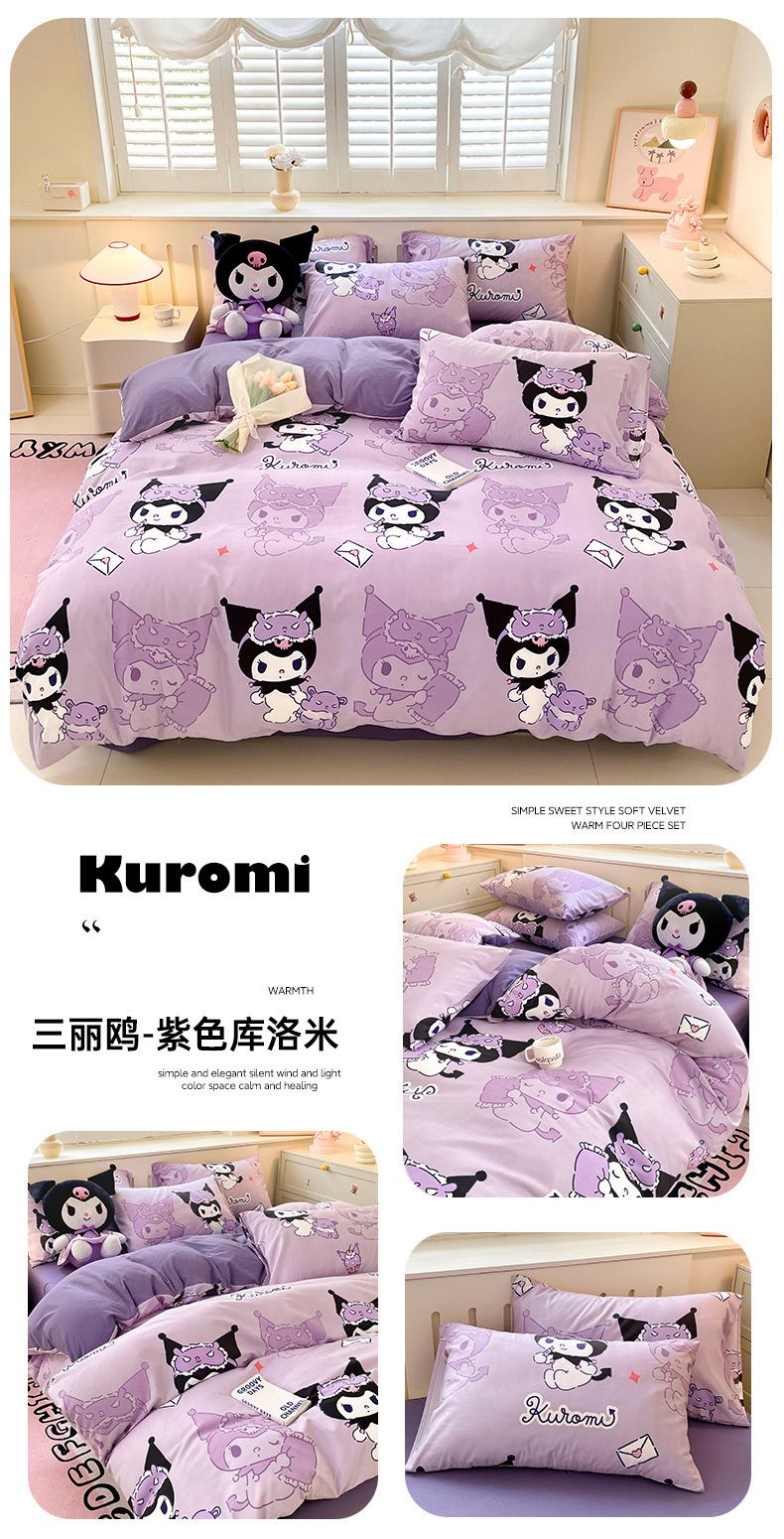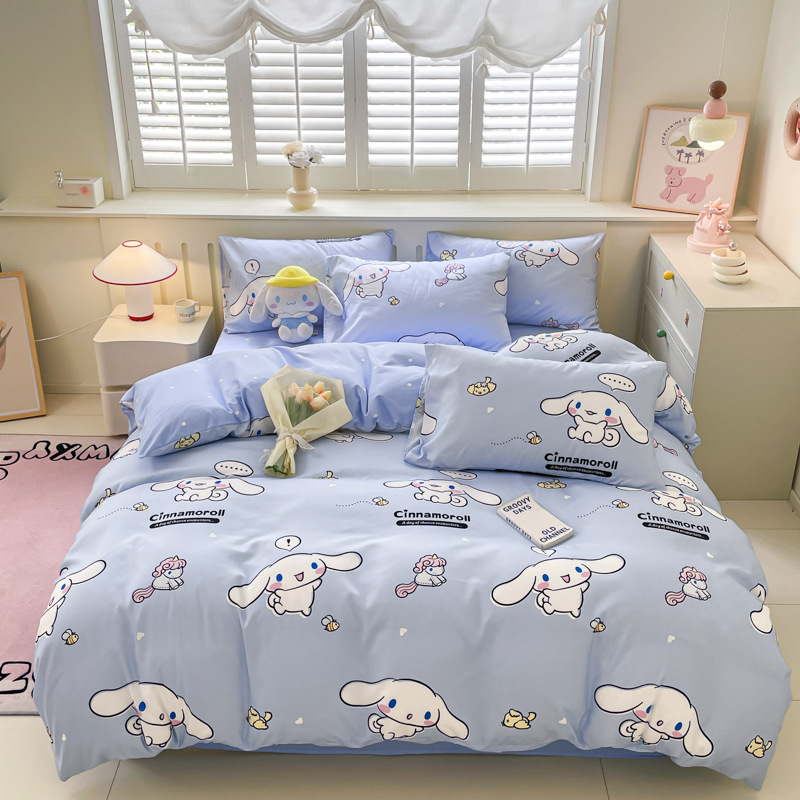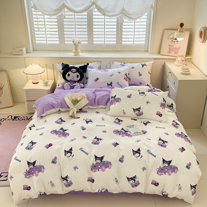 국경 간 산리오 구름 씻은 면화 4 종 세트 클래스 학생 기숙사 이불 커버 만화 침대 시트 3 종 세트