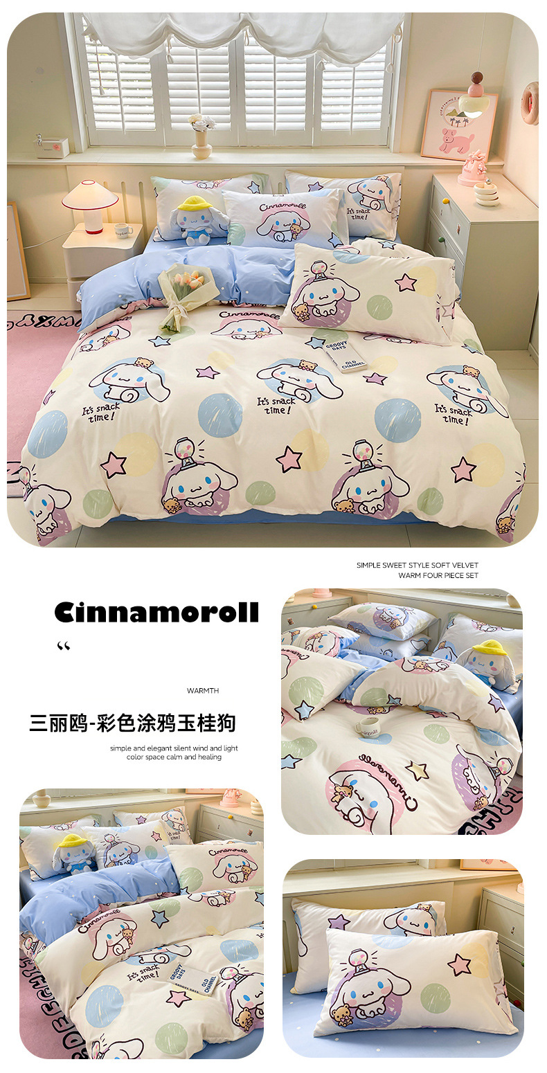 국경 간 산리오 구름 씻은 면화 4 종 세트 클래스 학생 기숙사 이불 커버 만화 침대 시트 3 종 세트스토어 가기