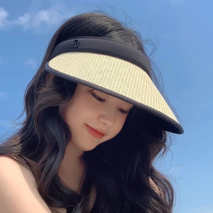 새로운 G 로고 차양 및 선 스크린 모자 여성 시즌 빅 햇 브림 자외선 차단 태양 모자 얼굴 음영 앞 유리 빈 탑 밀짚 모자