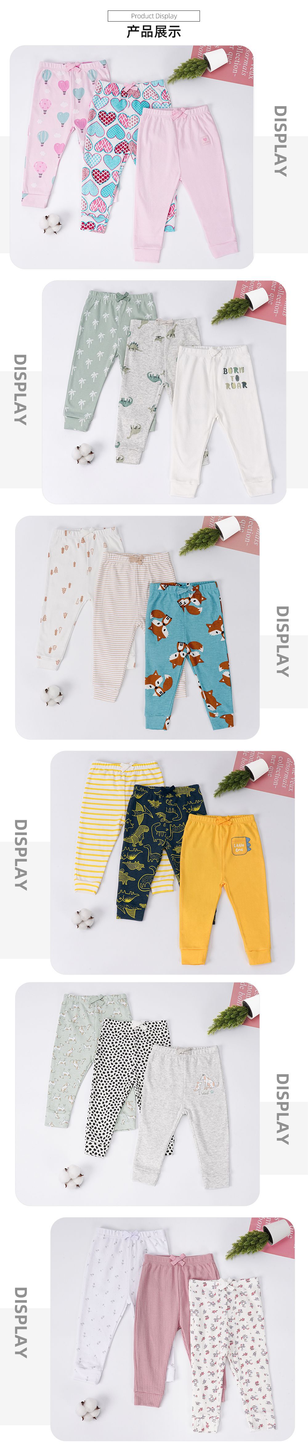 3 팩 100% 면 신생아 4 시즌 바지 유아면 소프트 레깅스 외부 착용 바지 세트스토어 가기