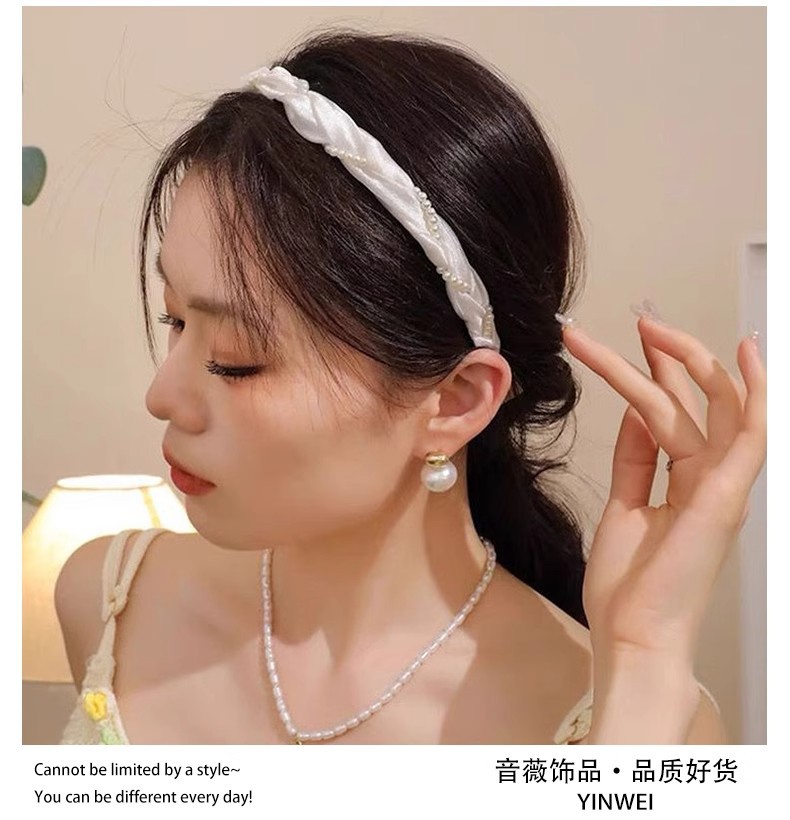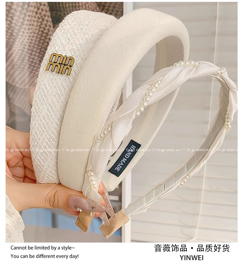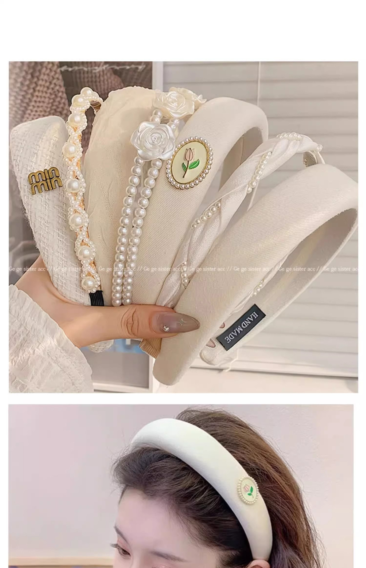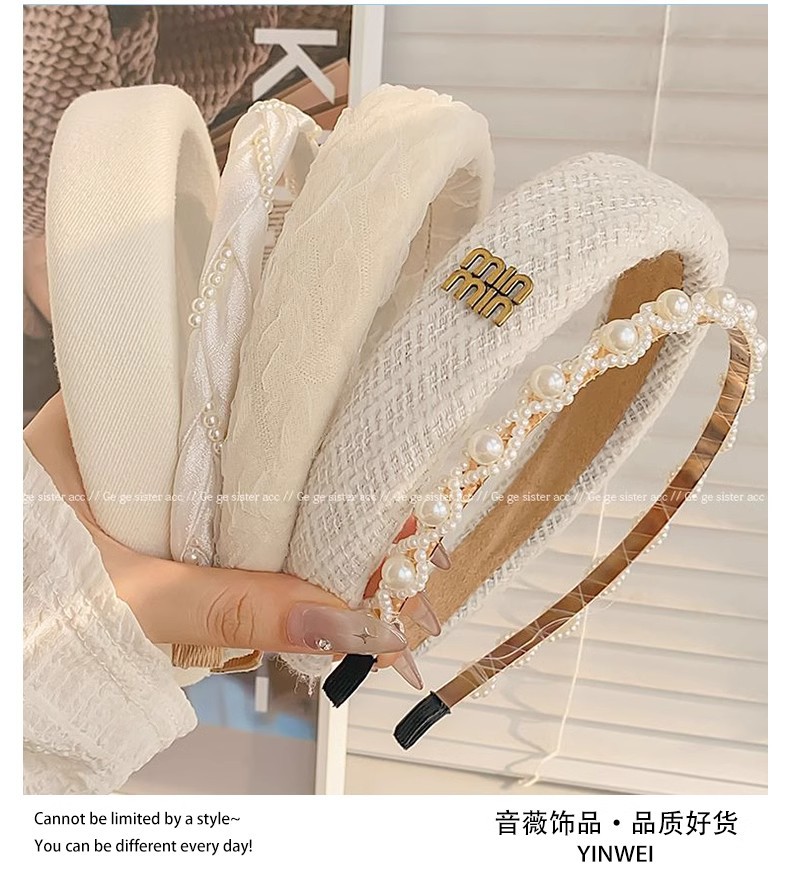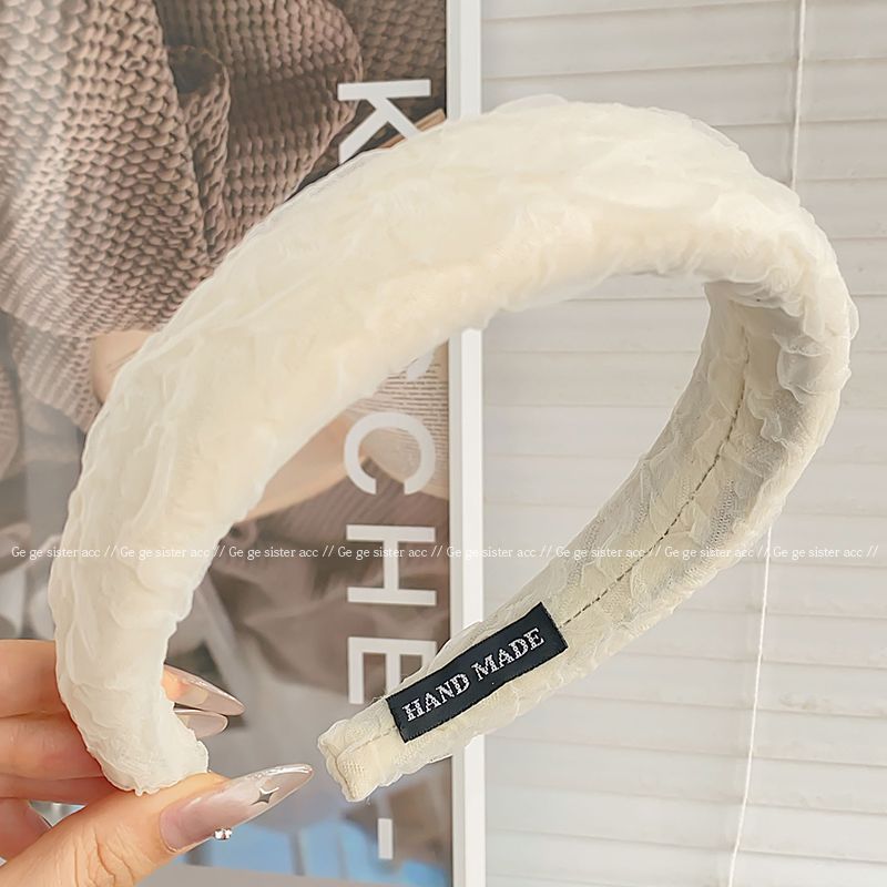 2025년 신상 밀크 화이트 색상의 향기로운 스타일 진주 머리띠 레이스 주름 패션 고급스러운 얼굴 세안용 머리핀 여성용스토어 가기