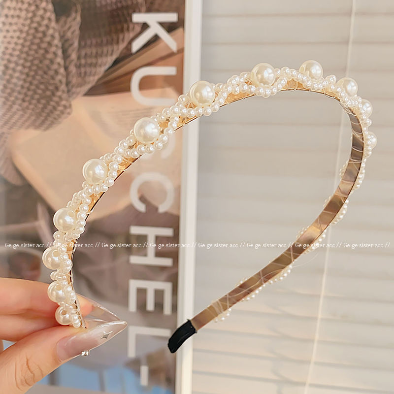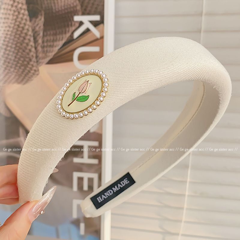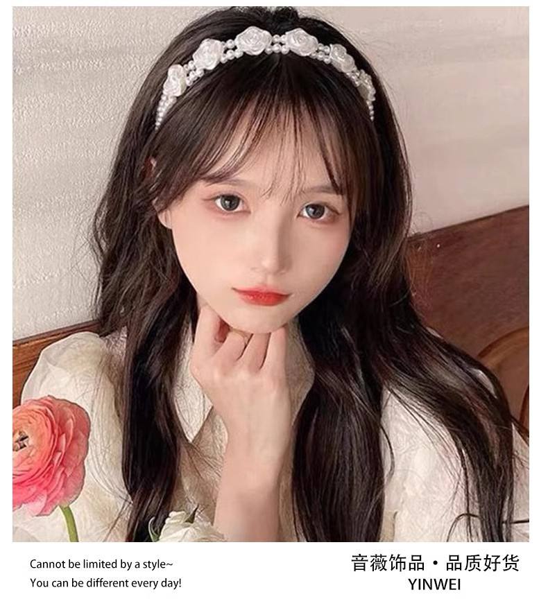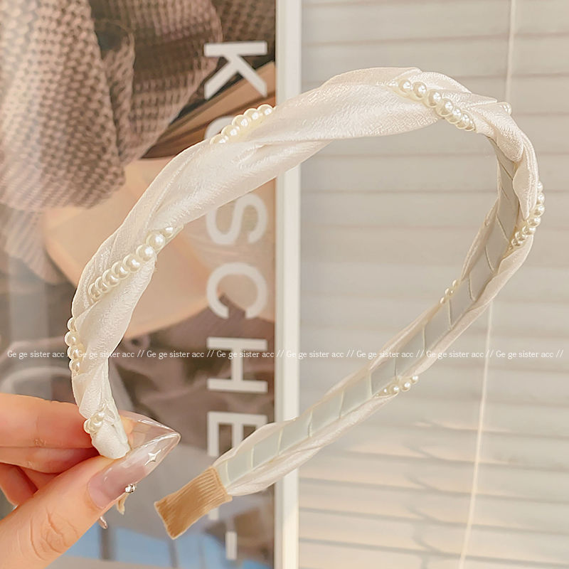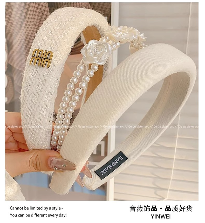 2025년 신상 밀크 화이트 색상의 향기로운 스타일 진주 머리띠 레이스 주름 패션 고급스러운 얼굴 세안용 머리핀 여성용스토어 가기